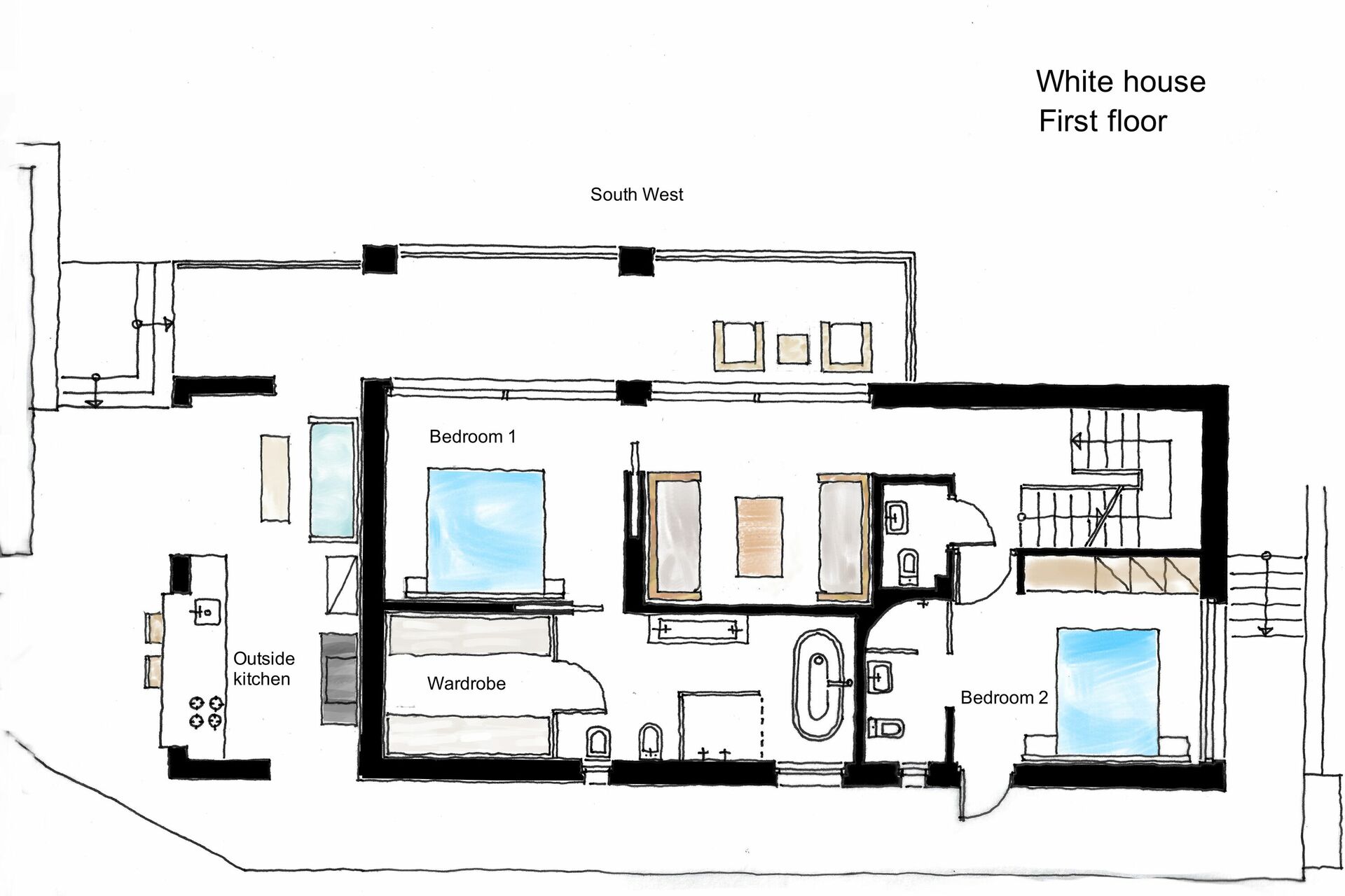 The BlueWhite Villa was an extraordinary haven for us. You enter the gates, they close behind you, and you are in a private world of olive trees, sea and mountain views, long, cool swimming pool, outdoor kitchen and grill! with a lovely, spacious, light-filled villa in the center. Our two weeks here were a magical experience.