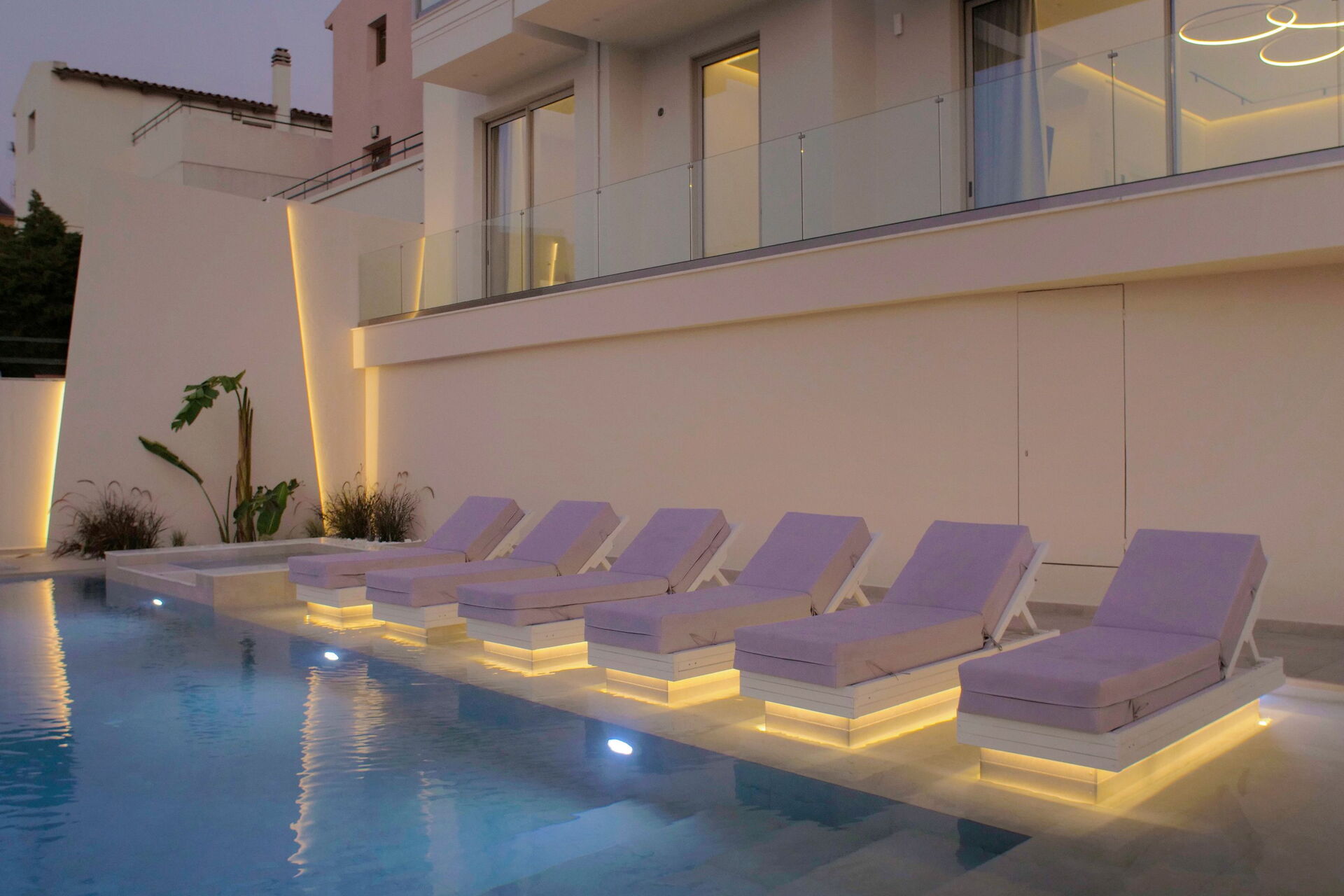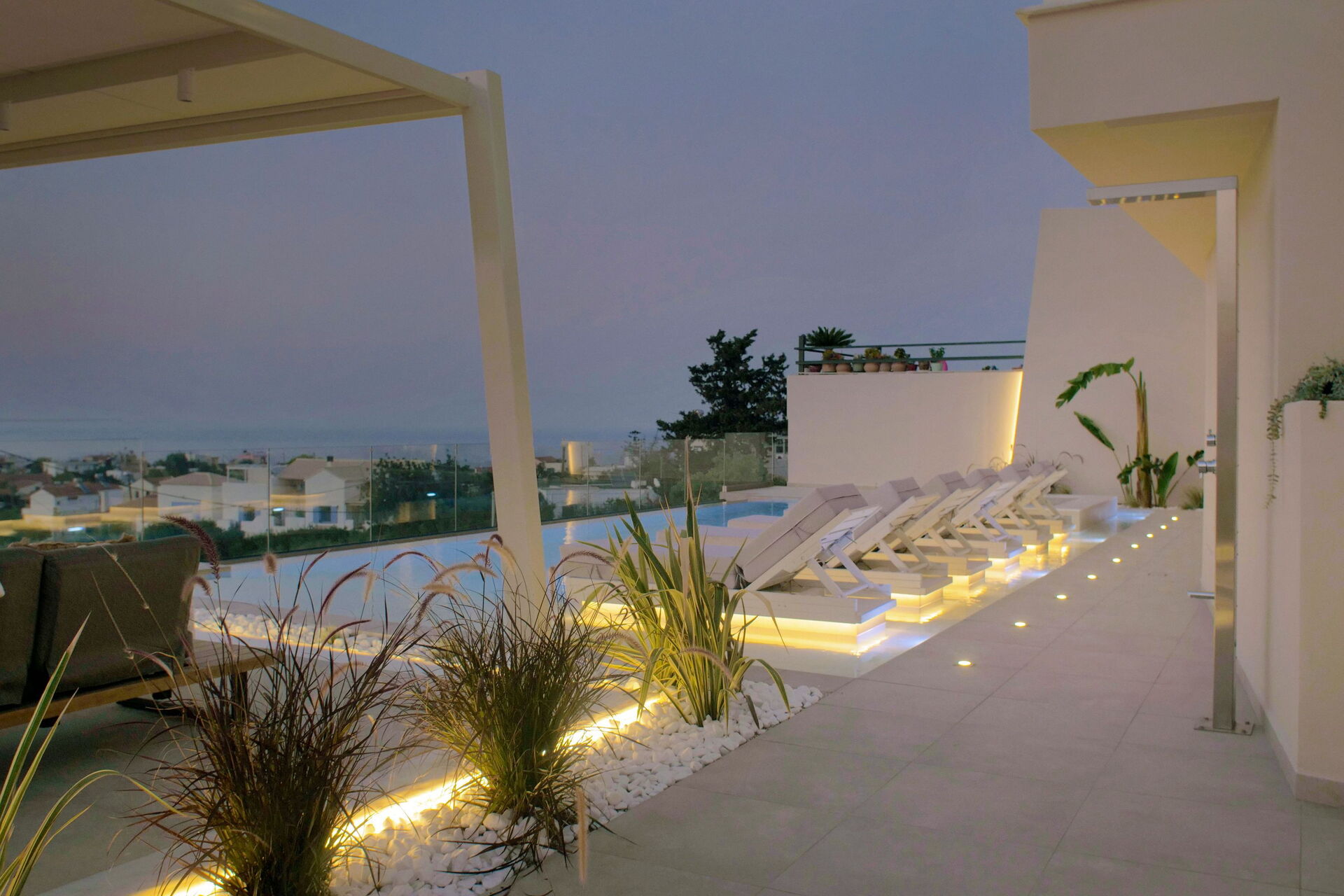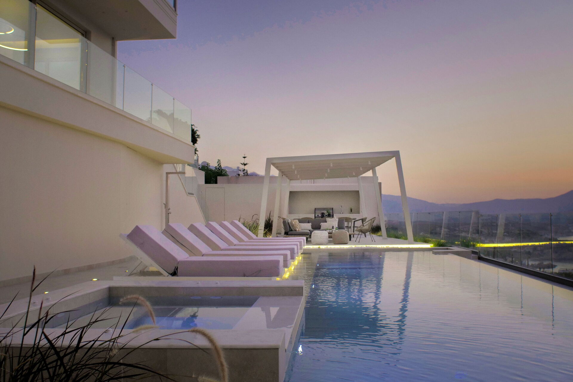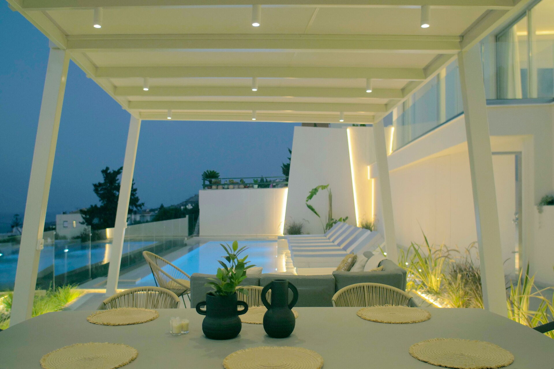 Udendørsområdet er udstyret med grill og bord til lækre måltider, en helt ny swimmingpool med hydromassage-område og en smuk udsigt over Souda-bugten og det krystalklare hav.