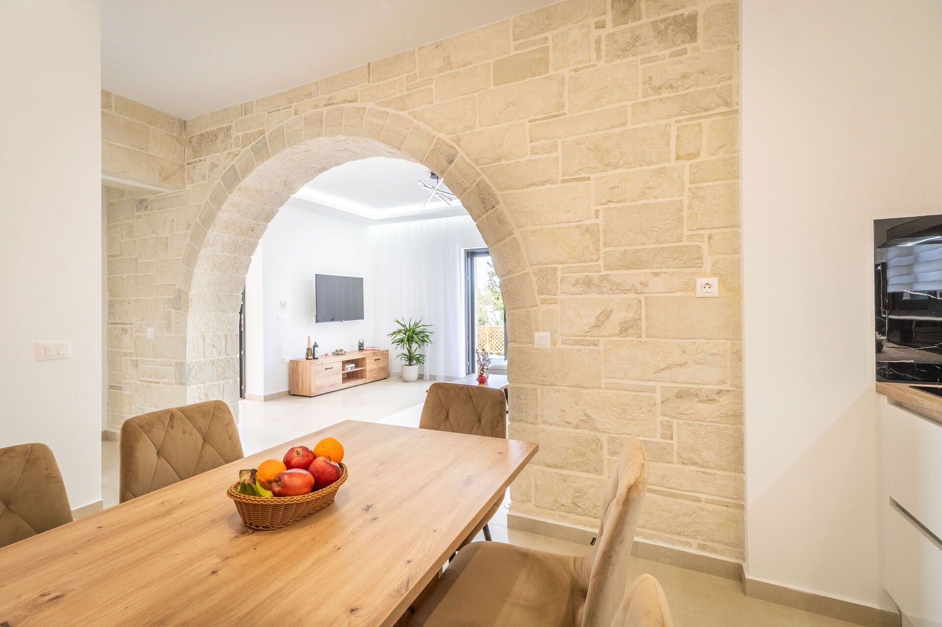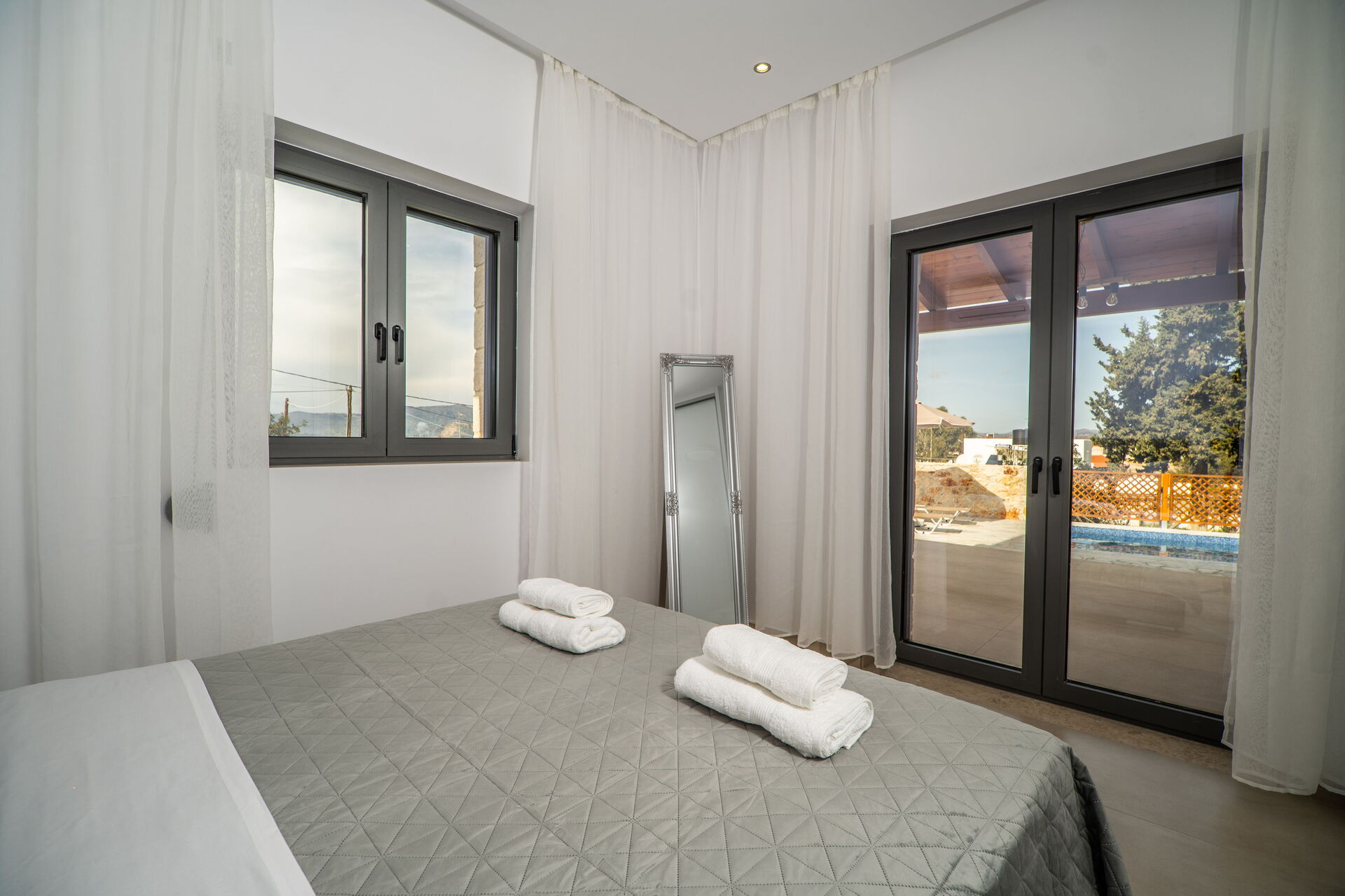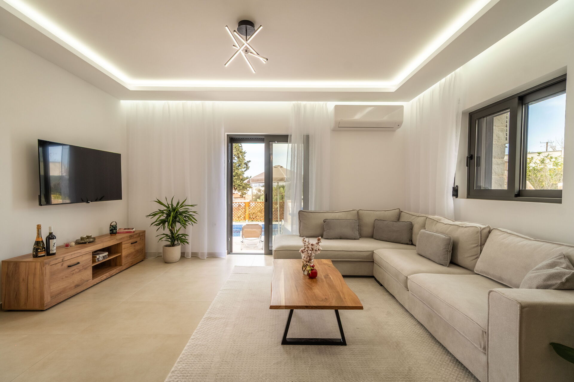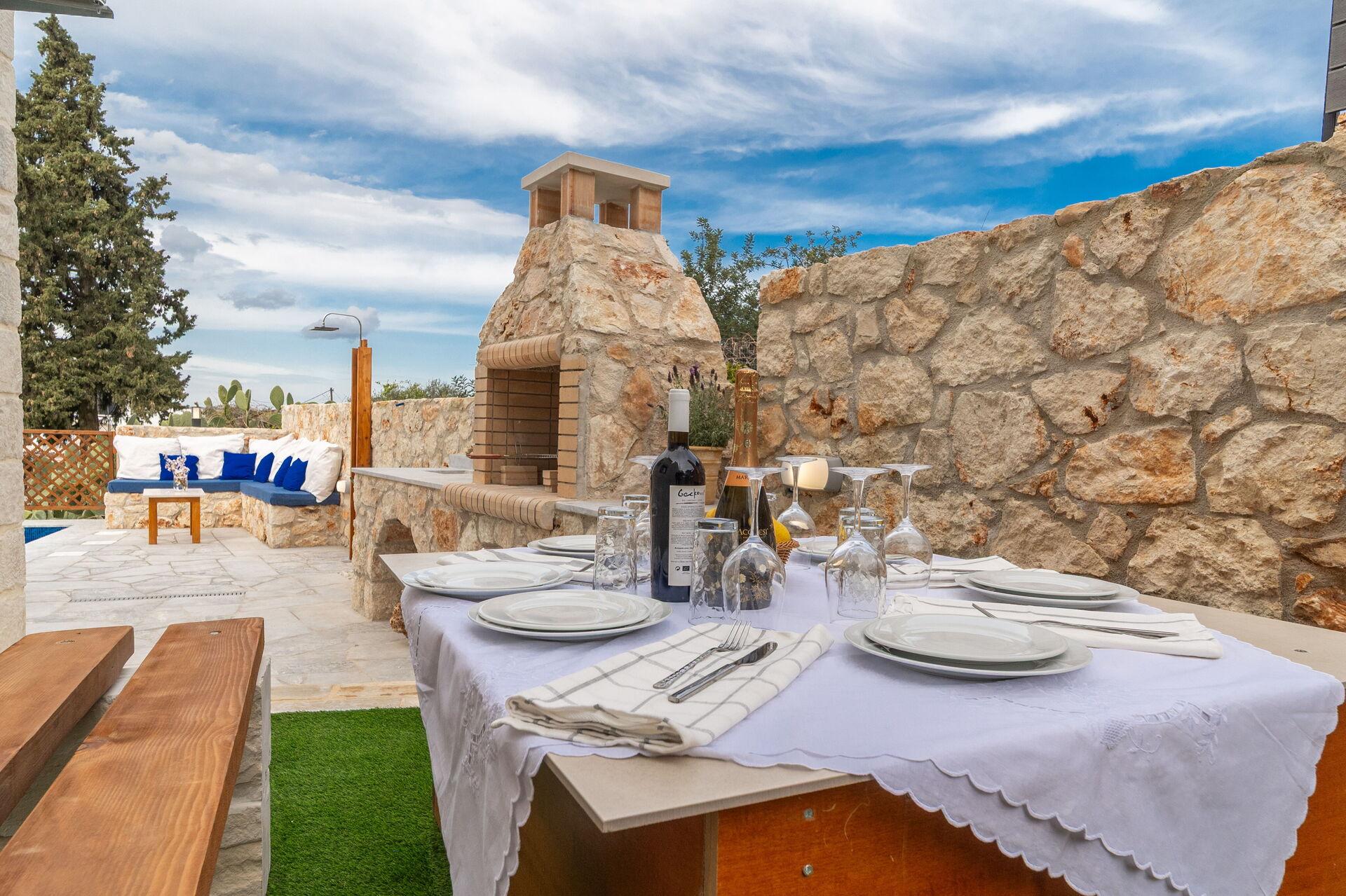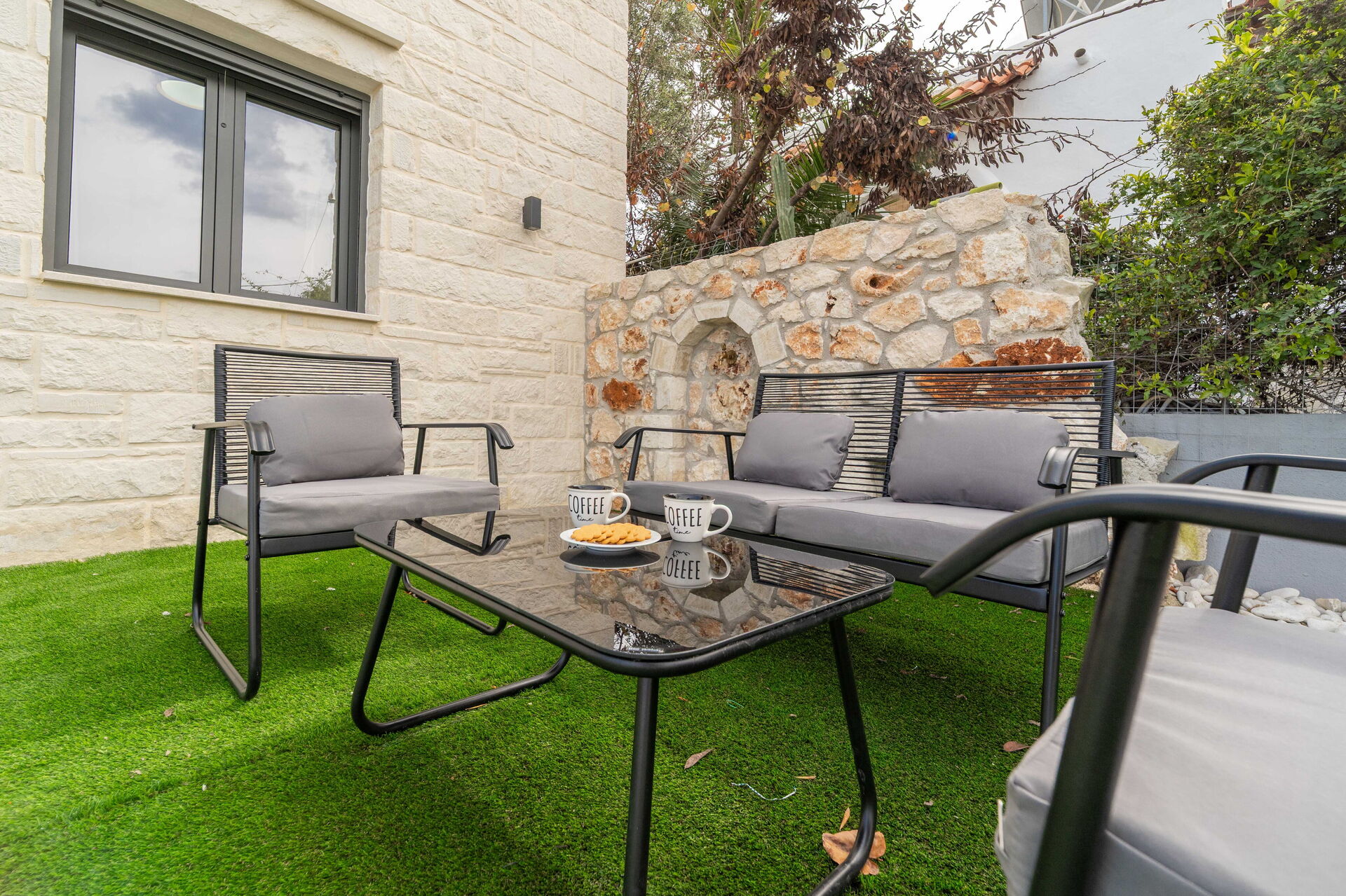 Udendørs er der et privat område med en grill og spisebord samt en smuk privat pool, hvor man kan køle sig ned på varme sommerdage. For dem, der elsker havet, er det heller ikke langt væk: Almyrida ligger kun 2 km derfra og tilbyder strandcaféer, butikker og traditionelle tavernaer.