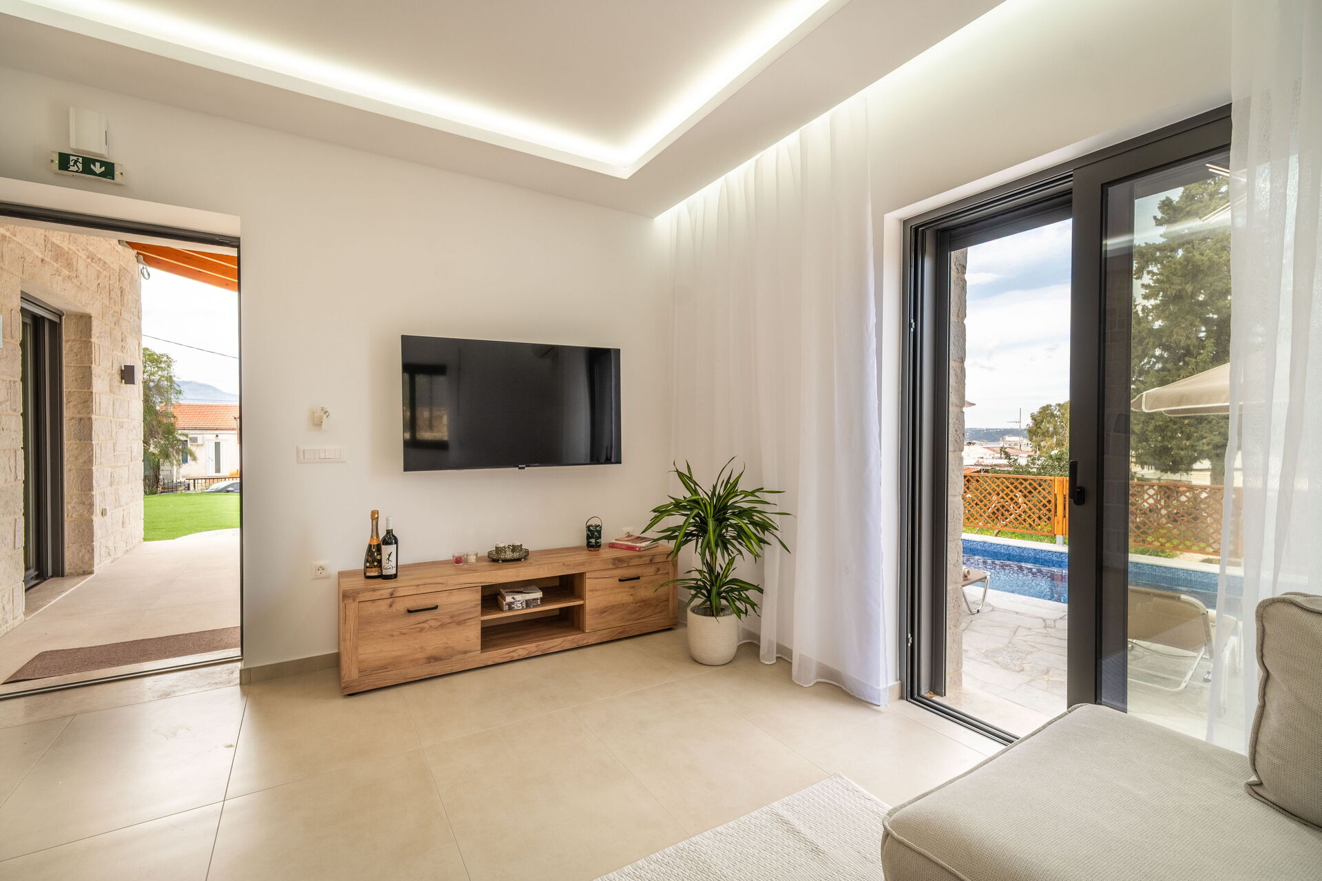 Wonderful villa, honestly everything was better than expected and in pictures. There is a sea and Mountain View which you can see a beautiful sunset, and the space plus places to stay are endless and very clean. Swimming pool was bigger then expected and super clean, there enough to park two cars and each room has its own air conditioning. I want to add that the villa owners were the best part, they were so sweet and welcoming, always smiling, giving good advice on local places to visit and living extra of what we actually needed.
