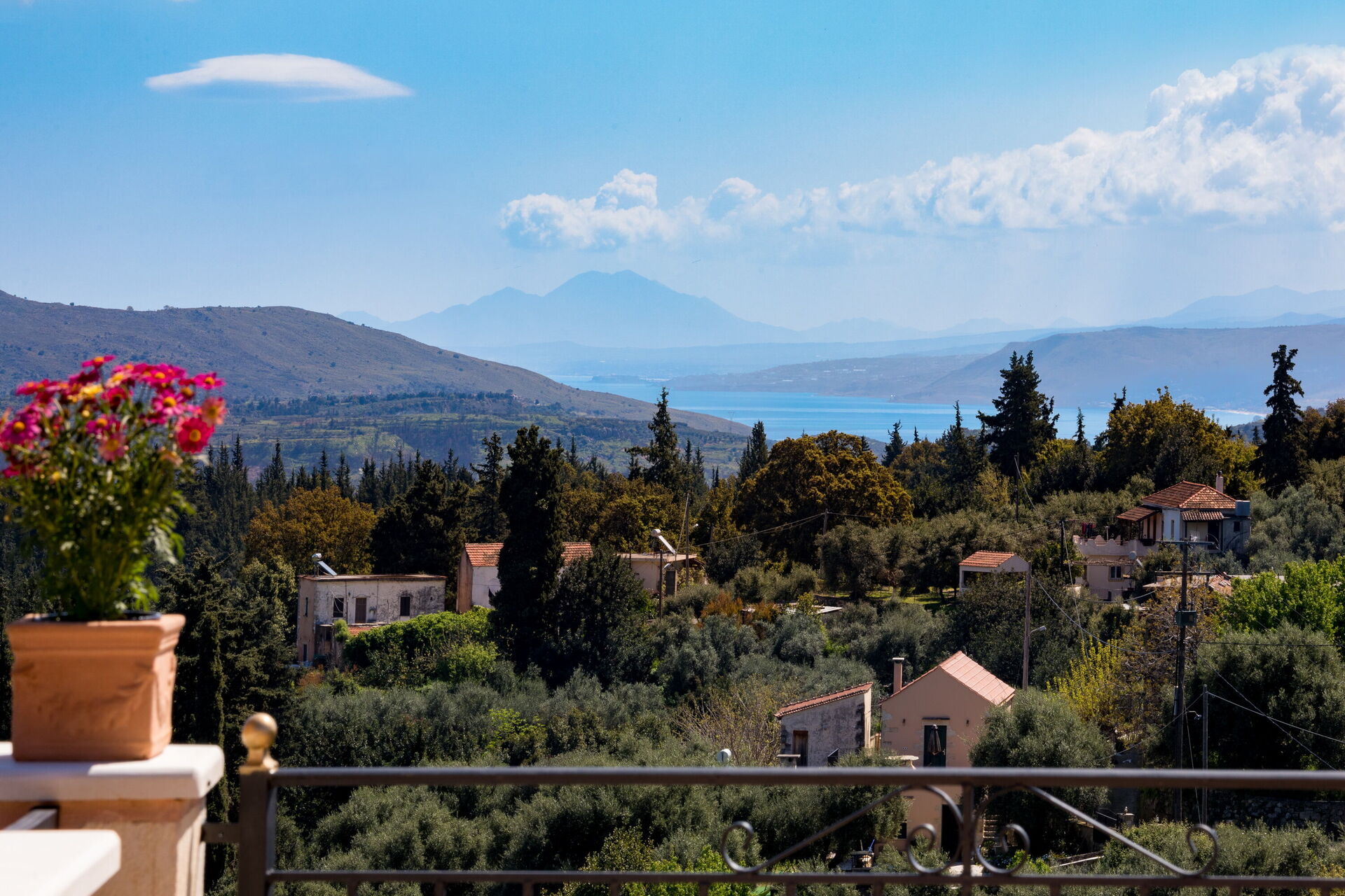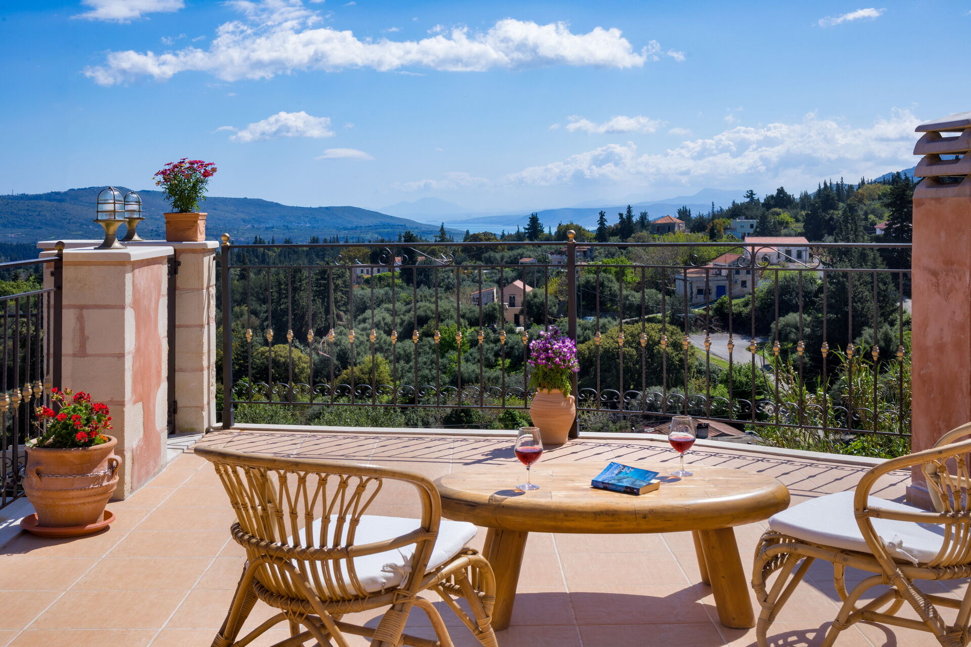 - Terrasse og altaner med panoramaudsigt over bakkerne og havet i afstand