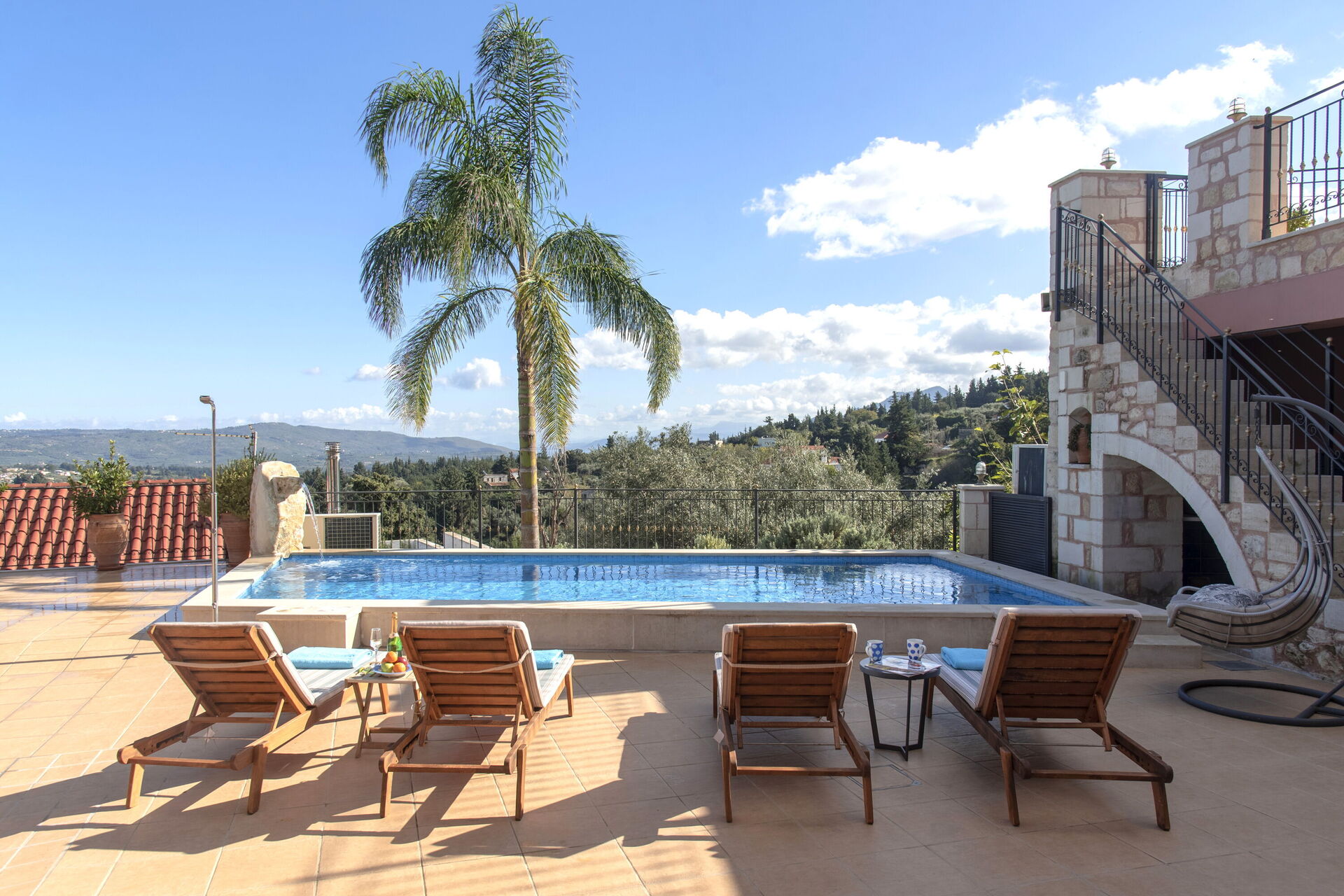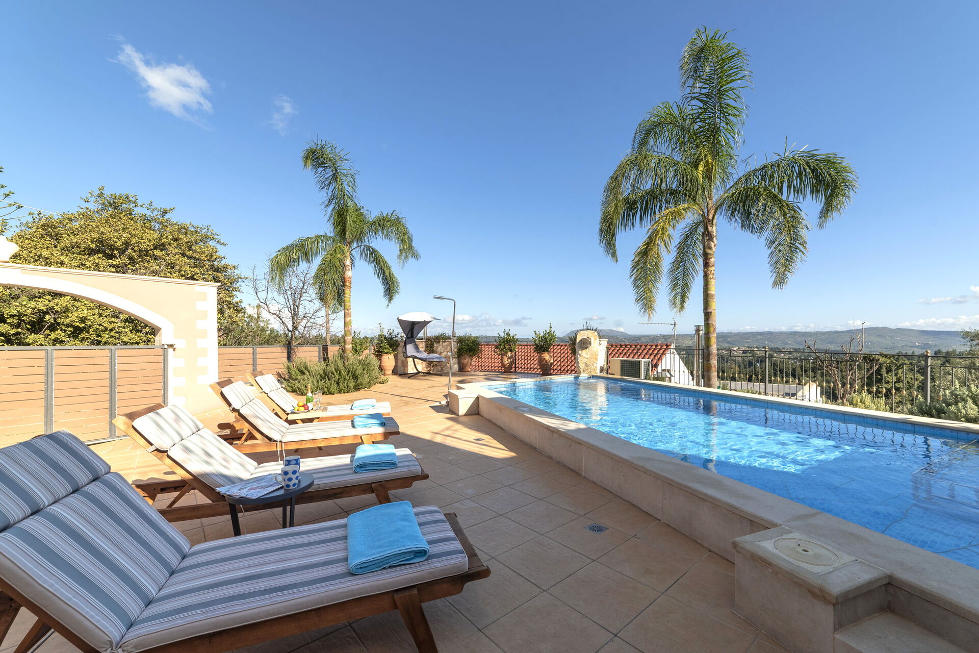 Efter anmodning kan poolen opvarmes og har spabad med udsigt over havet og det omkringliggende landskab.