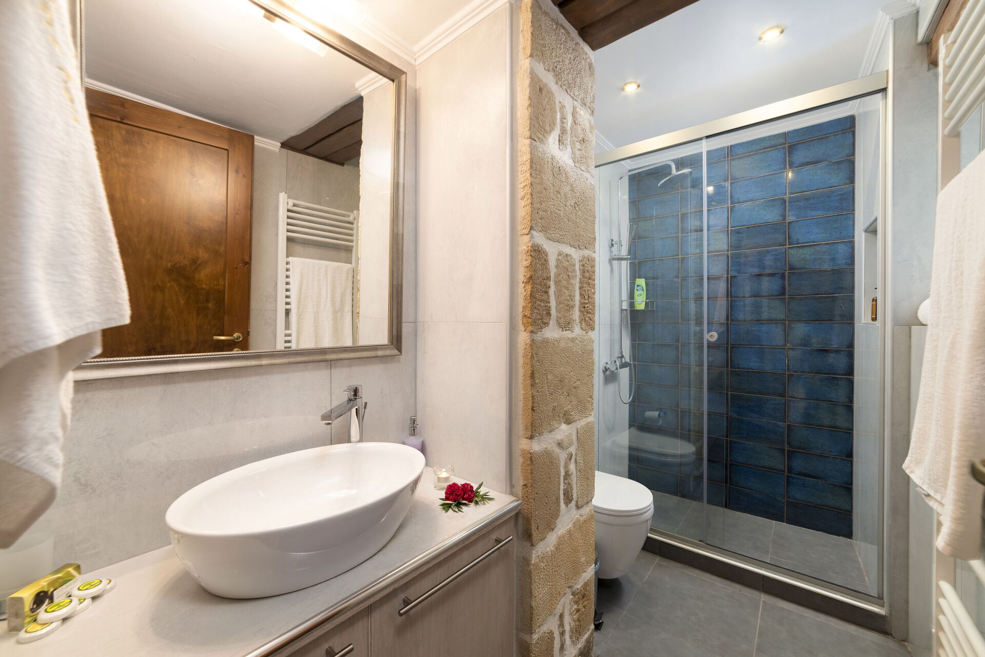 First of all, the mansion was amazing, like in the pictures! Enough space, everything worked well, nice showers, nice rooms, nice outside space, very quite with a lot of privacy, we loved that! Everything was very clean with a lot of nice places to relax, Pool was awesome! On our stay in the beginning of octobre the restaurants in walking distance were opened at Sat. and Sun. Other restaurants and markets are at least 5mins by car. We got contacted by the owner a couple of hours before check in over whatsap. Google maps doesn't show the correct home. We met the owner in another place and went together to the house. the road downstairs where to park is steep, no problem at all unless the road is not wet. Owner very lovely, friendly and explained everything well. To one of the most famous beach balos it's a 1.5h drive but it was absolutely worth, what a nice place:-)