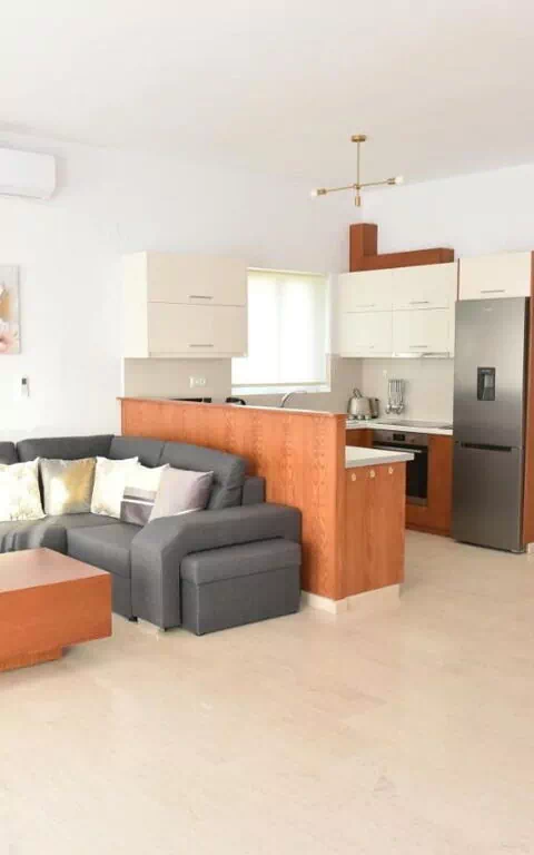 Having visited Greece as a family for more than 40 years we have experienced many, many apartments and this was by far the most well equipped and well thought out. Greek beds are renowned for being pretty ropey but these were so comfortable with lovely bedding. The sofa was way bigger than the photos suggested as way the whole apartment! Anything you can think of was provided, from fluffy towels and beach towels to dishwasher tablets, laundry detergent, first aid kit and a welcome package including wine and watermelon. The pool area was beautiful and the outdoor kitchen a lovely surprise. The pool itself was the perfect size and had a a large shelf at one end which was child depth. The host Chrysoula was very sweet and helpful, and brought us figs from her garden and local raki. All in all we had a wonderful, relaxing stay and would recommend it to anyone