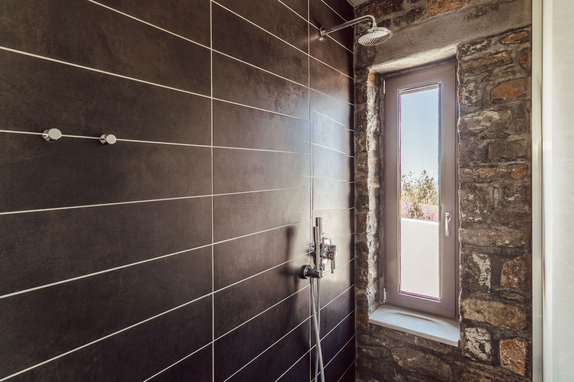 The pool (heated on request) was delightful and large, with quality sun loungers around it. There is also an outdoor shower for before/after a swim.