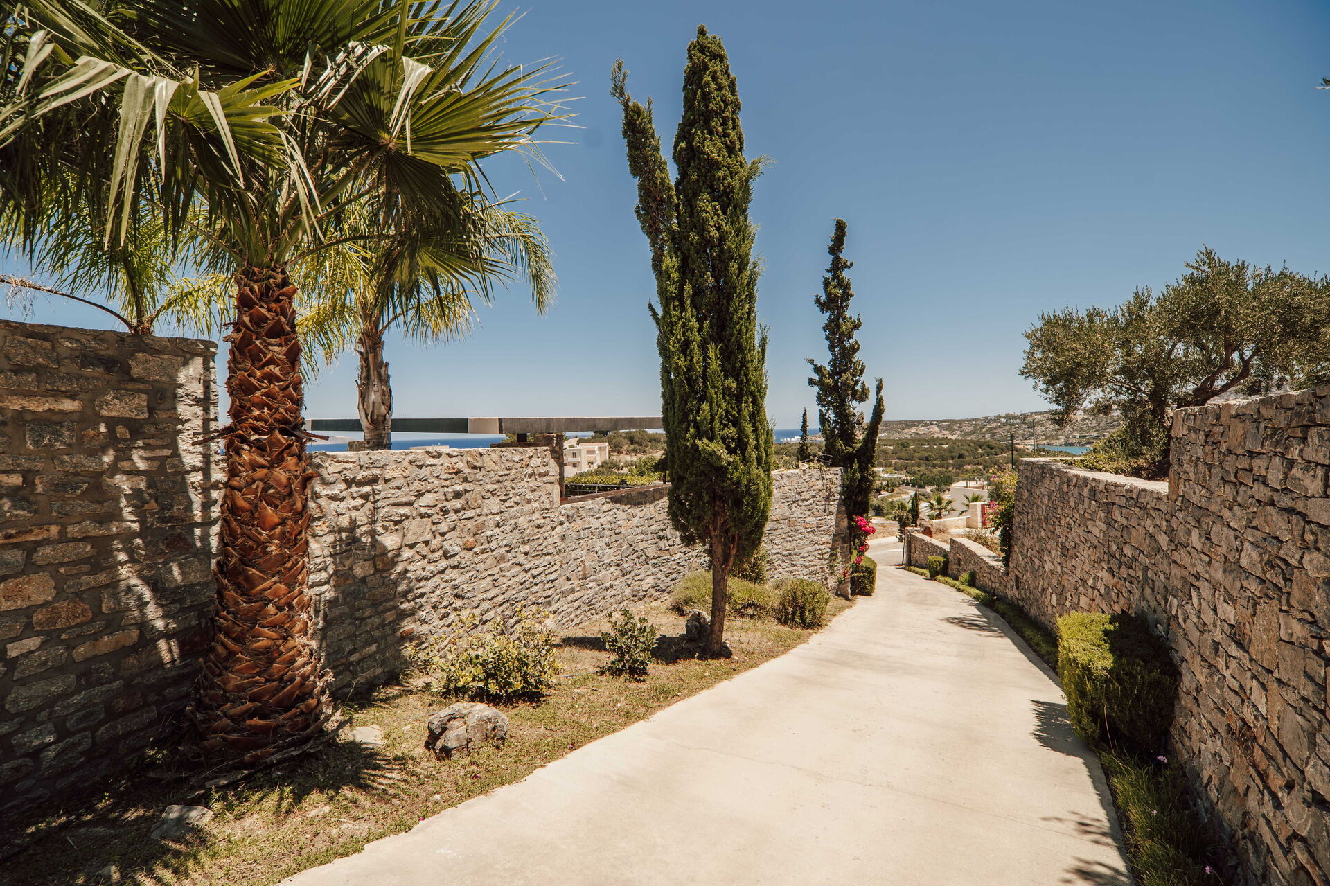 Afstande: havet 500 meter væk (Kera-stranden); Almyrida (butikker af alle slags) 1 km; Kalives (strand) 3 km; Georgioupoli 17 km; Chania 26 km; lufthavn 33 km; Rethimno 52 km; Heraklion 126 km.