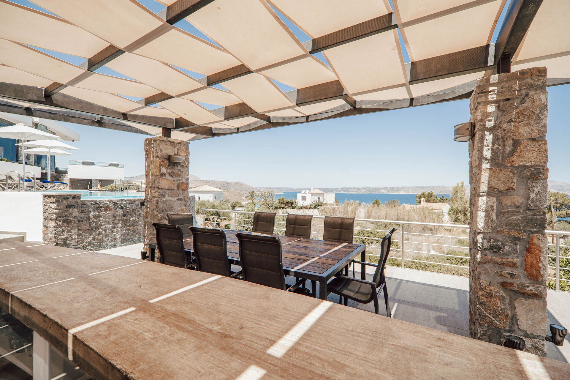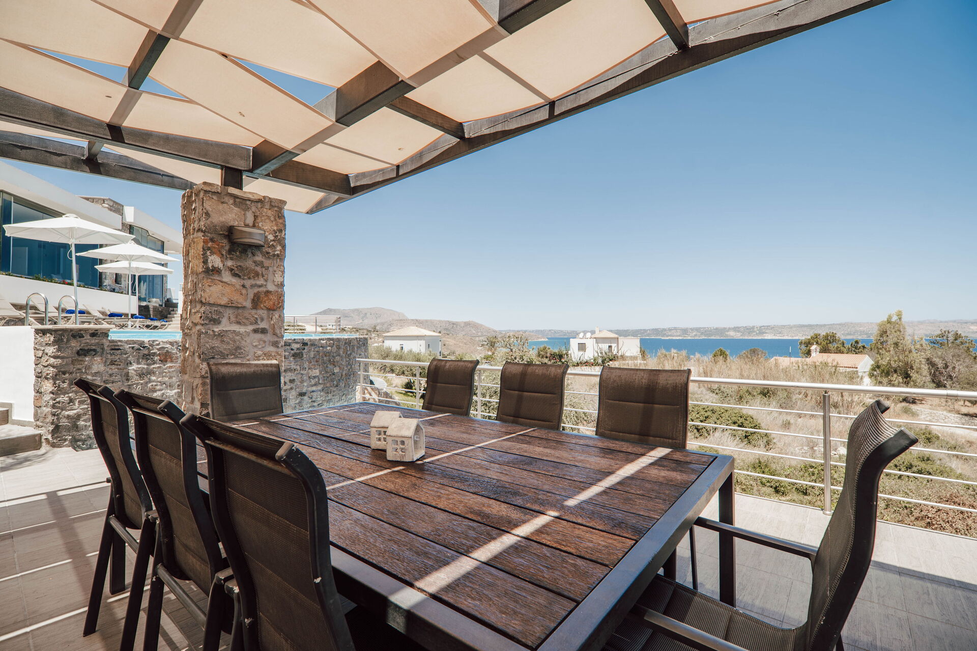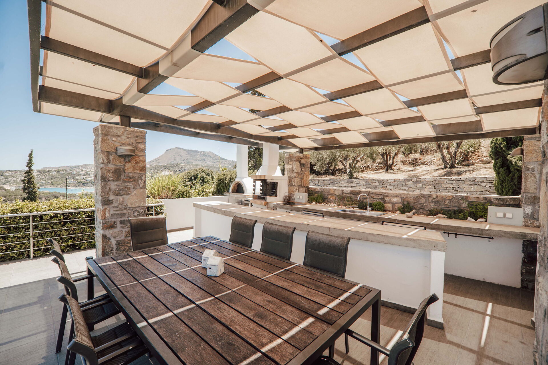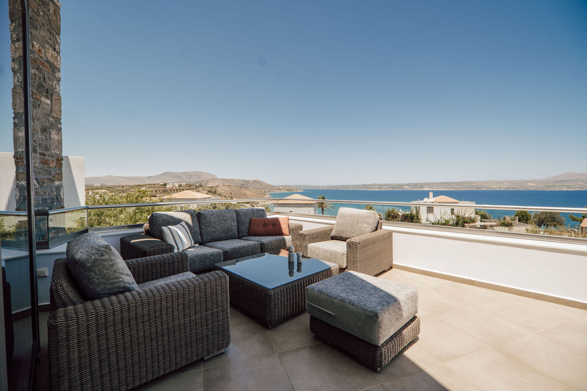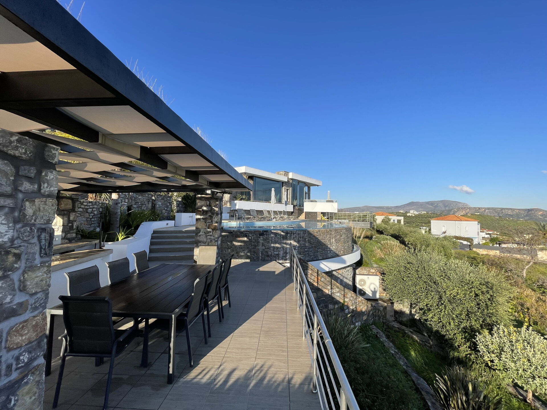 As a group of friends we had a fantastic time at this property. It is well kitted out, modern feeling, aircon in all the bedrooms. Great views and a lovely pool. A short 10min walk into Almyrida for eating out. We especially loved the outdoor kitchen dining area down by the pool and had all our meals down there. Vivian did a fantastic job with advice and recommendations and the few niggles we had were quickly sorted. Would love to come and stay again!