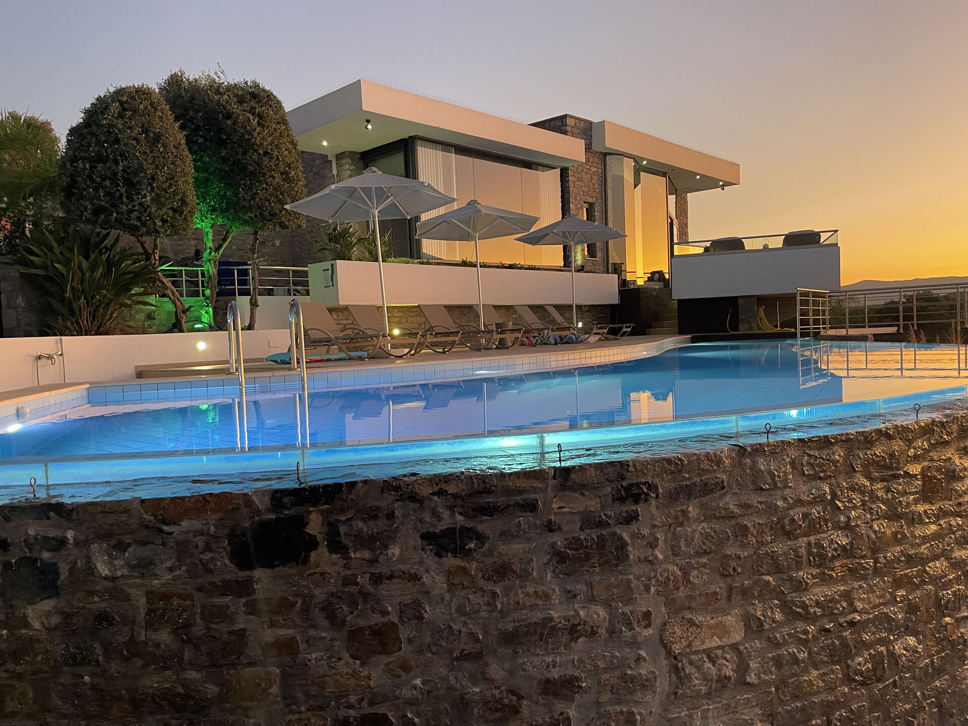 Poolen er smukt oplyst om natten og kan opvarmes efter anmodning. Poolen tilbyder absolut privatliv og er det perfekte sted til at nyde en forfriskende dukkert eller en cocktail i solnedgangen.