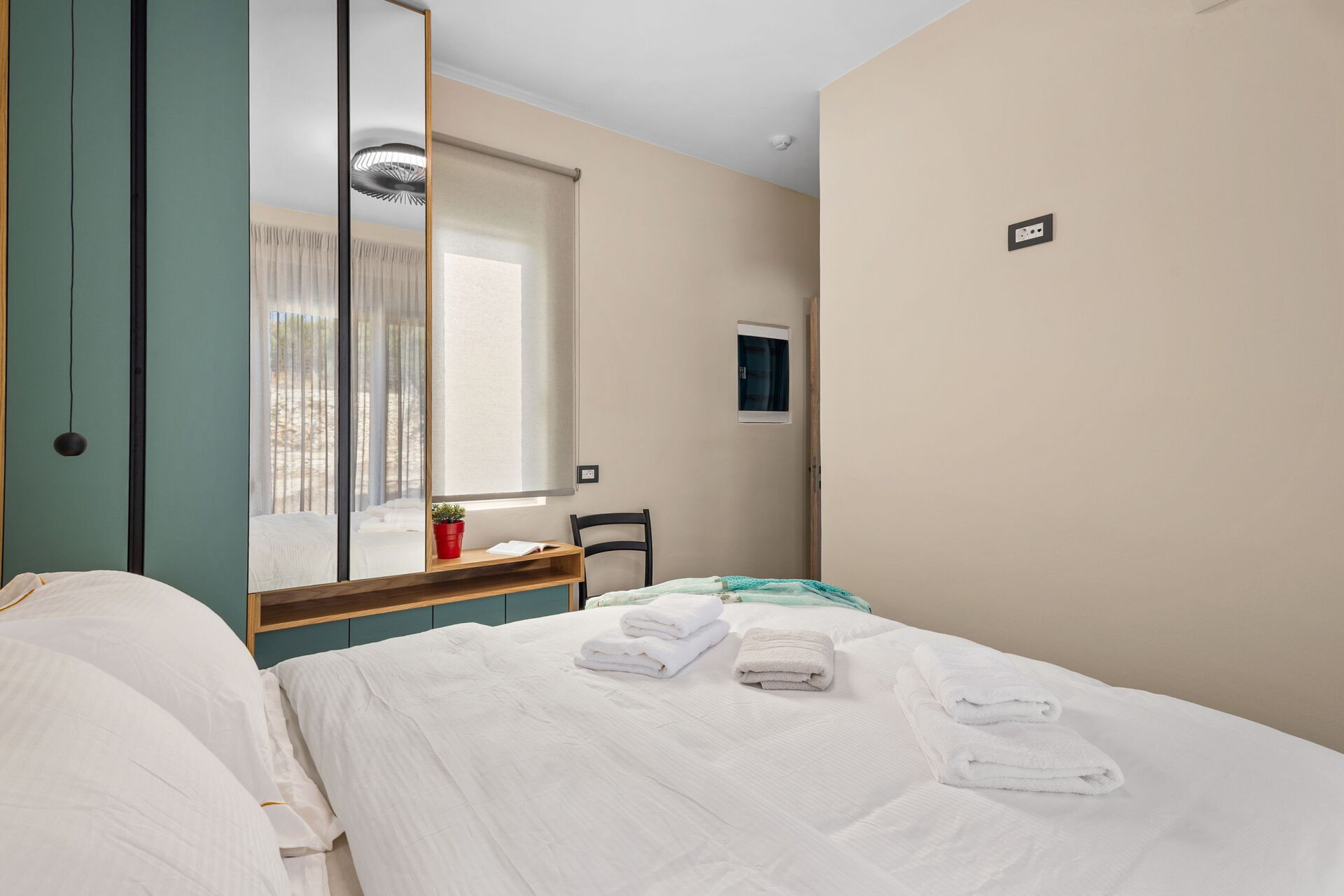 Afstande: Almyrida (alle slags butikker og sandstrand) 2 km, Vamos 6 km, Vrisses 10 km, Georgioupoli (alle slags butikker og strande) 15 km, Chania 28 km, lufthavn 33 km, Kournas-søen 20 km, Rethymnon 39 km, Heraklion 119 km, det berømte Knossos-palads 120 km.