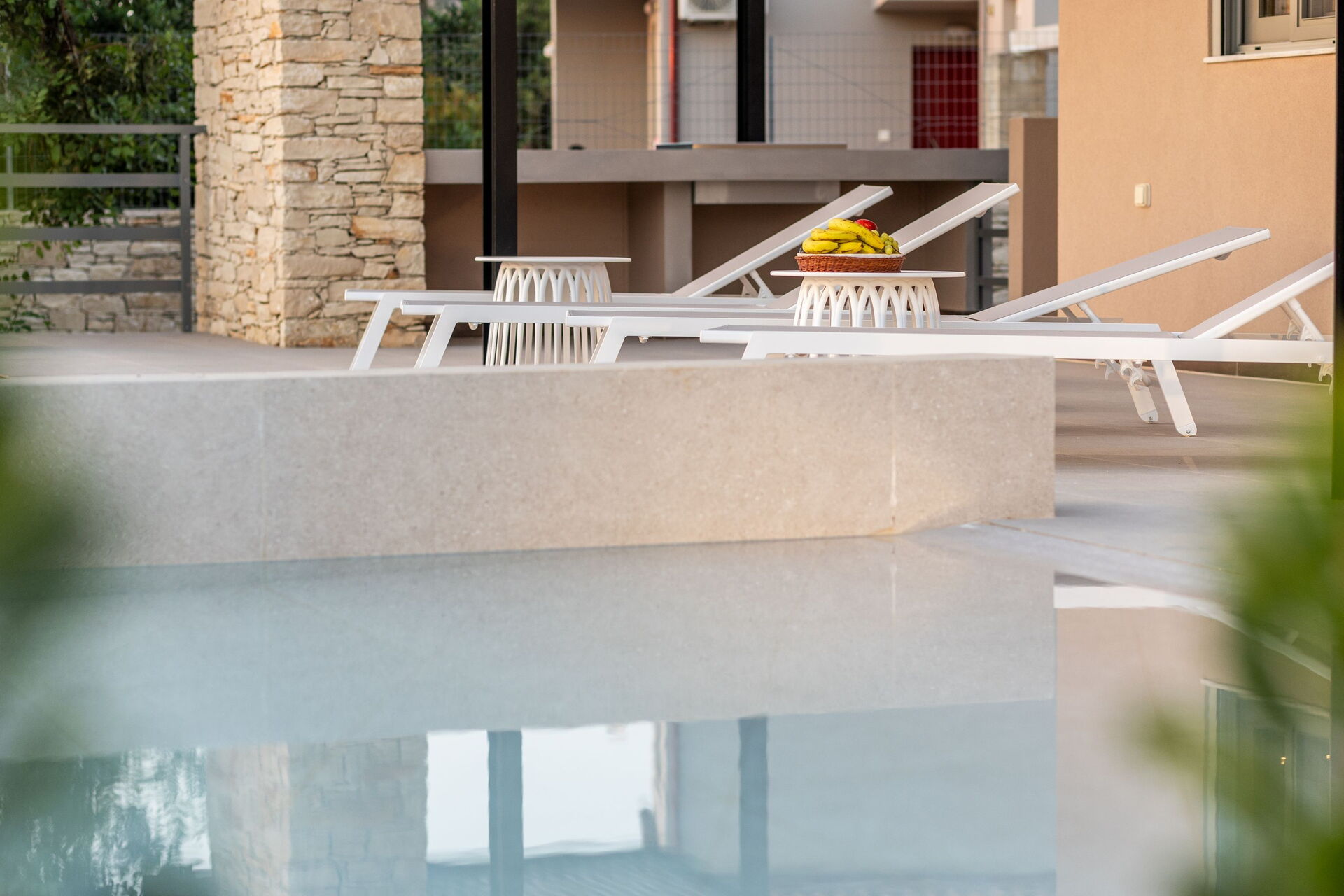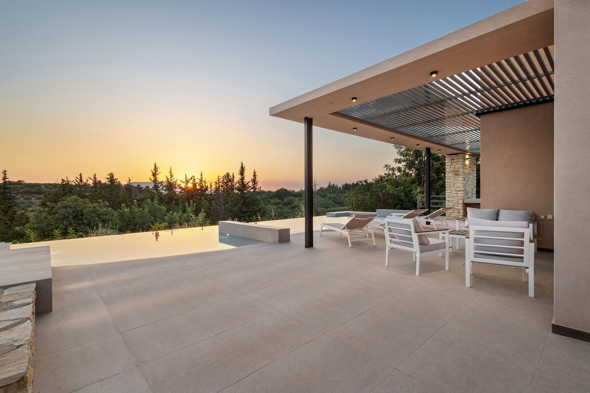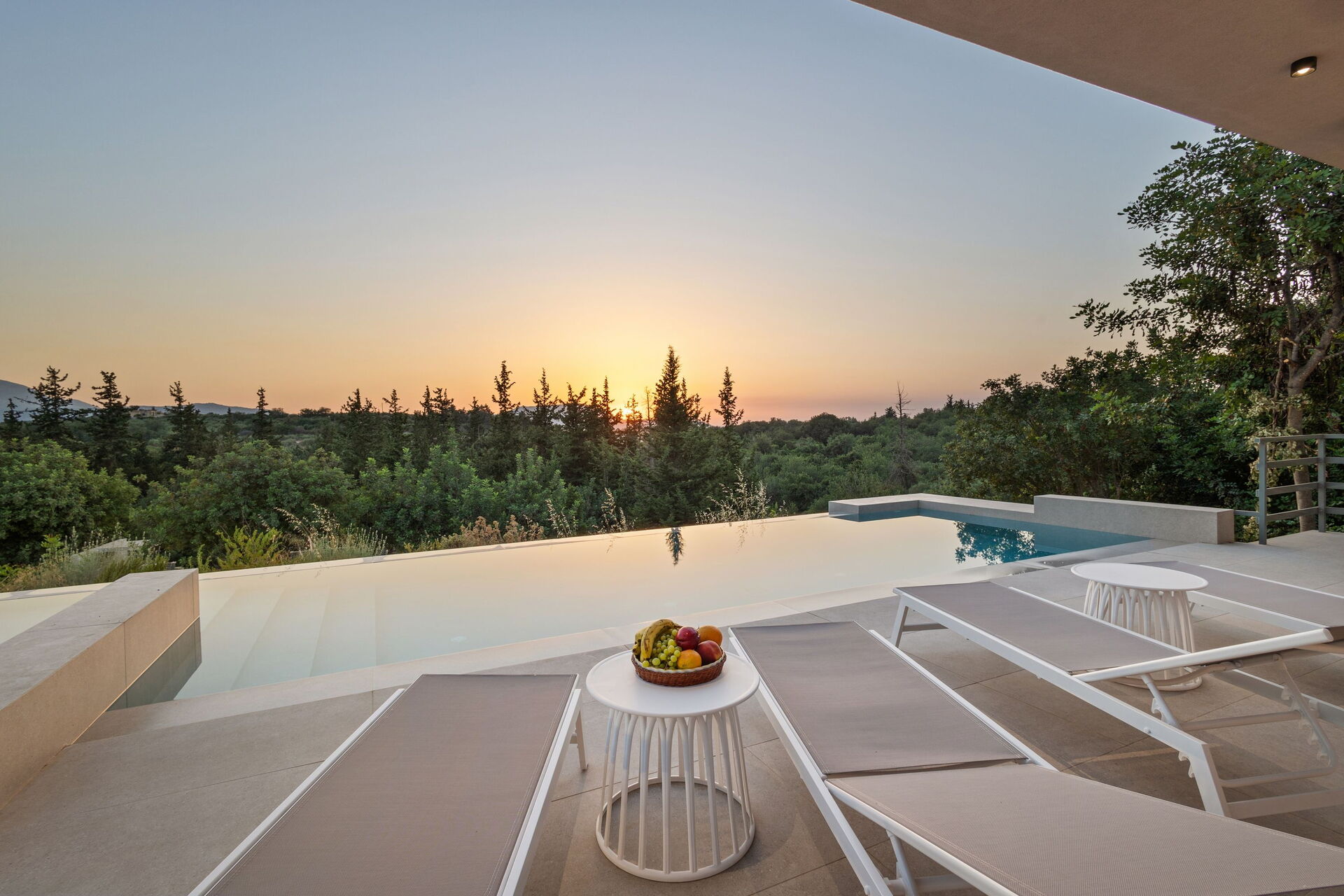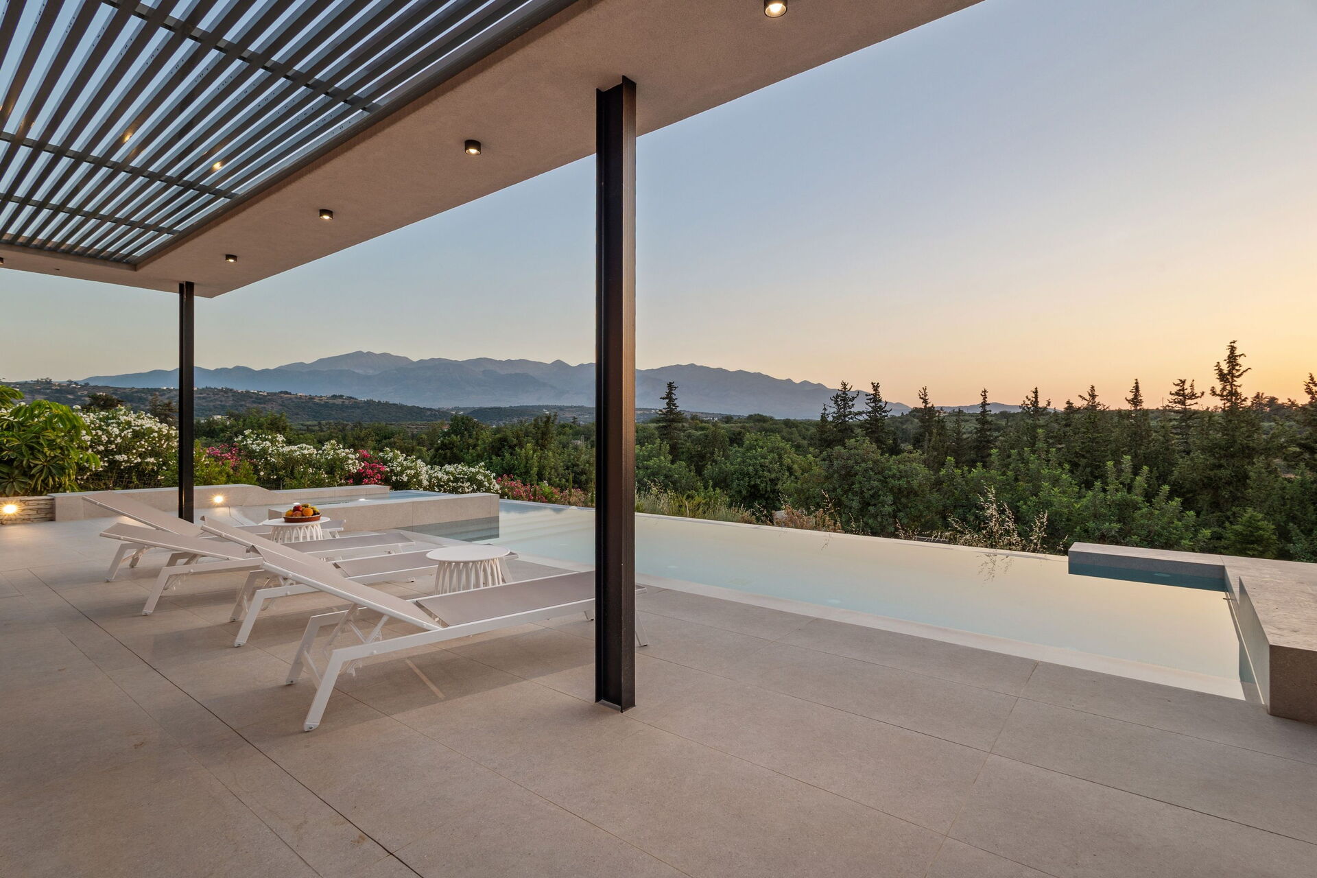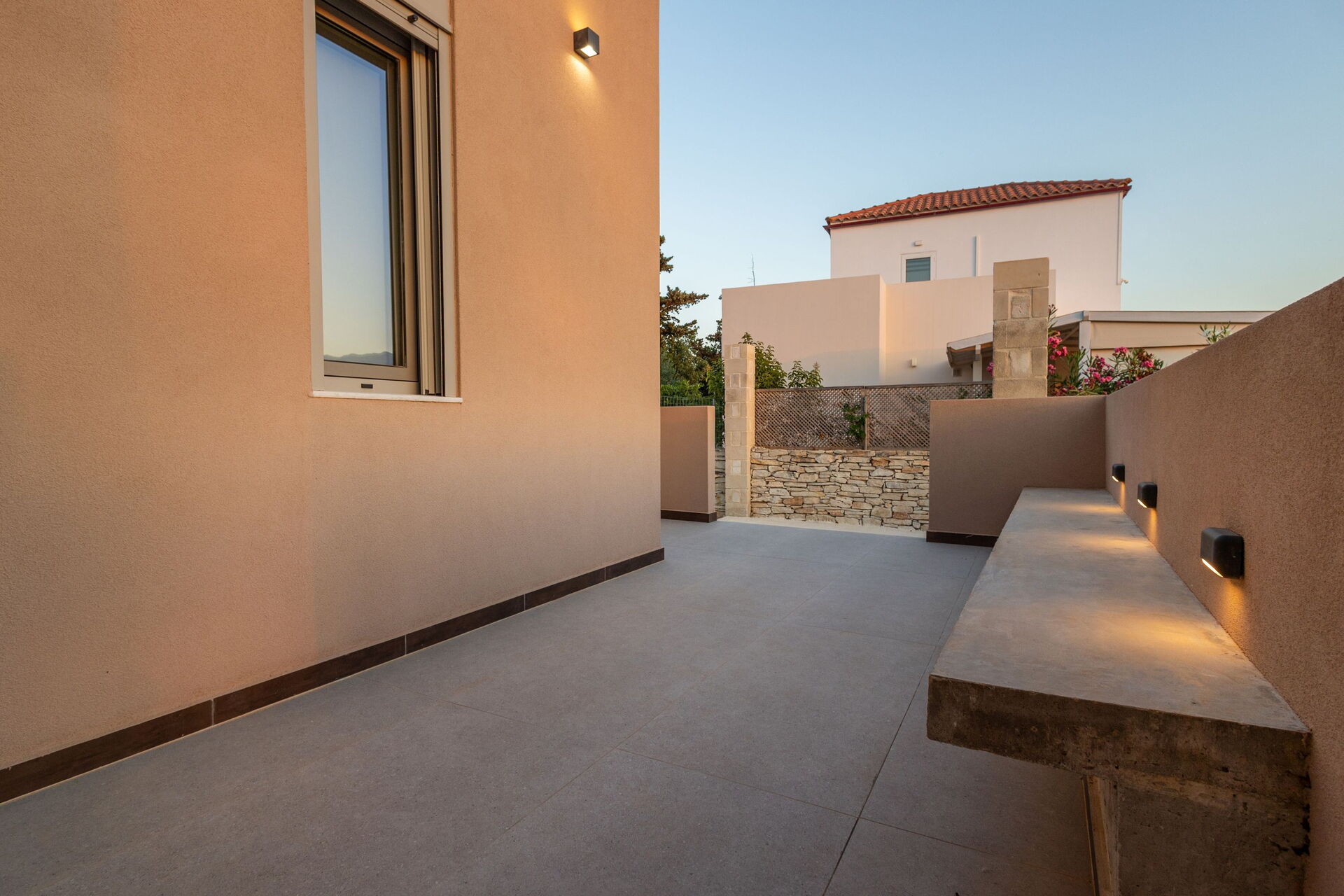 Udeområdet er udstyret med grill og bord, så man kan nyde måltider udendørs, samt en smuk privat pool, hvor du kan køle dig ned på solrige sommerdage på Kreta. Fra ejendommen har man en pragtfuld panoramaudsigt over det omkringliggende landskab med olivenlunde, cypresser og middelhavsplanter som ramme om uforglemmelige øjeblikke under den græske sol.