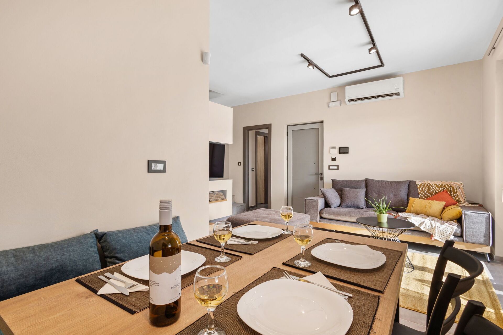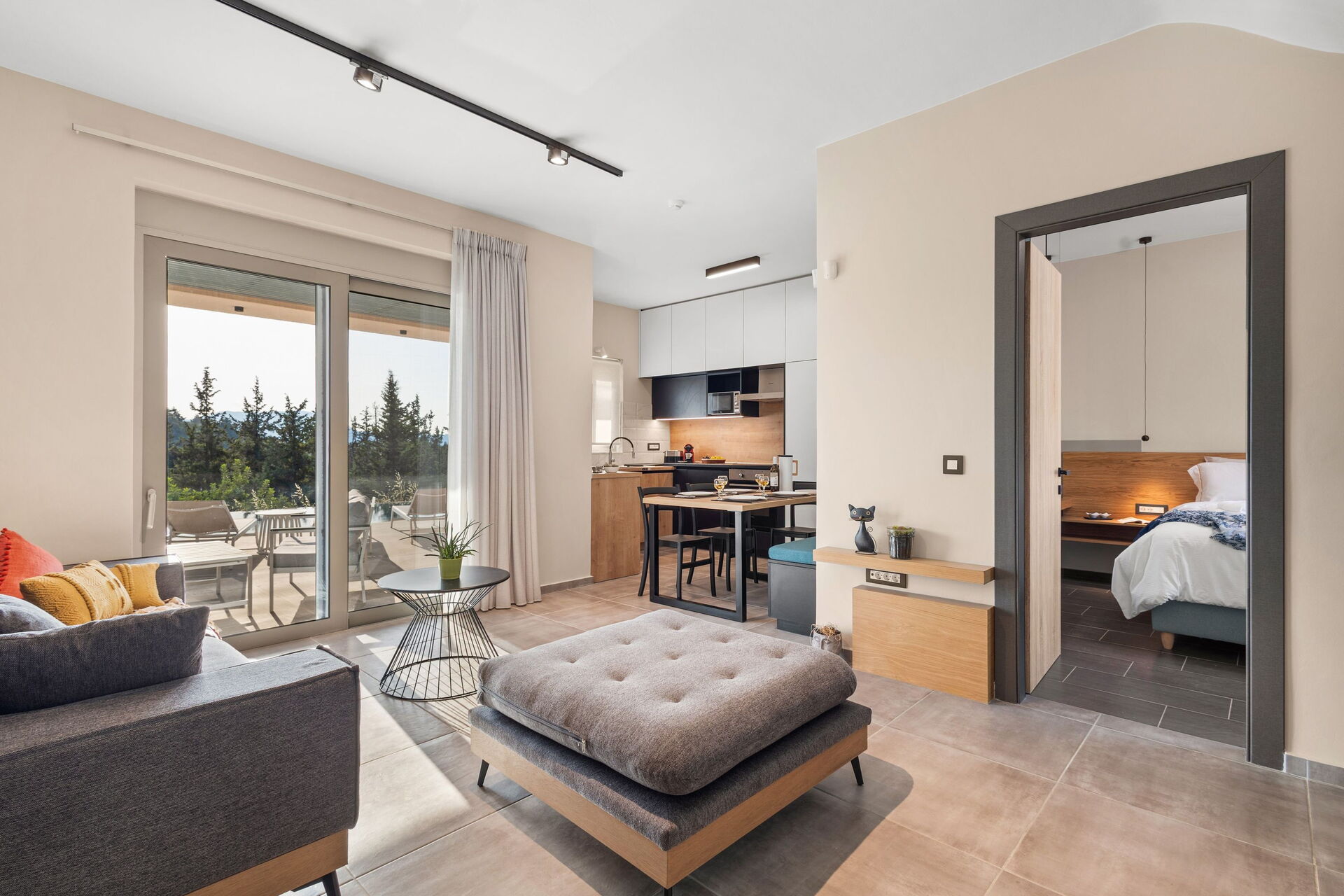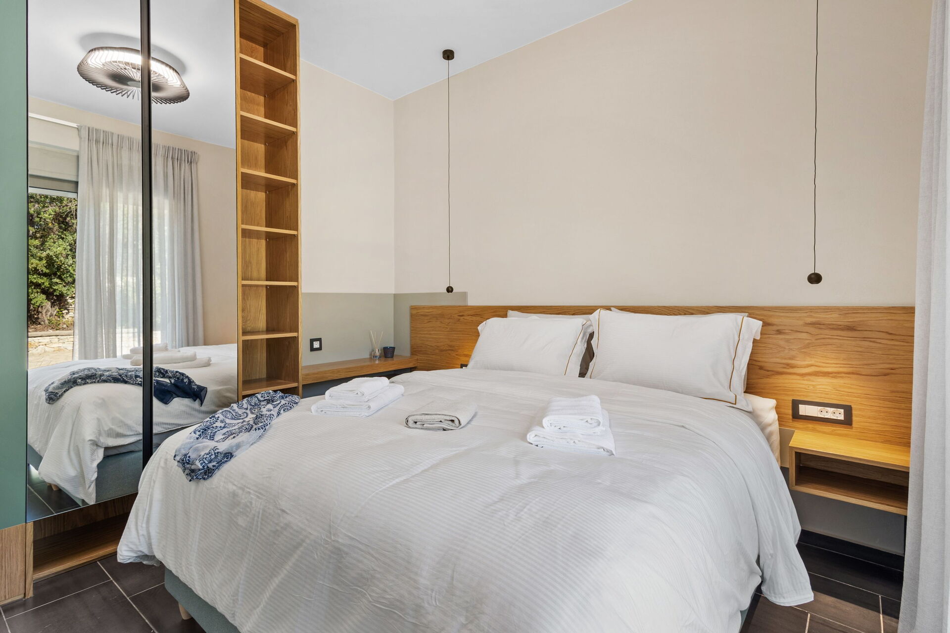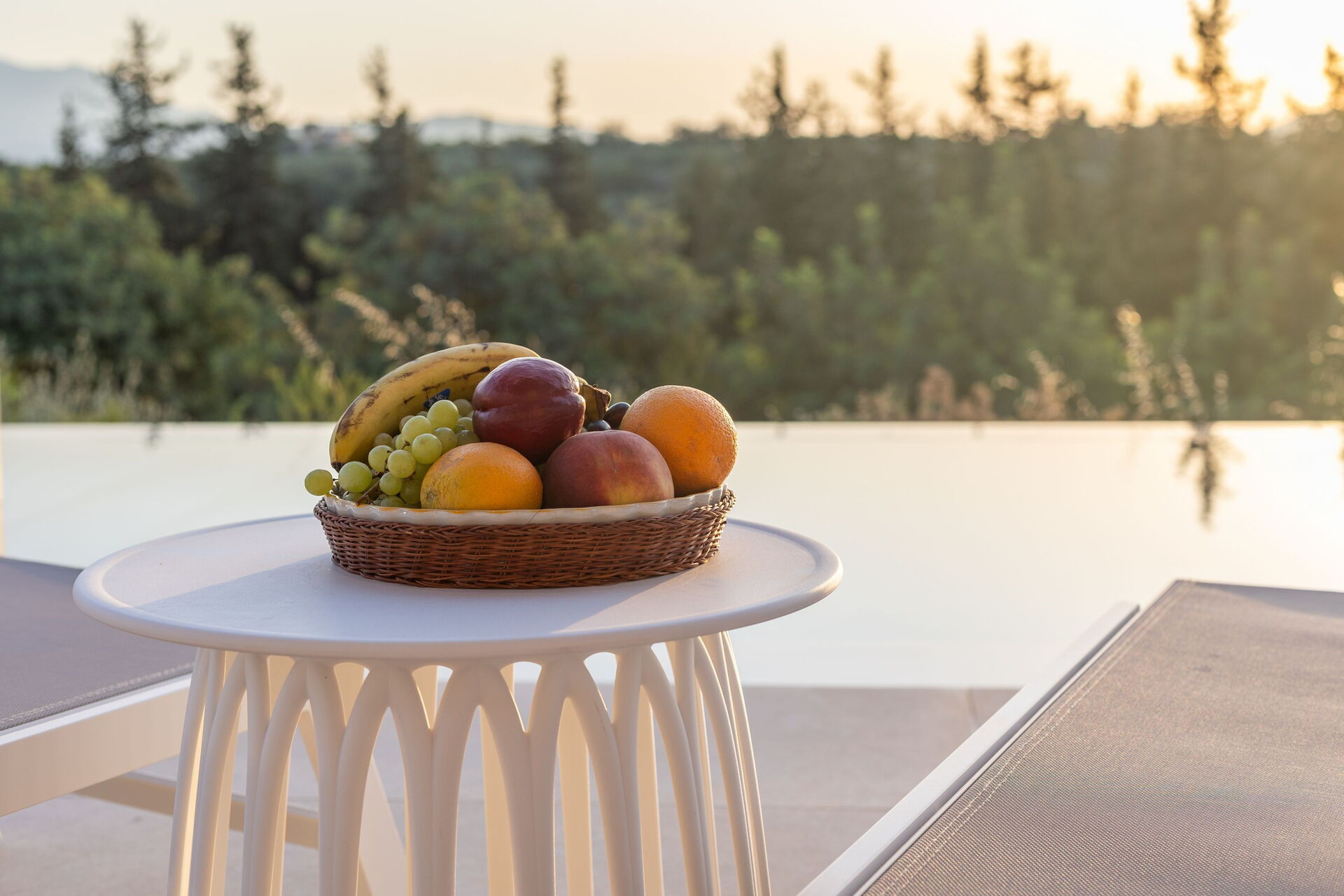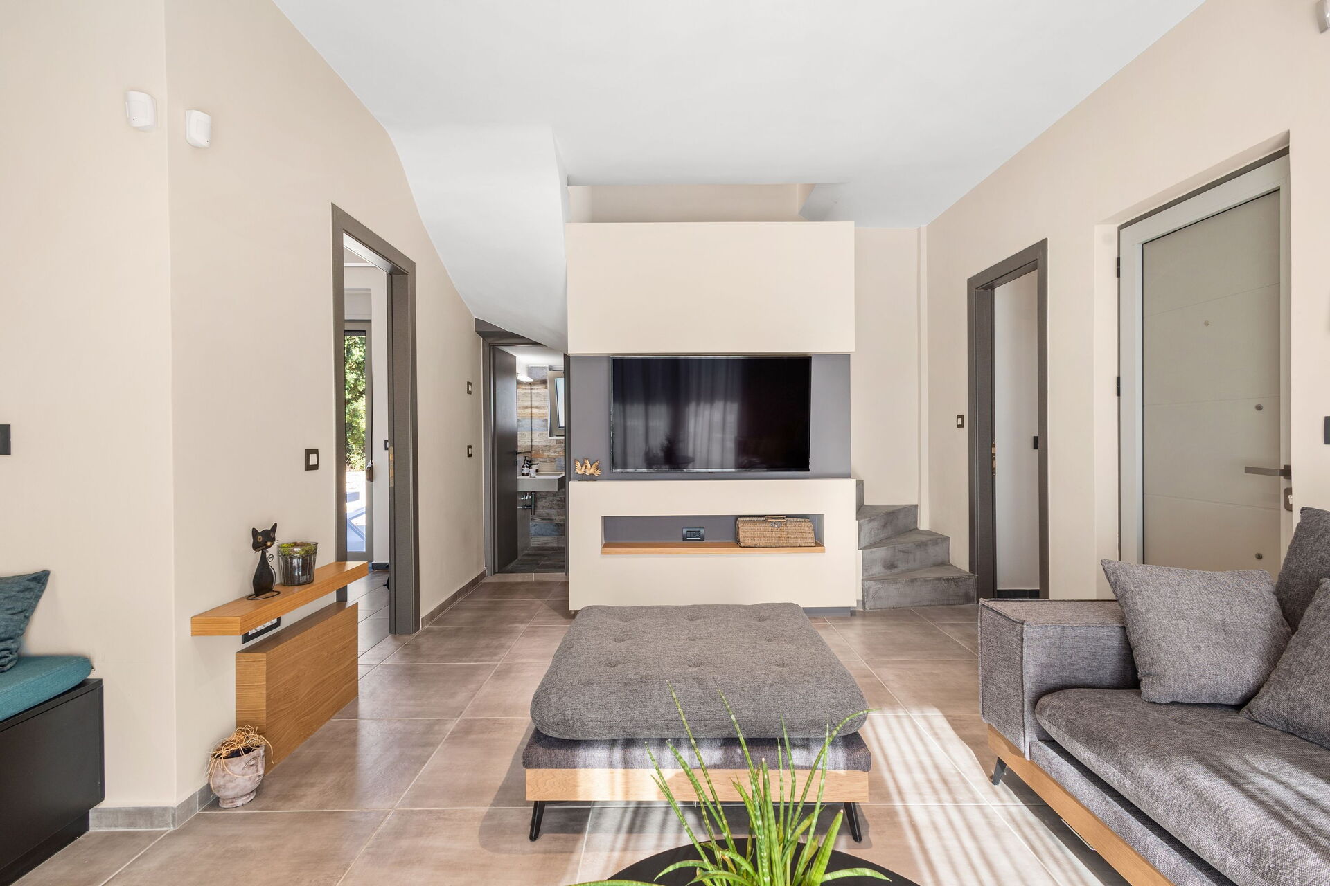 Udeområdet er udstyret med grill og bord, så man kan nyde måltider udendørs, samt en smuk privat pool, hvor du kan køle dig ned på solrige sommerdage på Kreta. Fra ejendommen har man en pragtfuld panoramaudsigt over det omkringliggende landskab med olivenlunde, cypresser og middelhavsplanter som ramme om uforglemmelige øjeblikke under den græske sol.