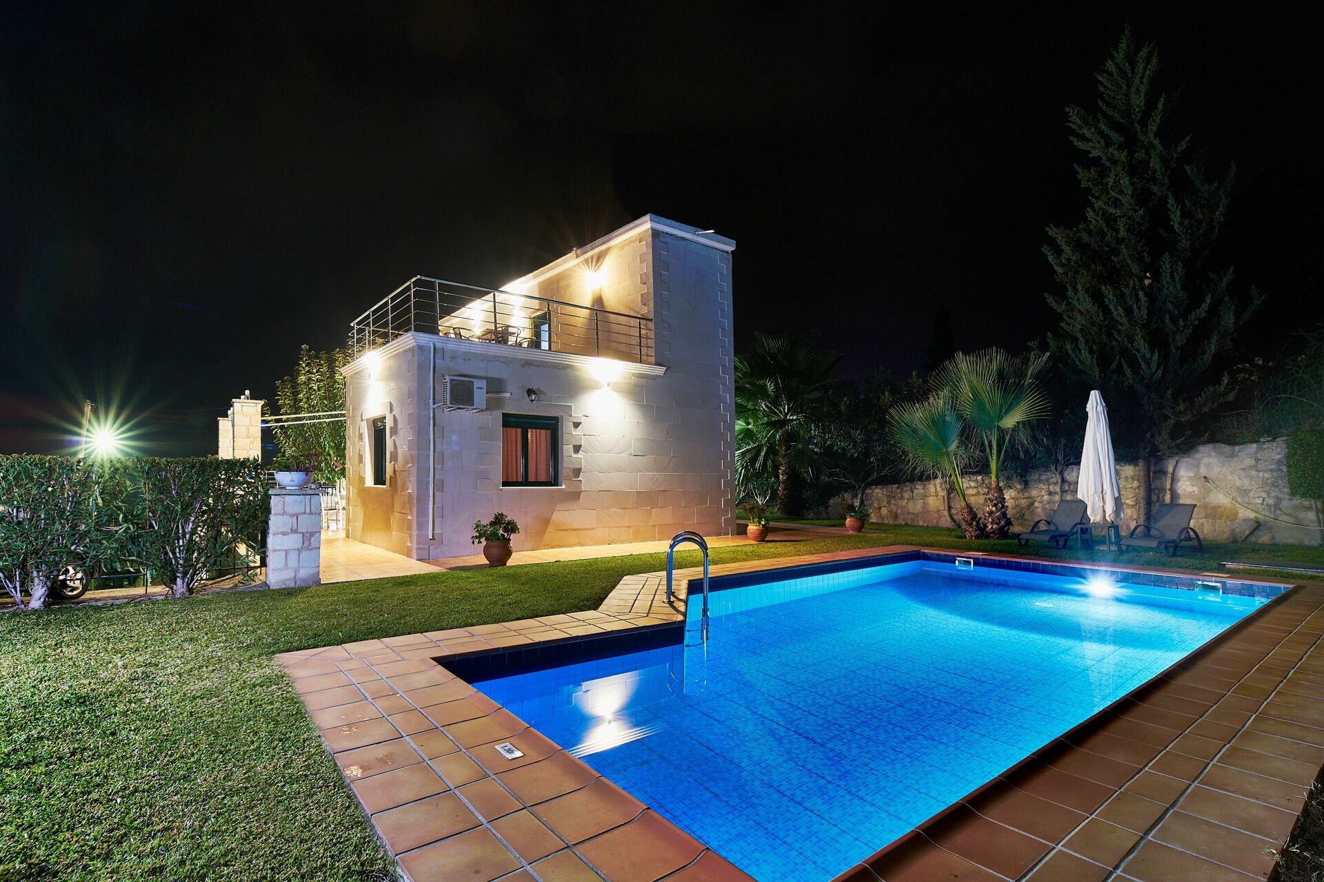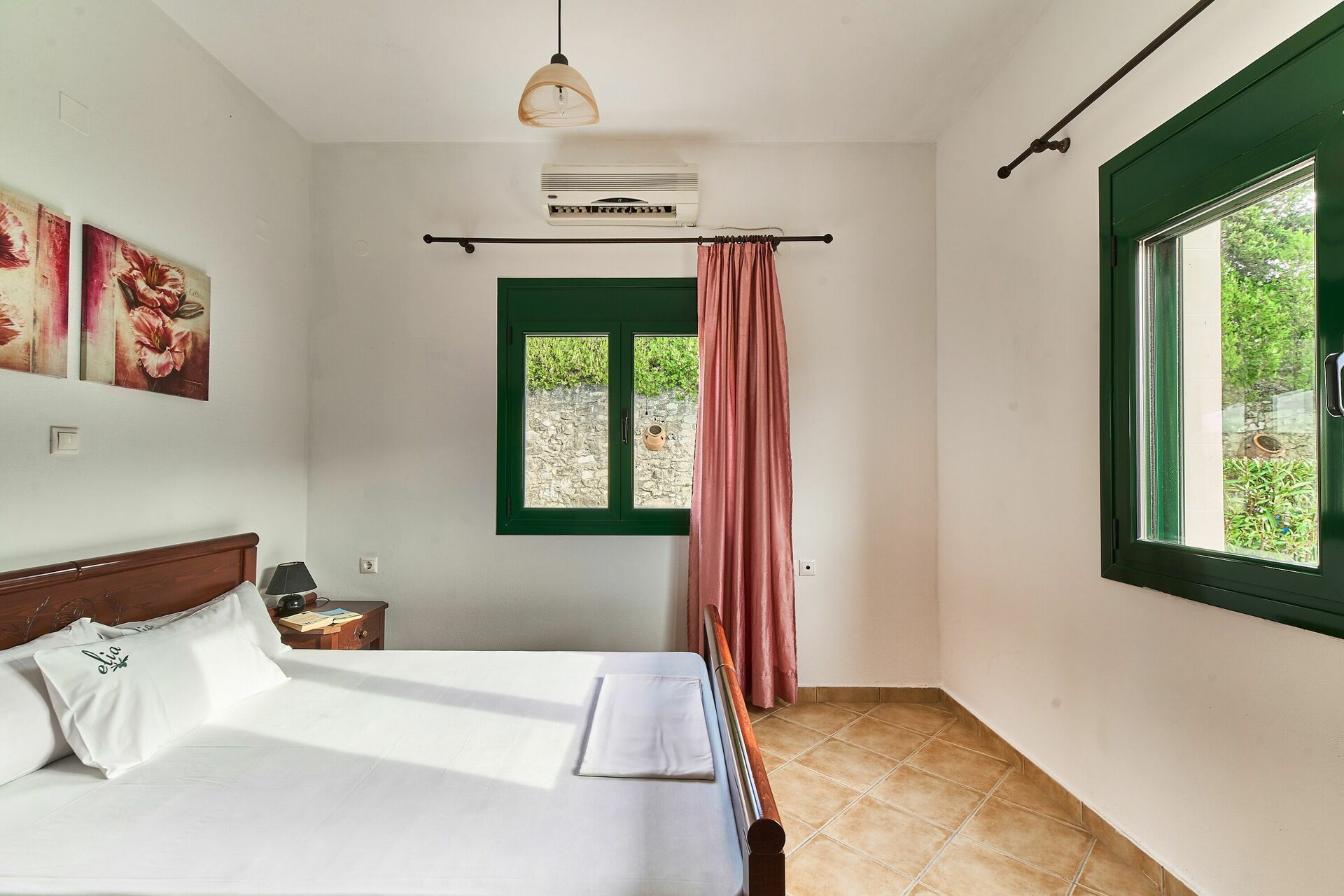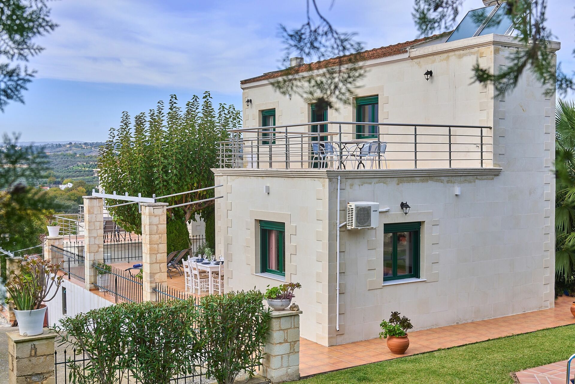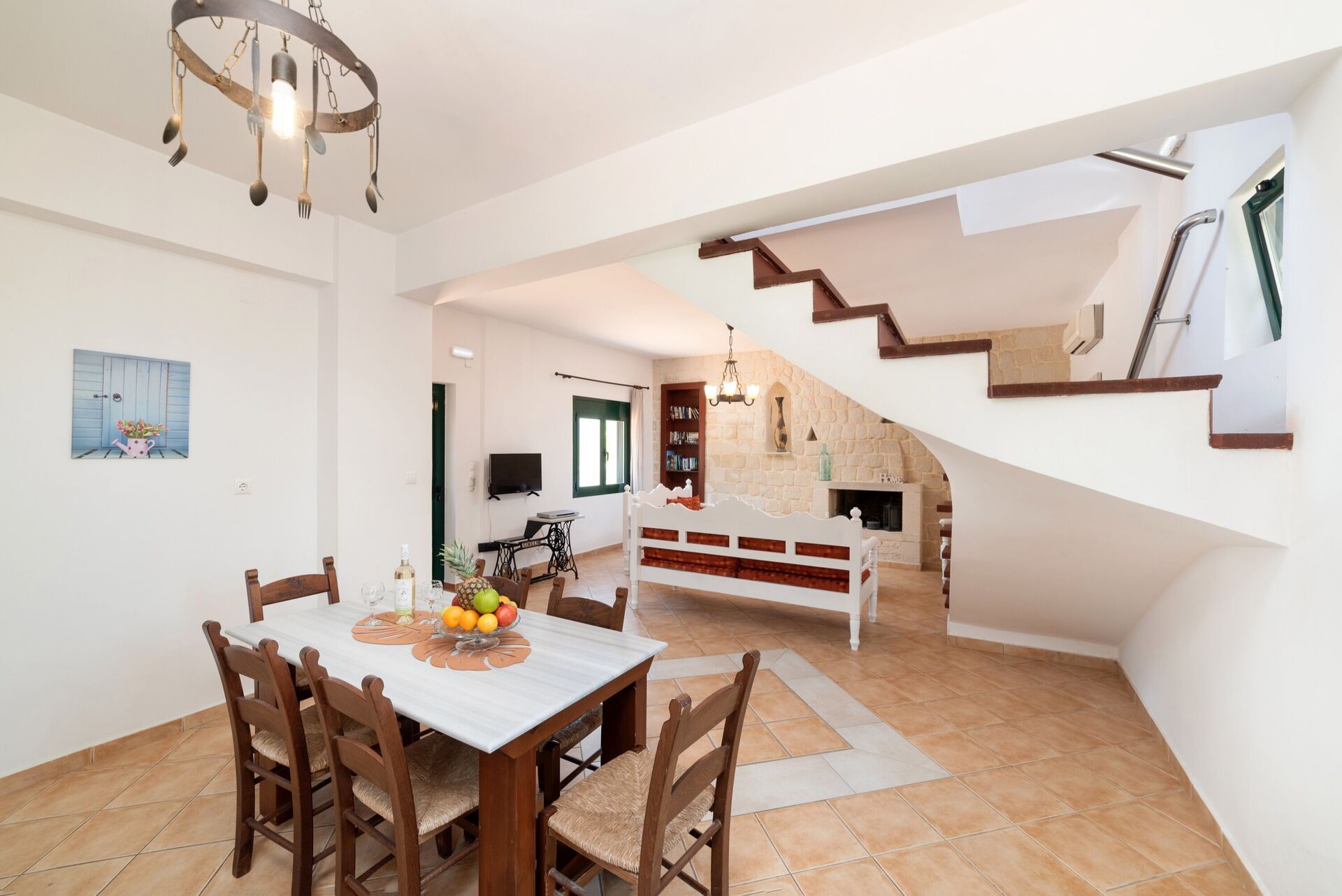 Indendørs byder de to-etagers villaer på aircondition og er smagfuldt og stilfuldt indrettet med lokale sten og traditionelle elementer fra Kreta.