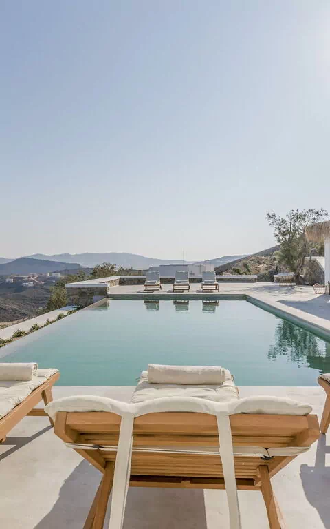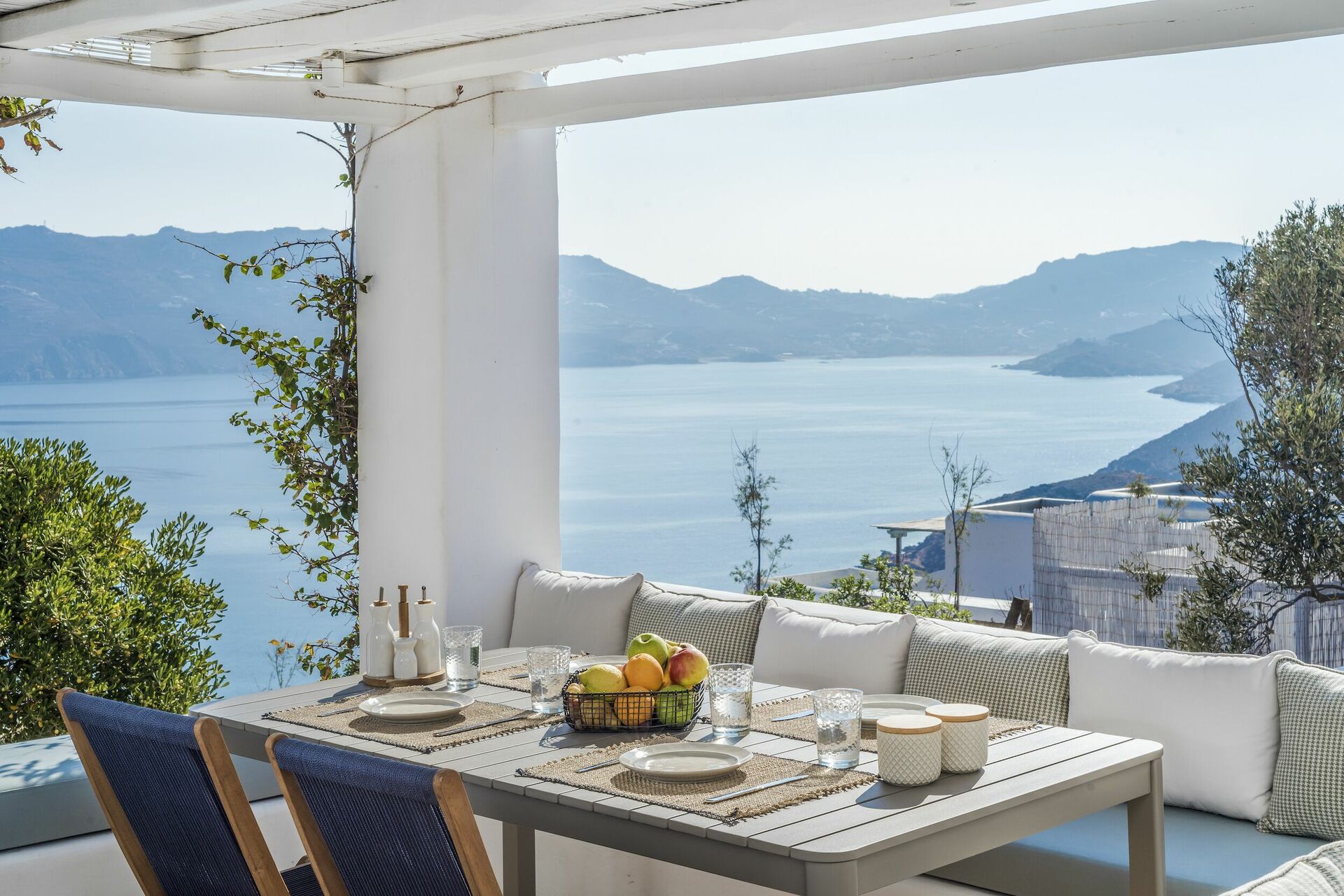 Villaen har en fantastisk udsigt over Panormos-bugten og Agios Sostis-stranden, kun 2 minutter væk i bil.