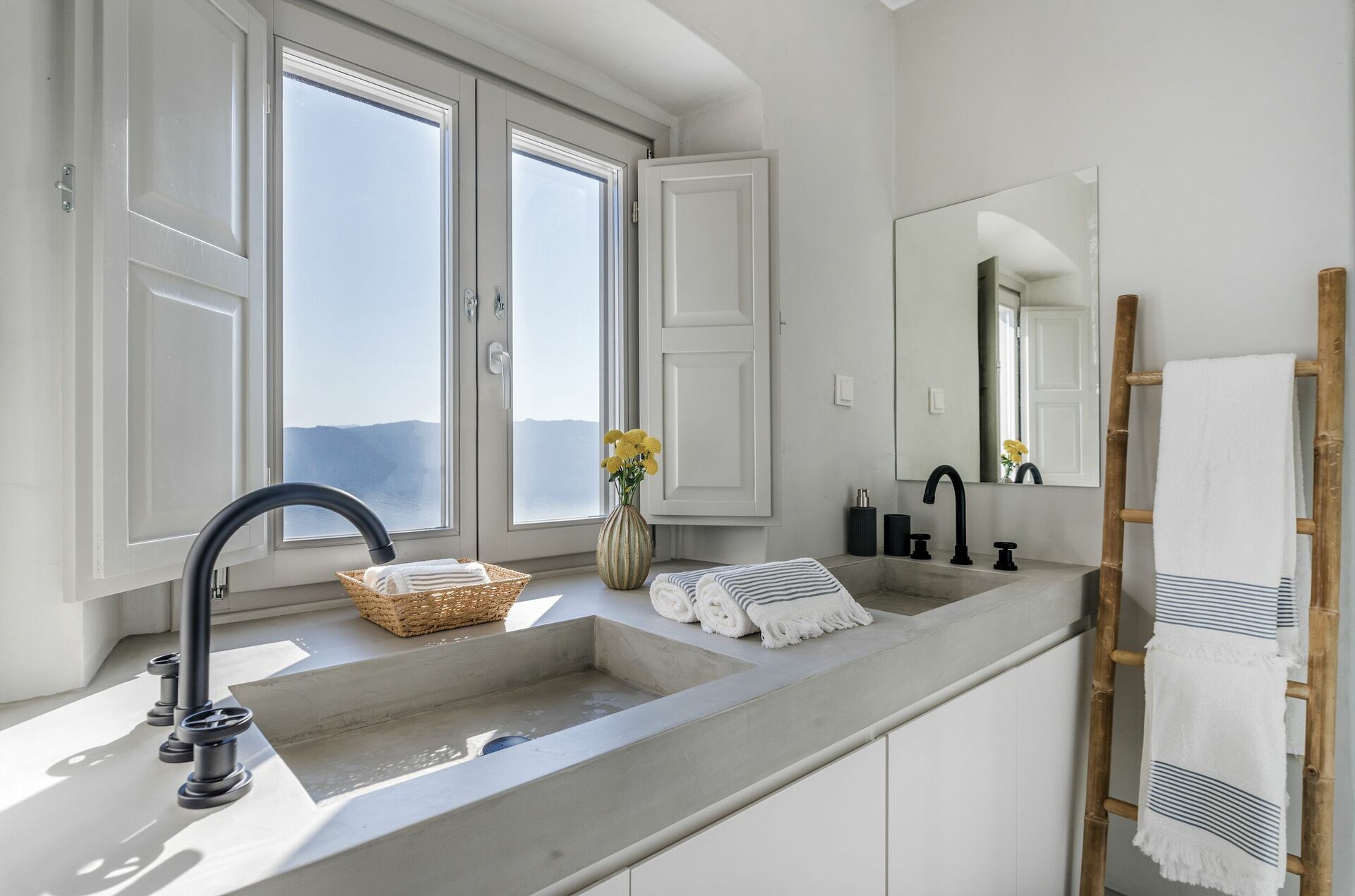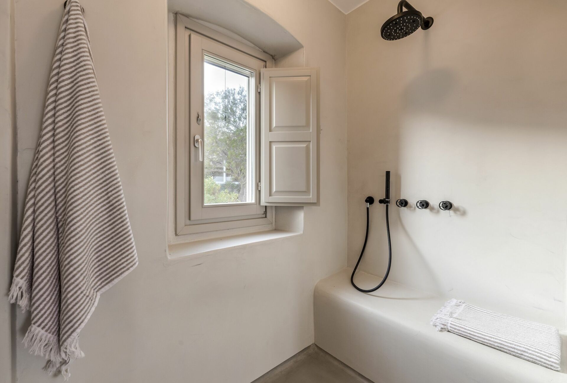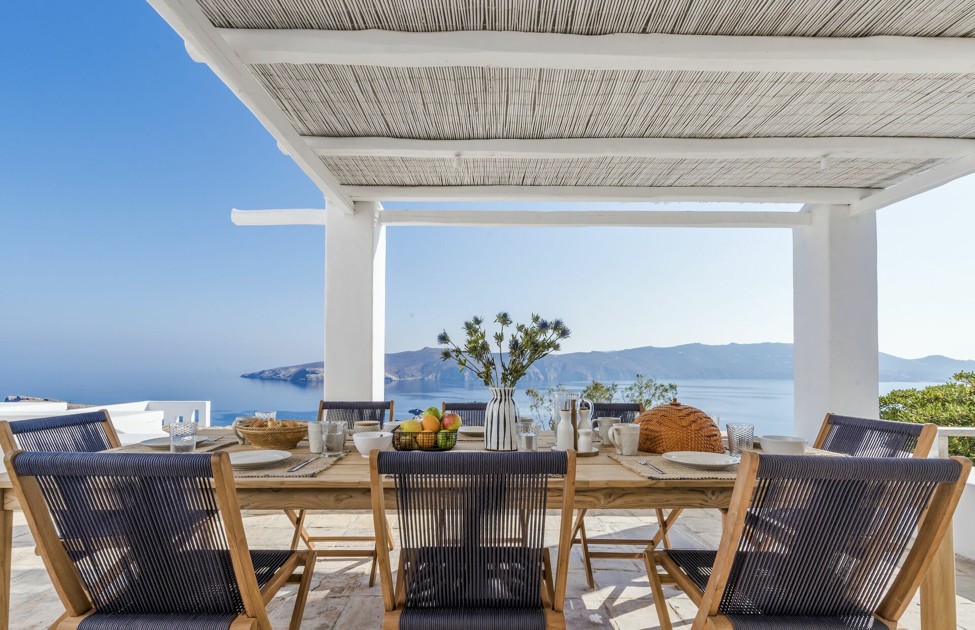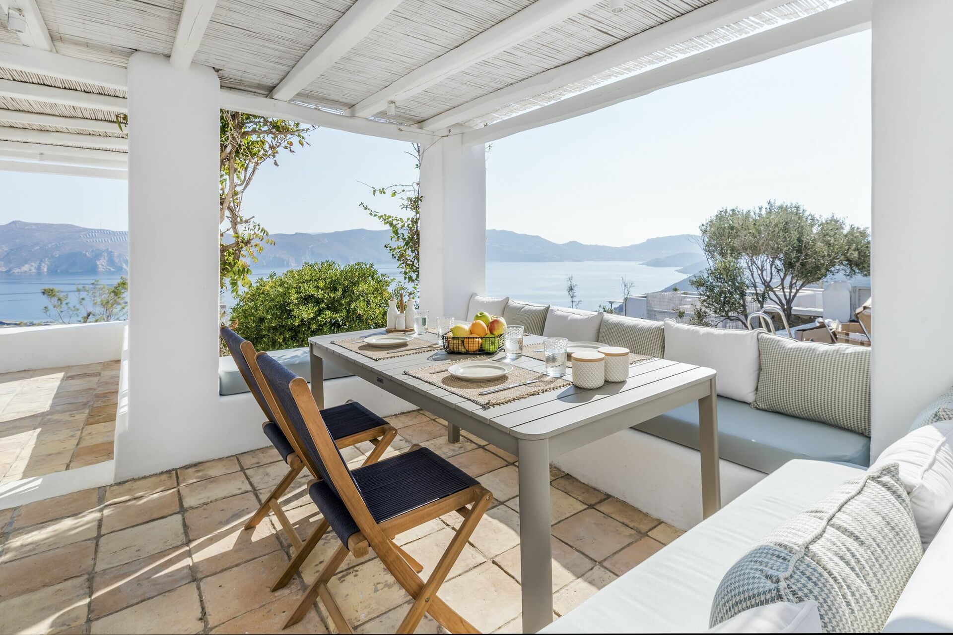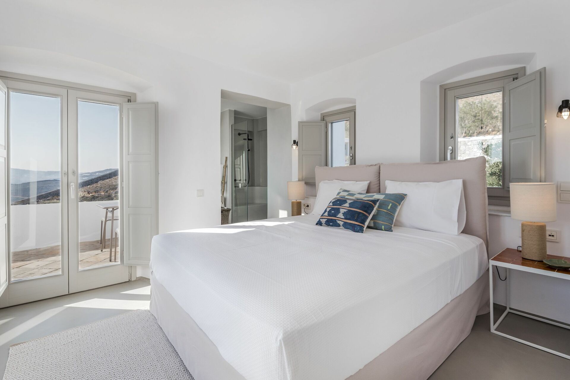 Villaen har en eksklusiv udsigt over øen og Mar Egeo fra de store vinduer og har en placering, der gør det let at udforske hele øen.