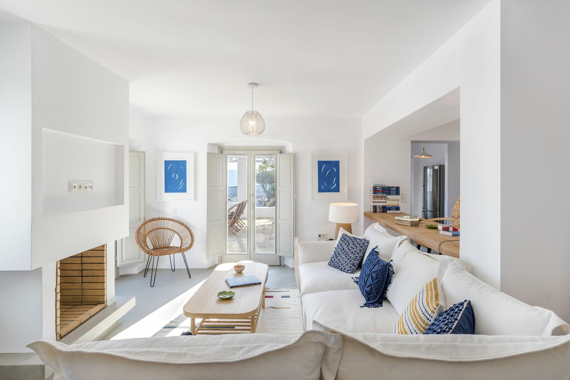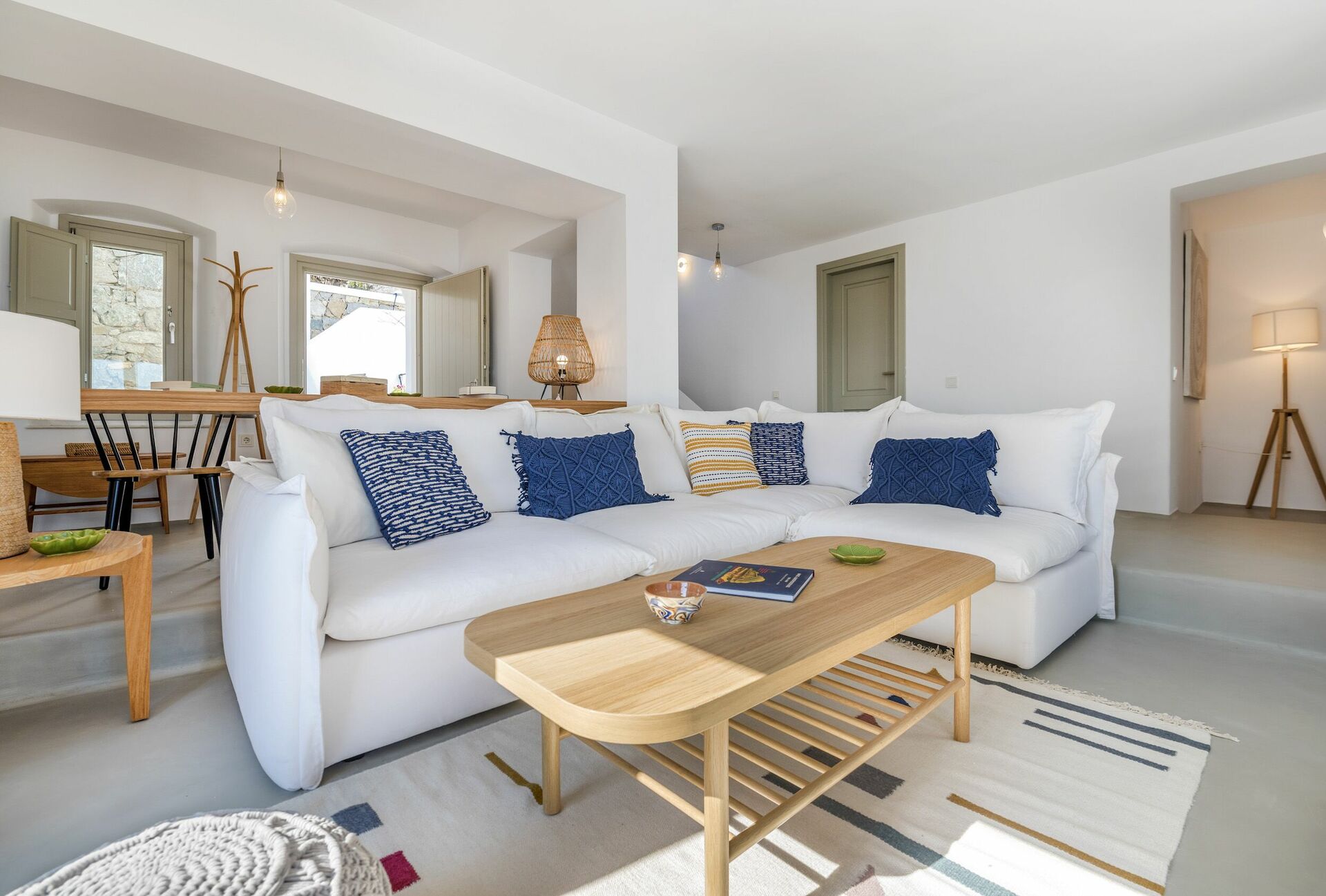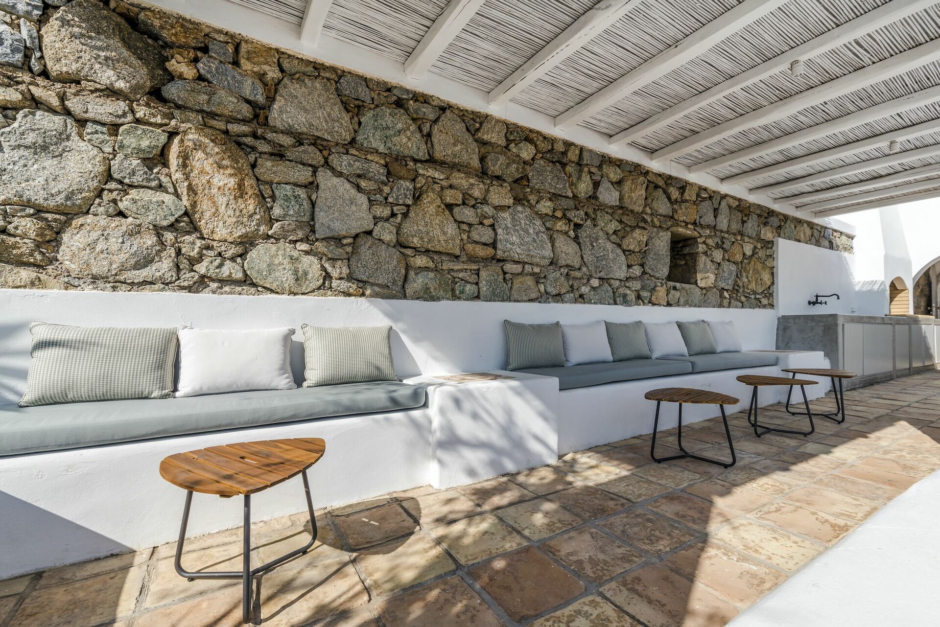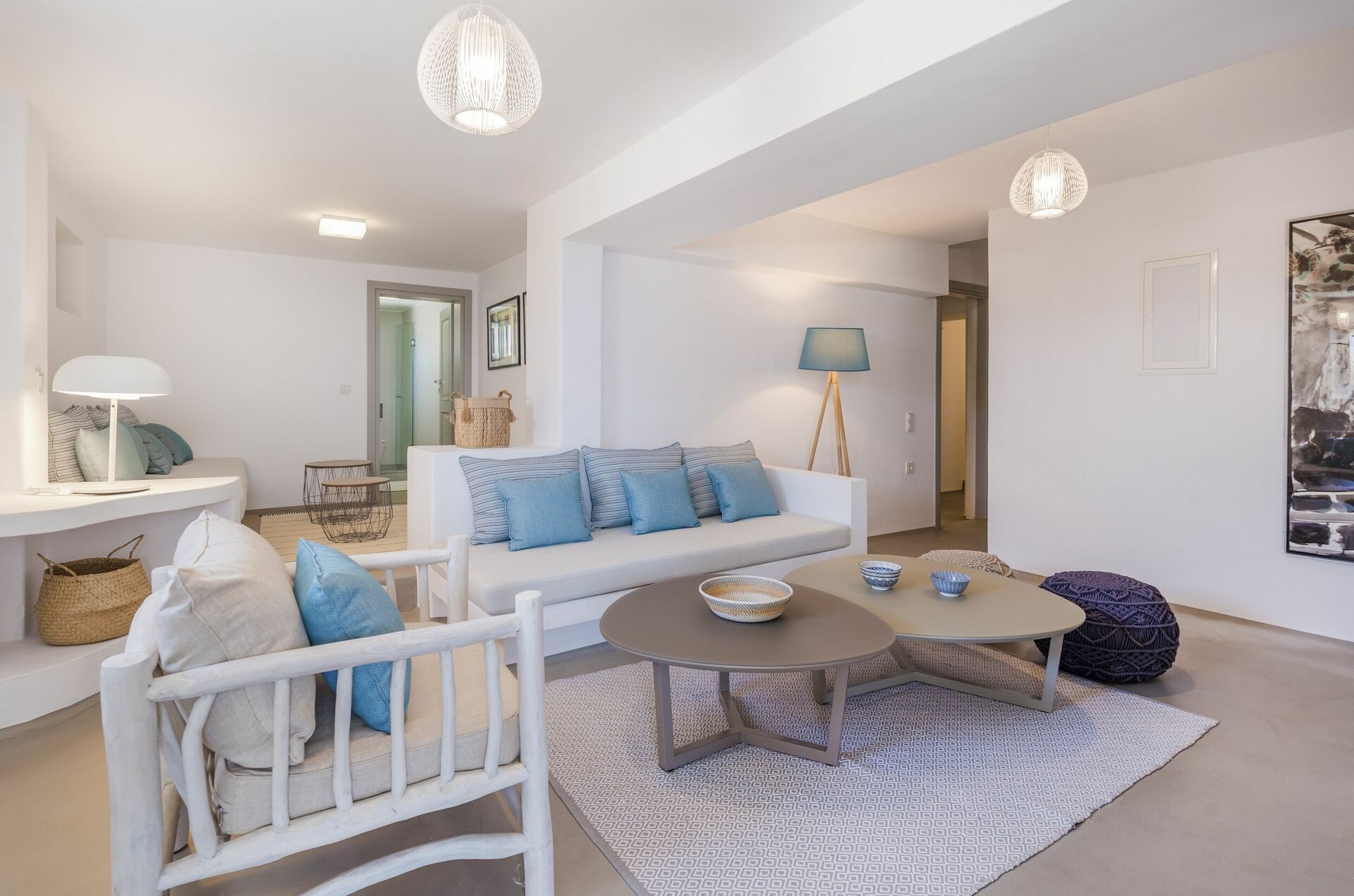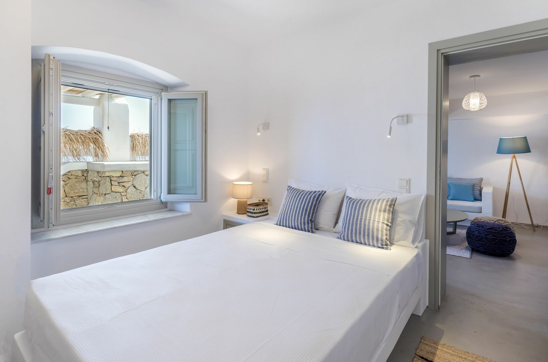 Afstande: De idylliske, rolige strande Agios Sostis og Panormos er kun få skridt væk, og byen Mykonos og den maleriske landsby Ano Mera ligger begge kun 12 minutter i bil.