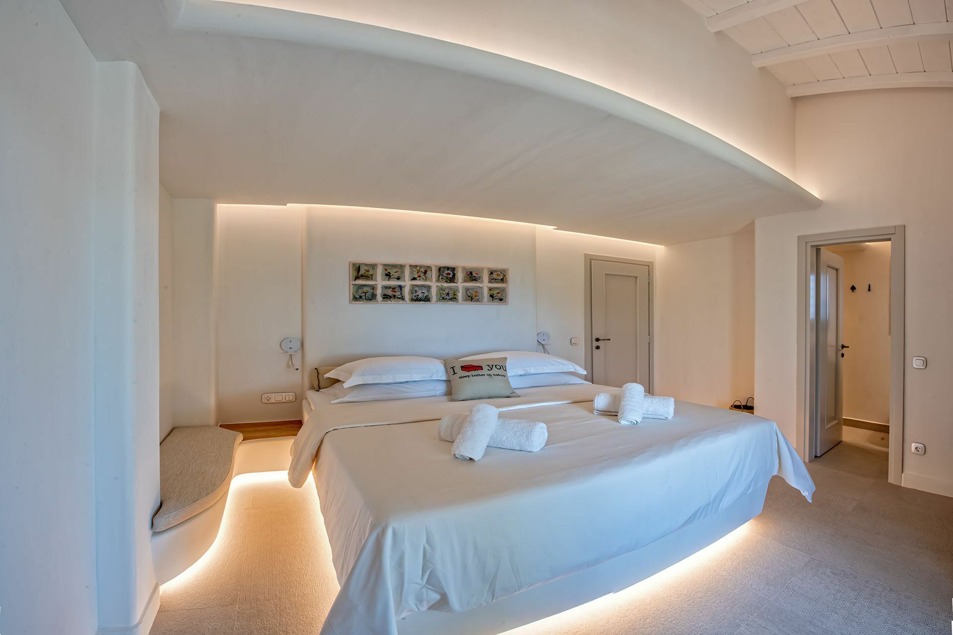 Afstande: by Skopelos (havn, butikker af alle slags) 4 km væk, Limnonari strand 6 km, Panormos strand 8,5 km, Stafilos strand 9 km, Milia strand 11 km, Agios Ioannis (kirken i "Mamma Mia!" Beliggende på en klippe over havet) 20 km væk.