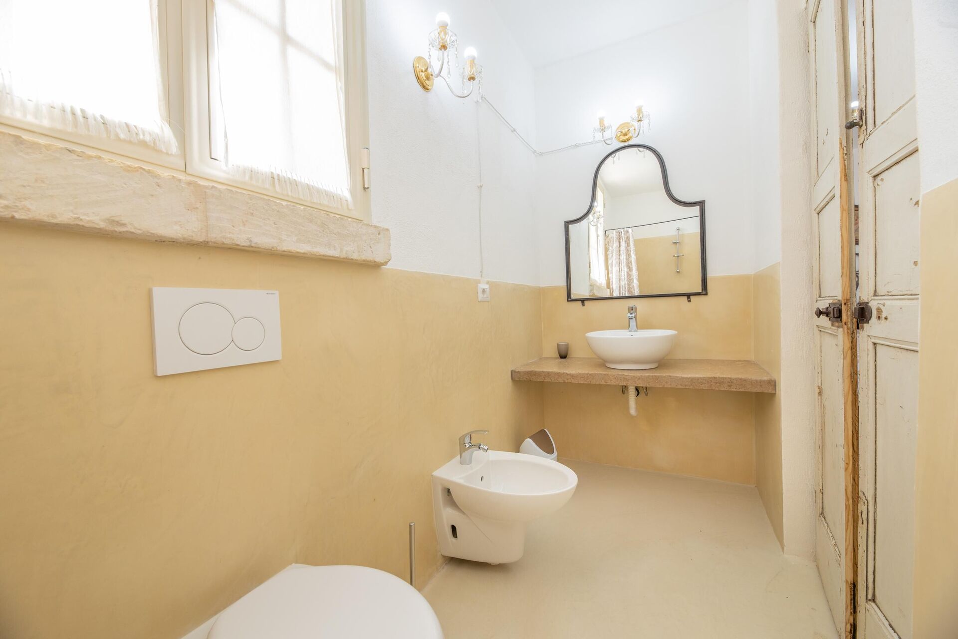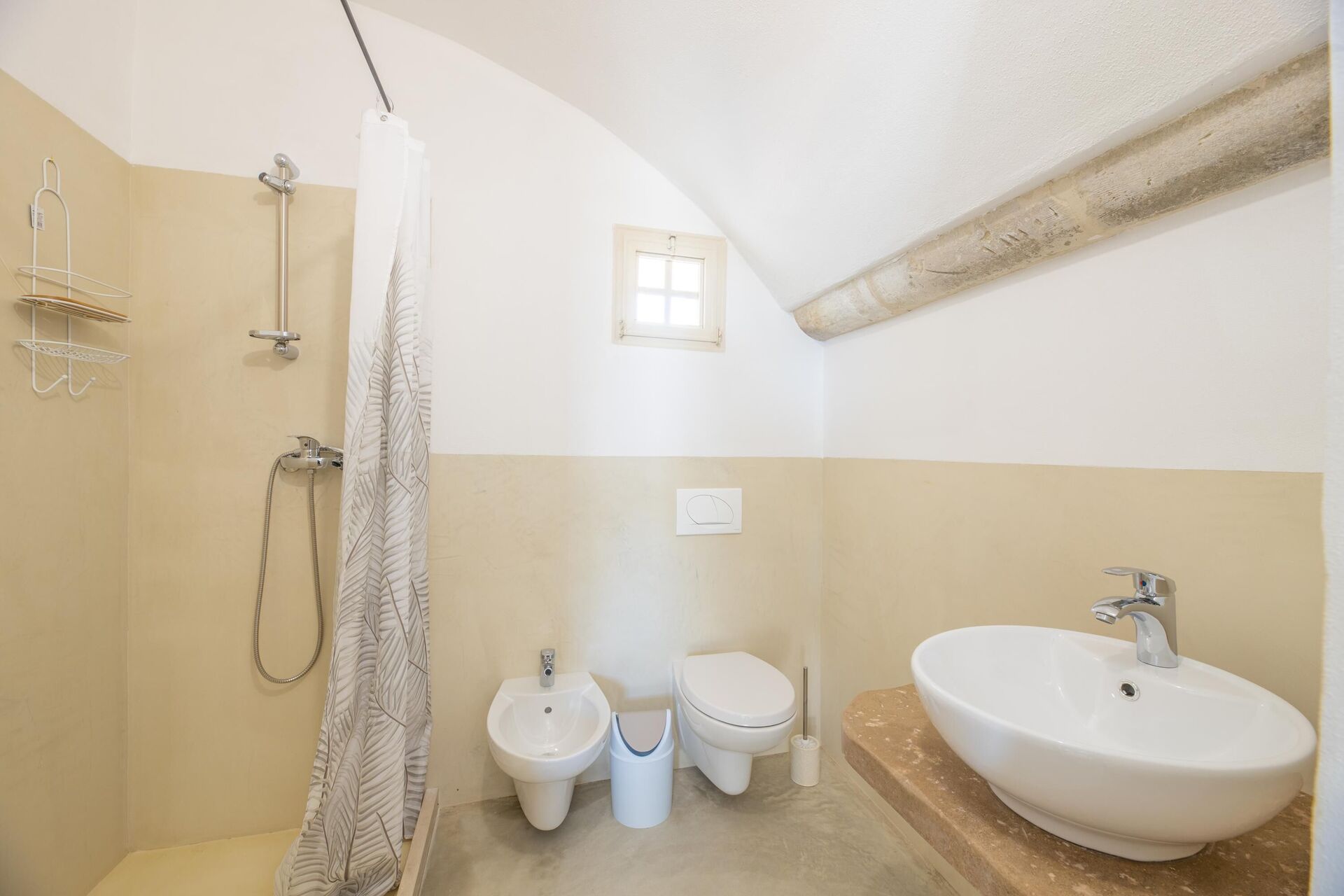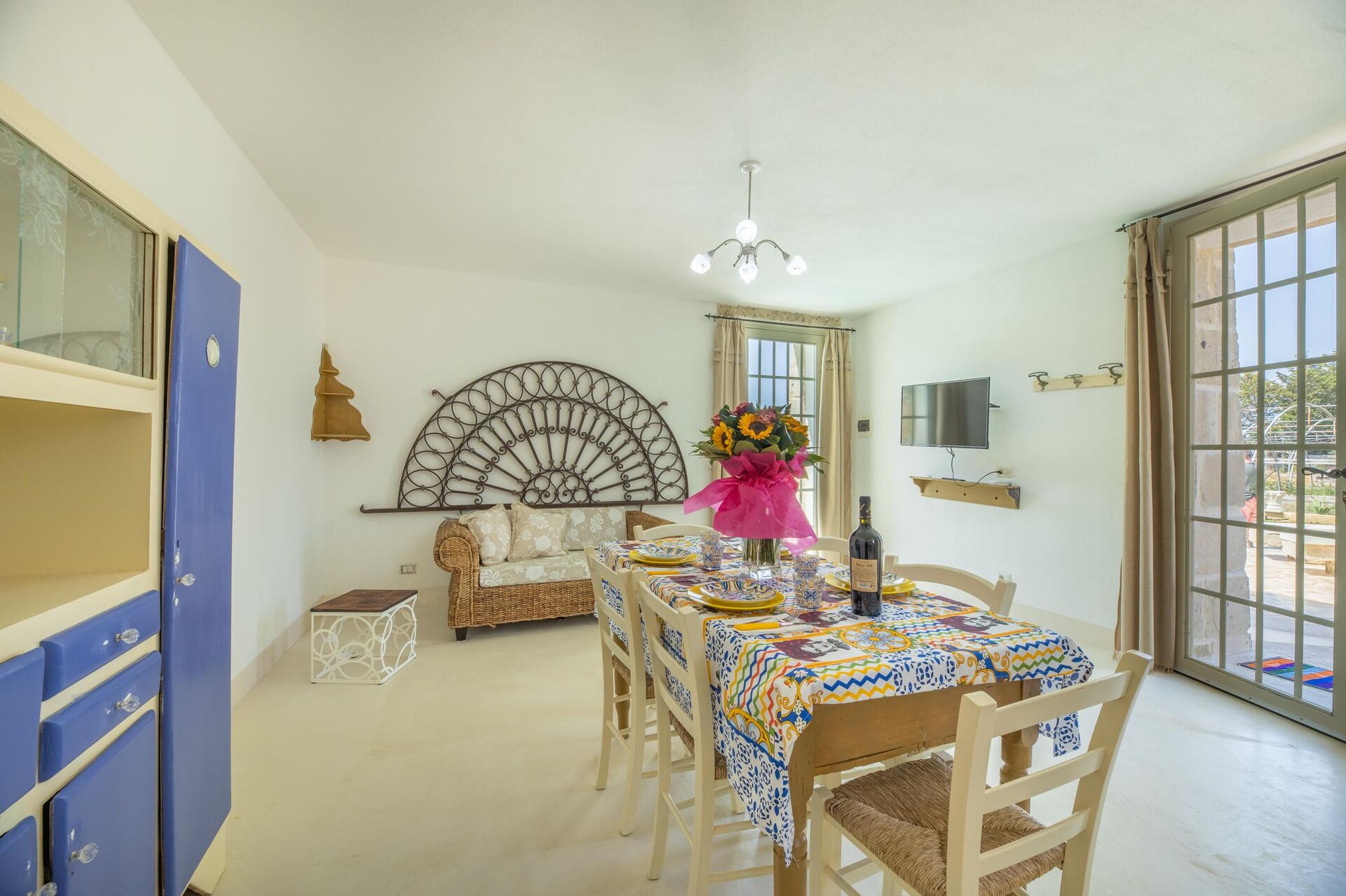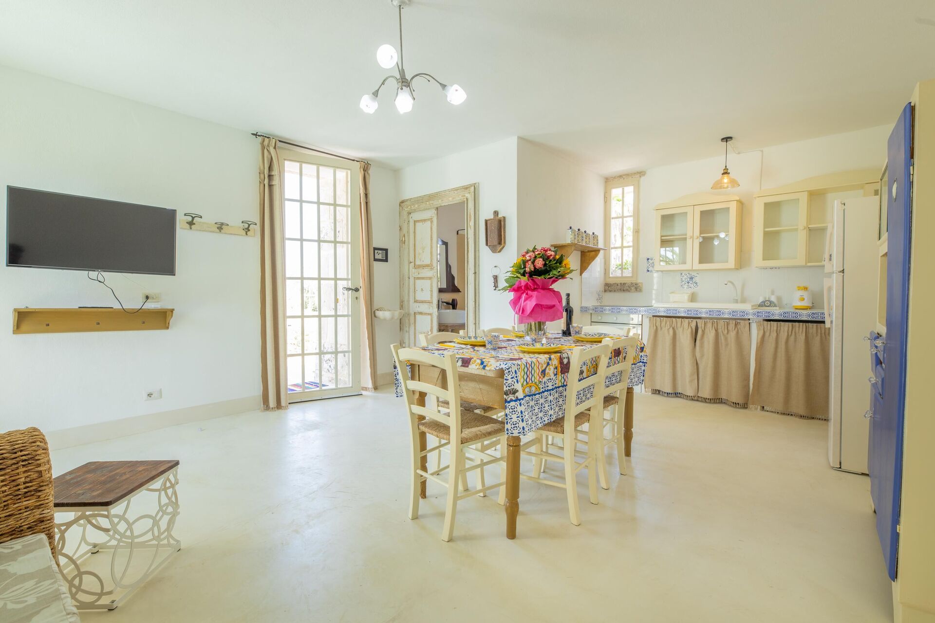 Huset er enkelt indrettet i stil med husets traditionelle struktur. Haven er meget stor, omkring 5000 m2 med en elegant swimmingpool, der har karakteristiske sten liggestole. Lige ved poolen er der et område med markiser, der giver skygge til stenbordet og -stolene. Ejendommens stil er gennemført med flere smukke arealer i haven med stenmøbler.