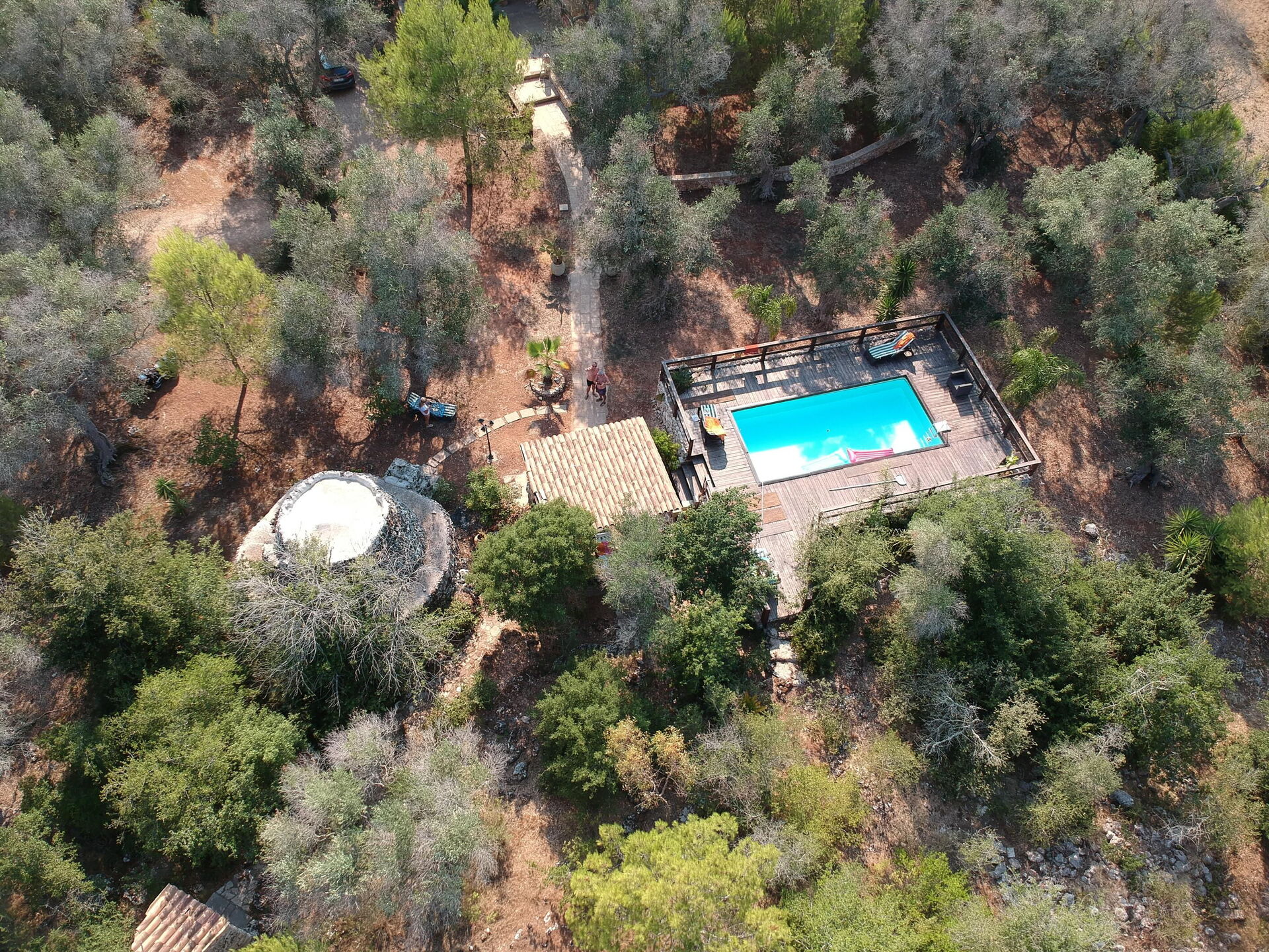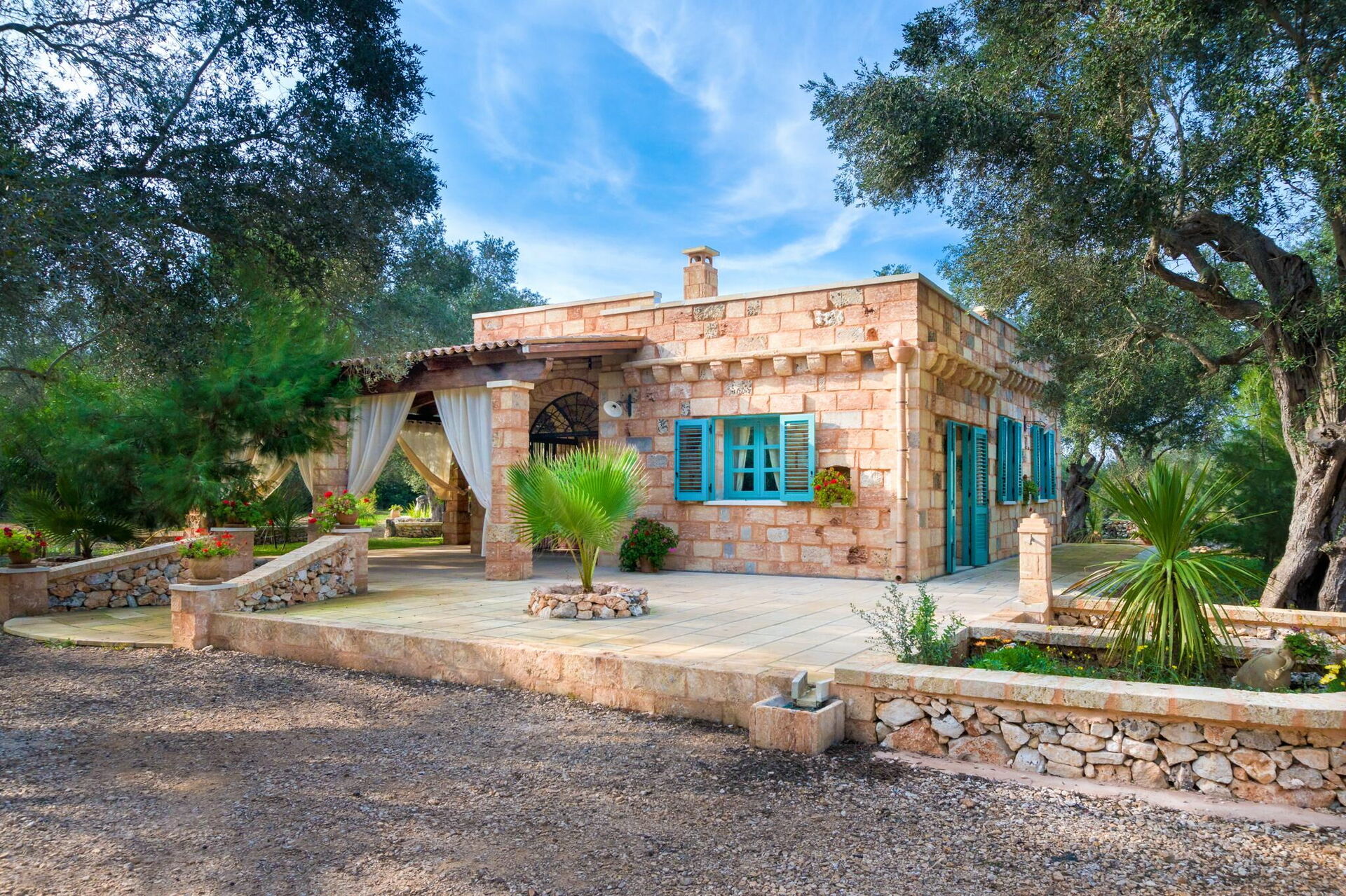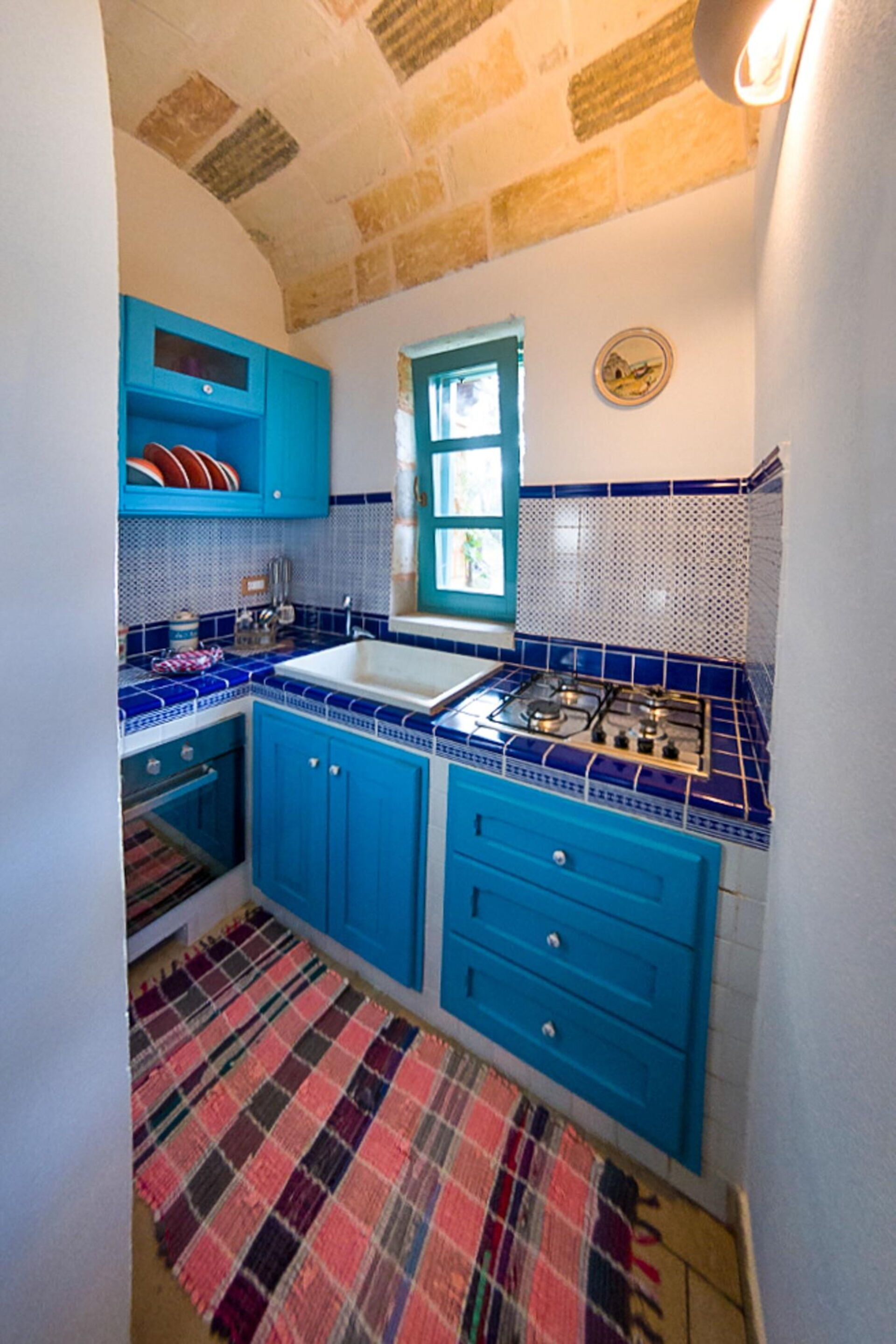 Huset er smagfuldt indrettet med hvælvede lofter og karakteristiske tufa stenvægge, og takket være sine 3 soveværelser og en enkelt sovesofa, kan det rumme op til 7 personer. Haveområdet er stort med træer, buske og planter typiske for Middelhavsområdet samt en privat swimmingpool til gæsternes rådighed, en elegant pavillon og flere afslapningsområder.
