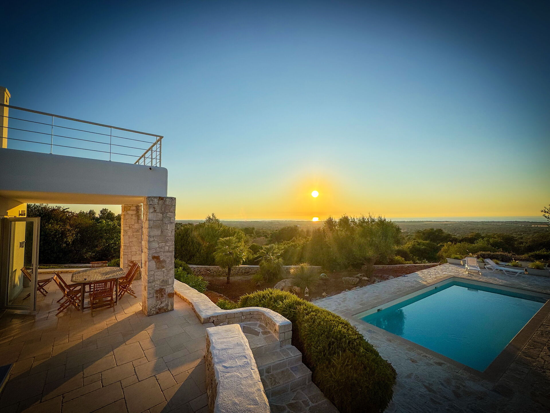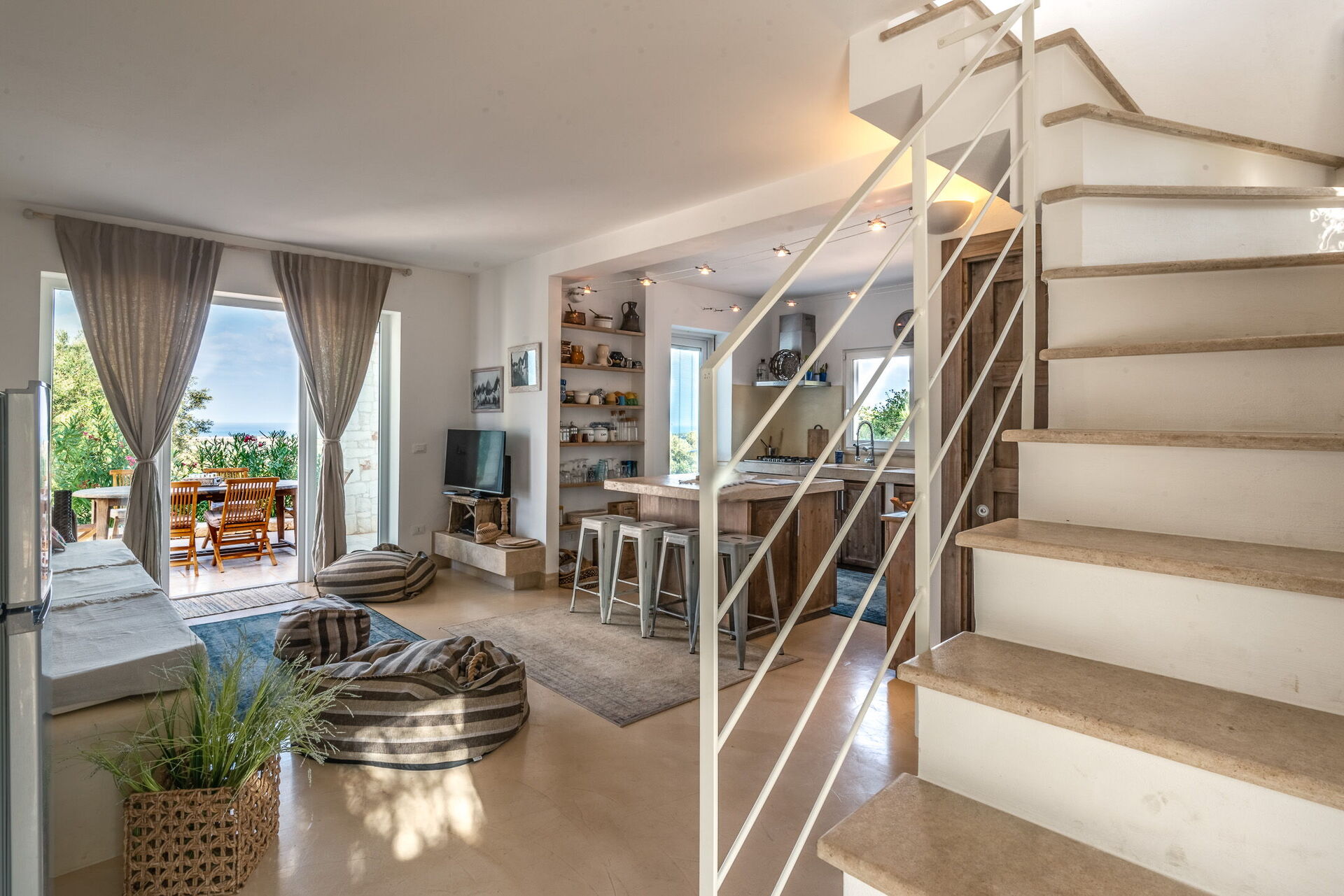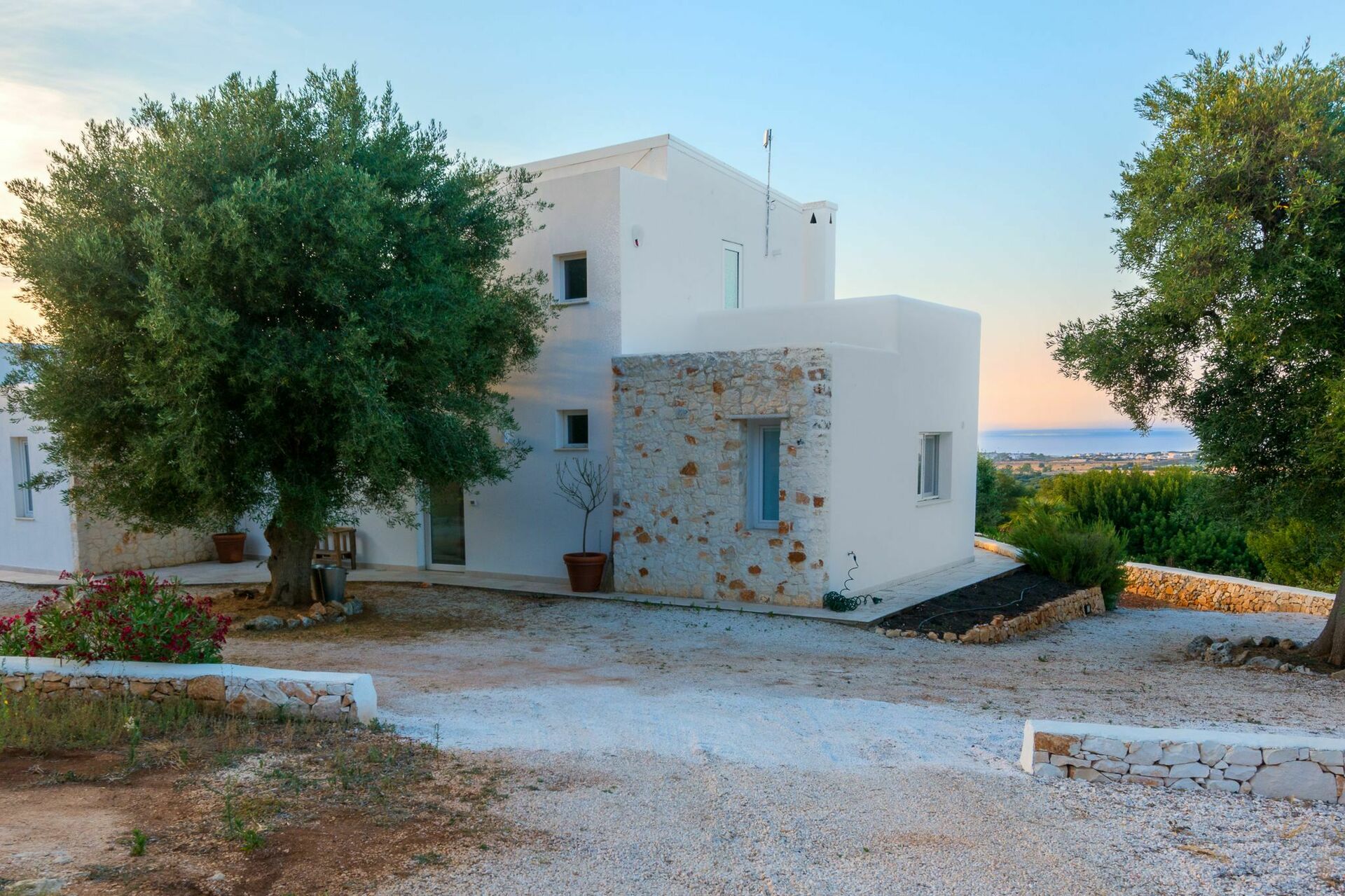 Udover alle terrasser er der i første sal to terrasser med adgang fra det romantiske dobbeltværelse, hvor solnedgangen ud i havet bliver en del af din hverdag.