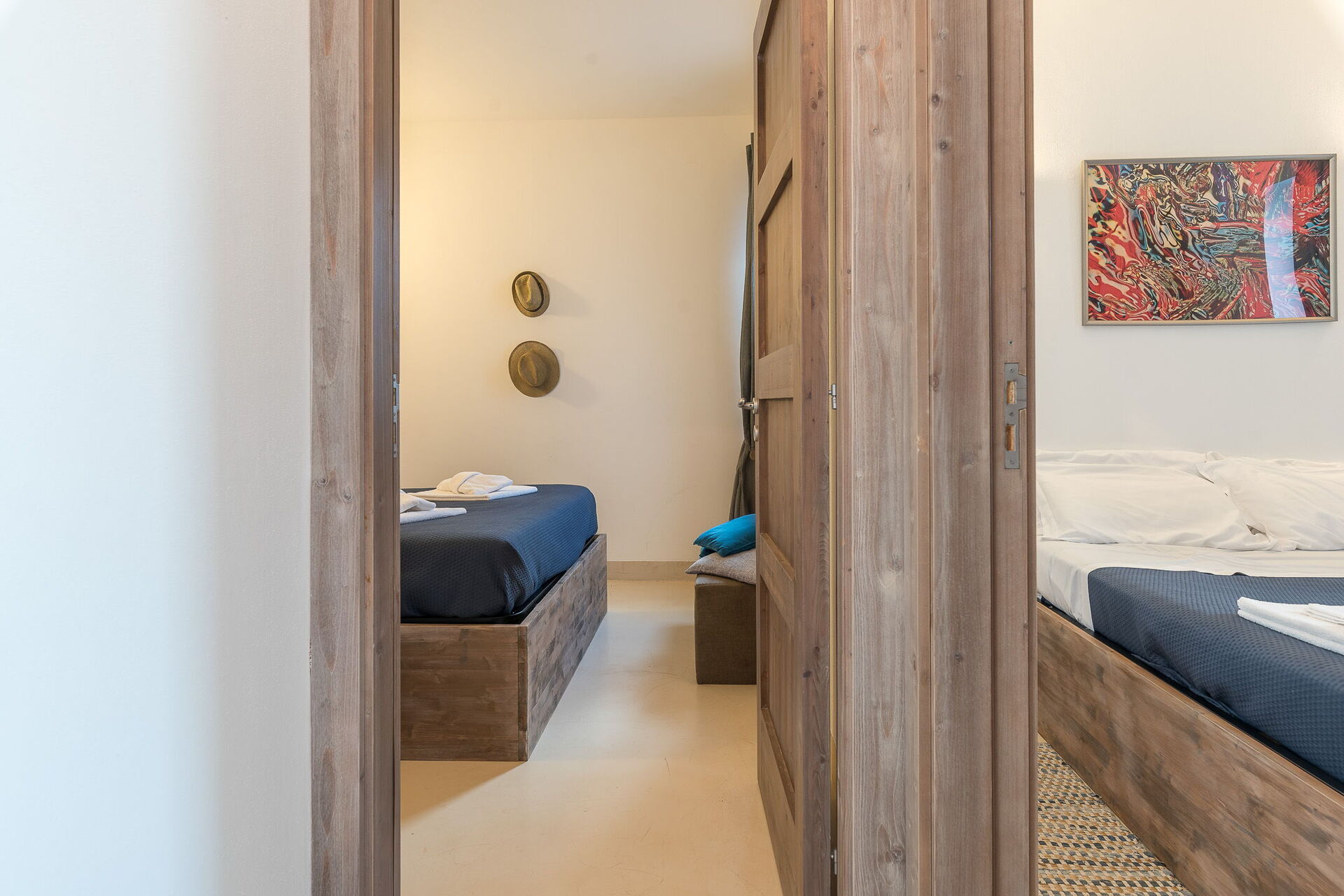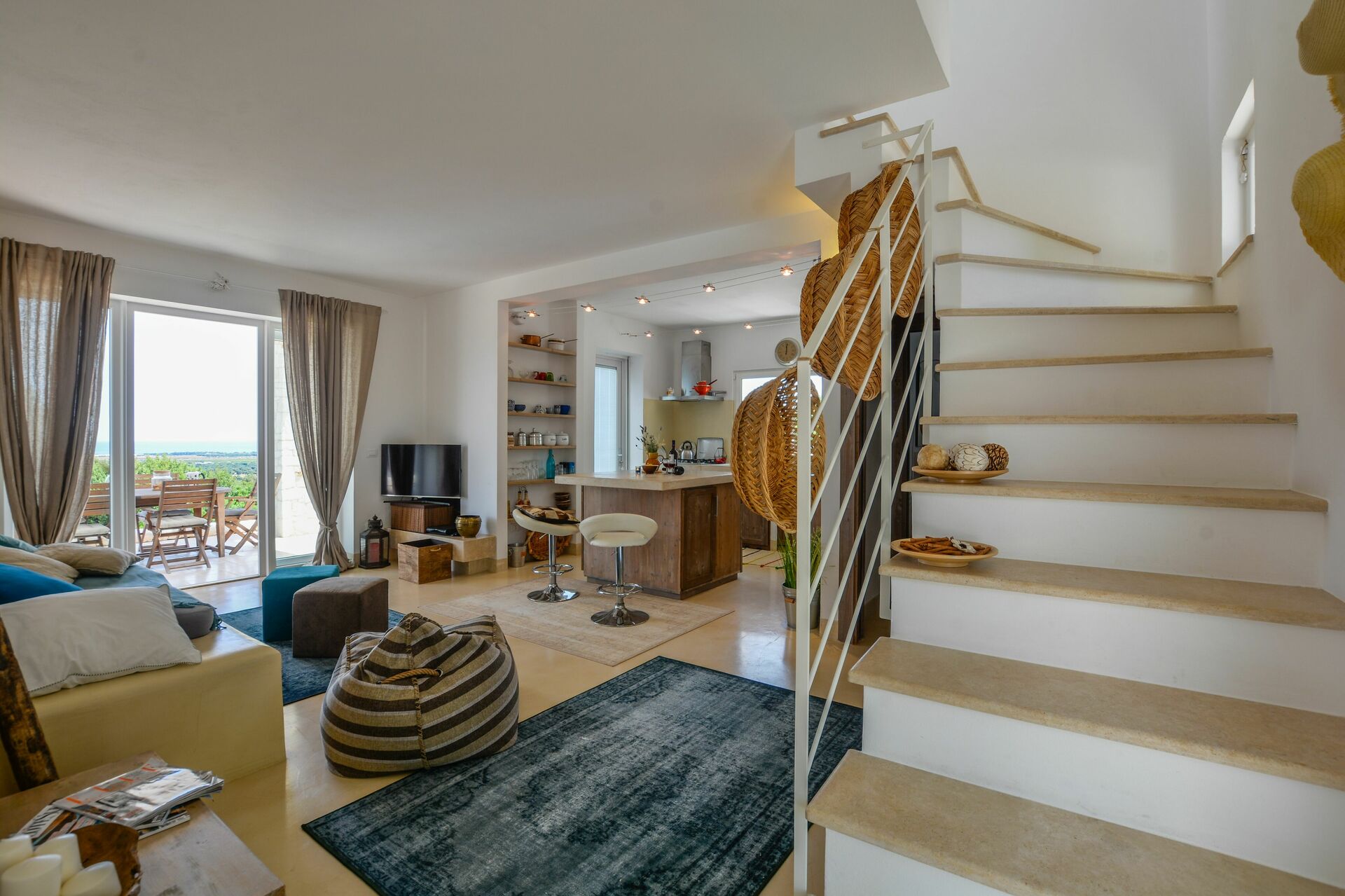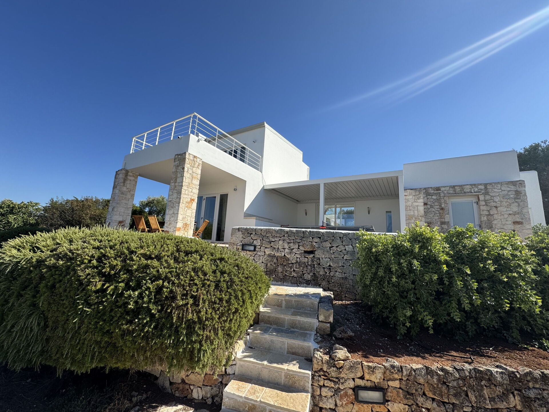 Udover alle terrasser er der i første sal to terrasser med adgang fra det romantiske dobbeltværelse, hvor solnedgangen ud i havet bliver en del af din hverdag.