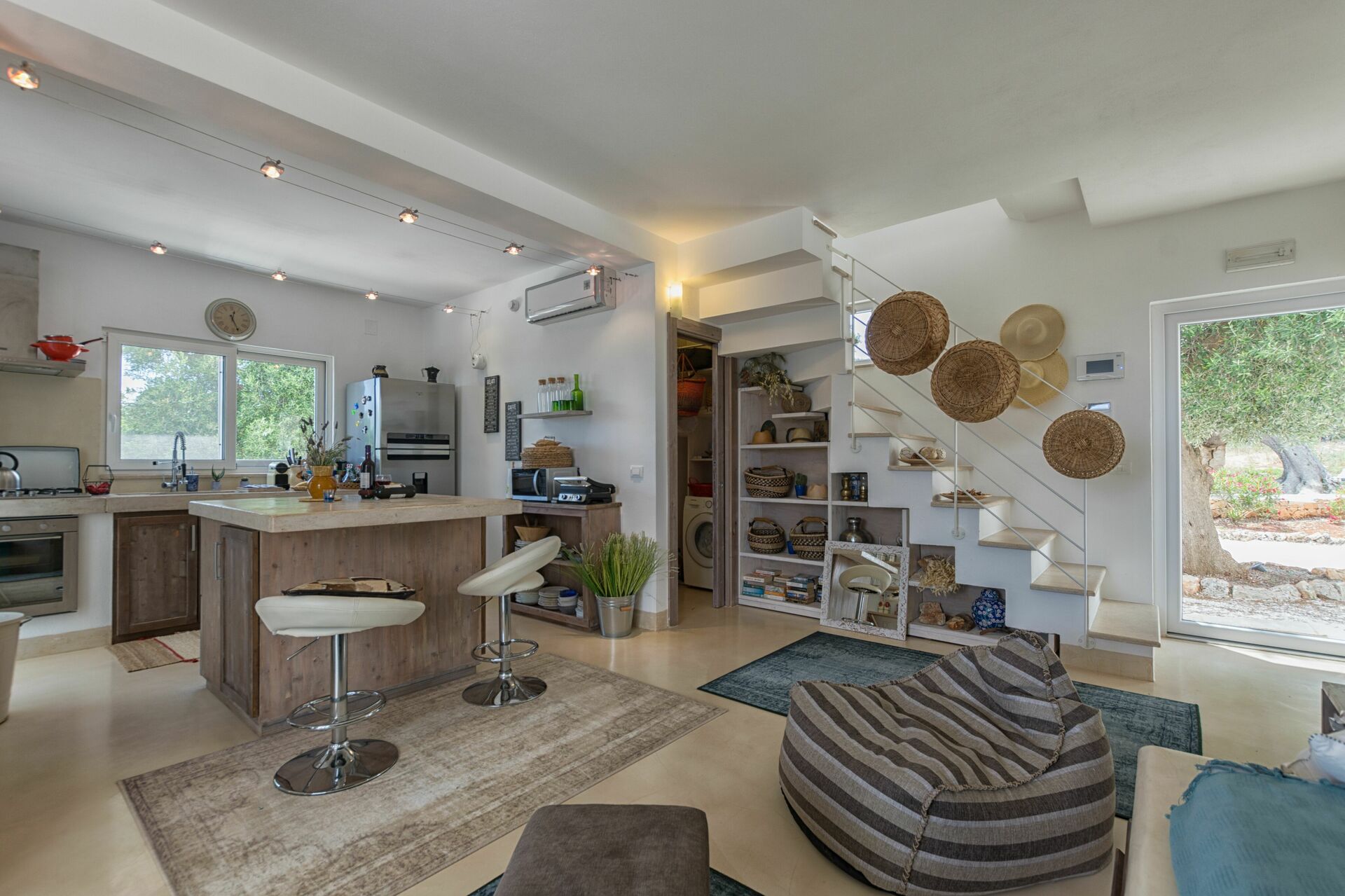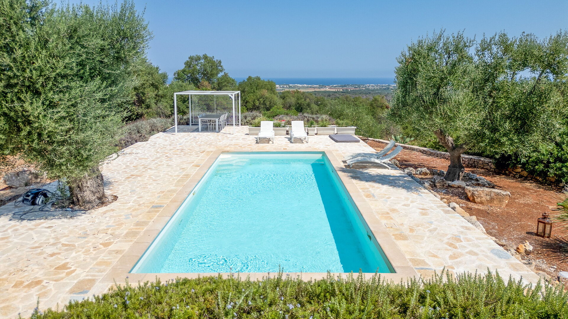 Den store, indhegnede have har flere hundrede år gamle oliventræer og middelhavsbuskvegetation. Midt i haven ligger en skøn pool eksklusivt for gæster. Du kan nyde frisk luft hele dagen, takket være verandaen ved huset, pergolaen ved poolen og ved udendørsarealerne.