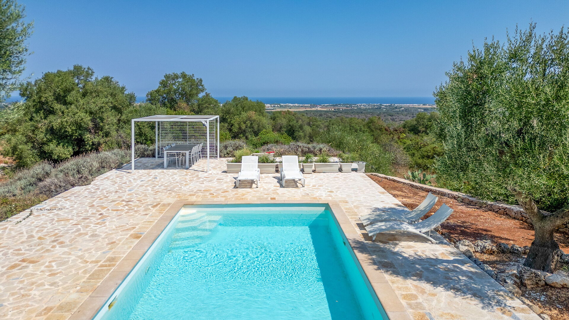 Villa Butterfly er et skønt sommerhus med pool og en fantastisk havudsigt i Apulien nær Carovigno.