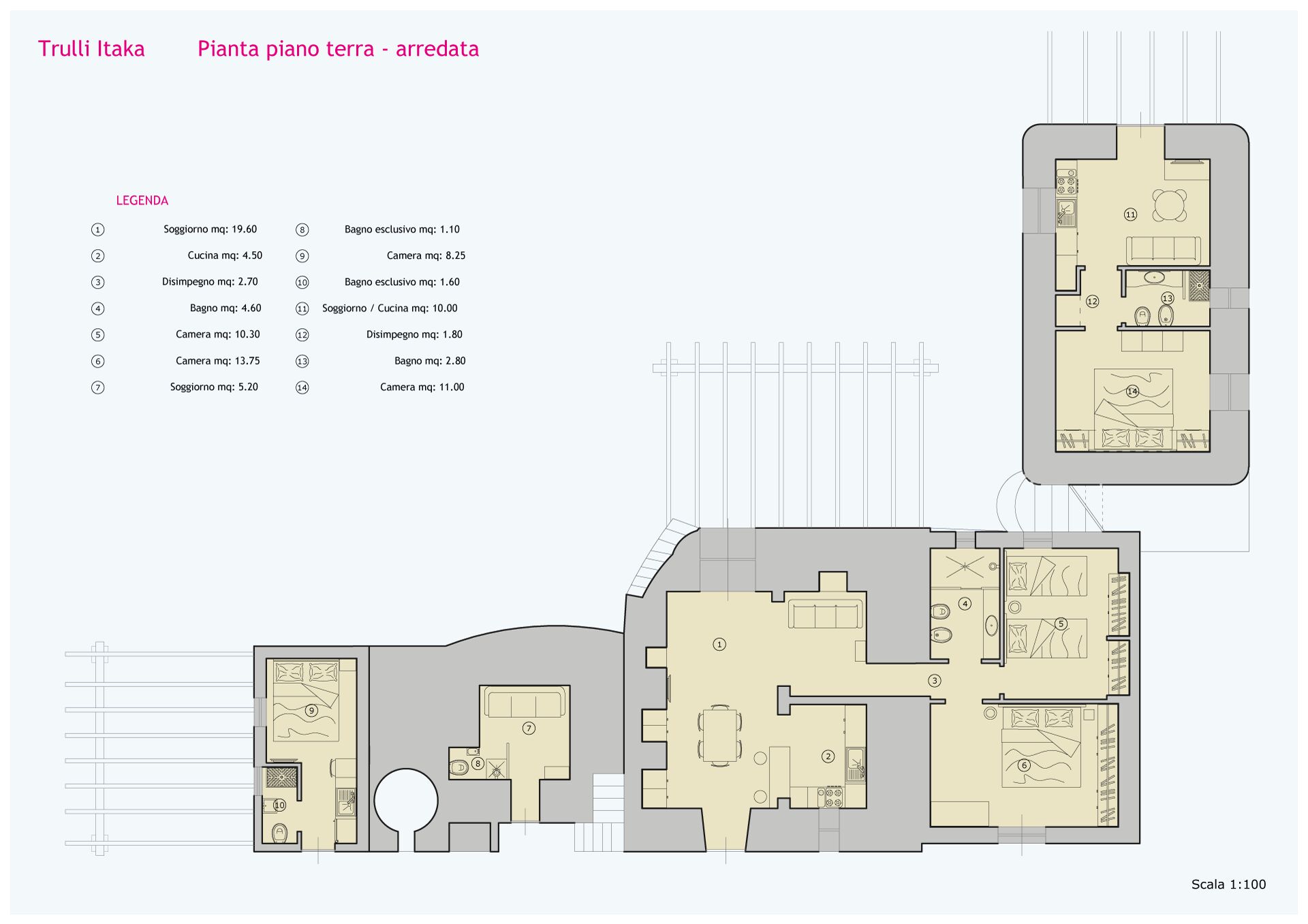 Trulli Itaka er en ejendom bestående af 3 separate huse med i alt 4 soveværelser.