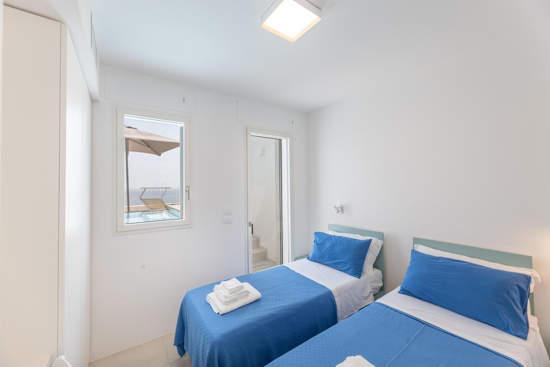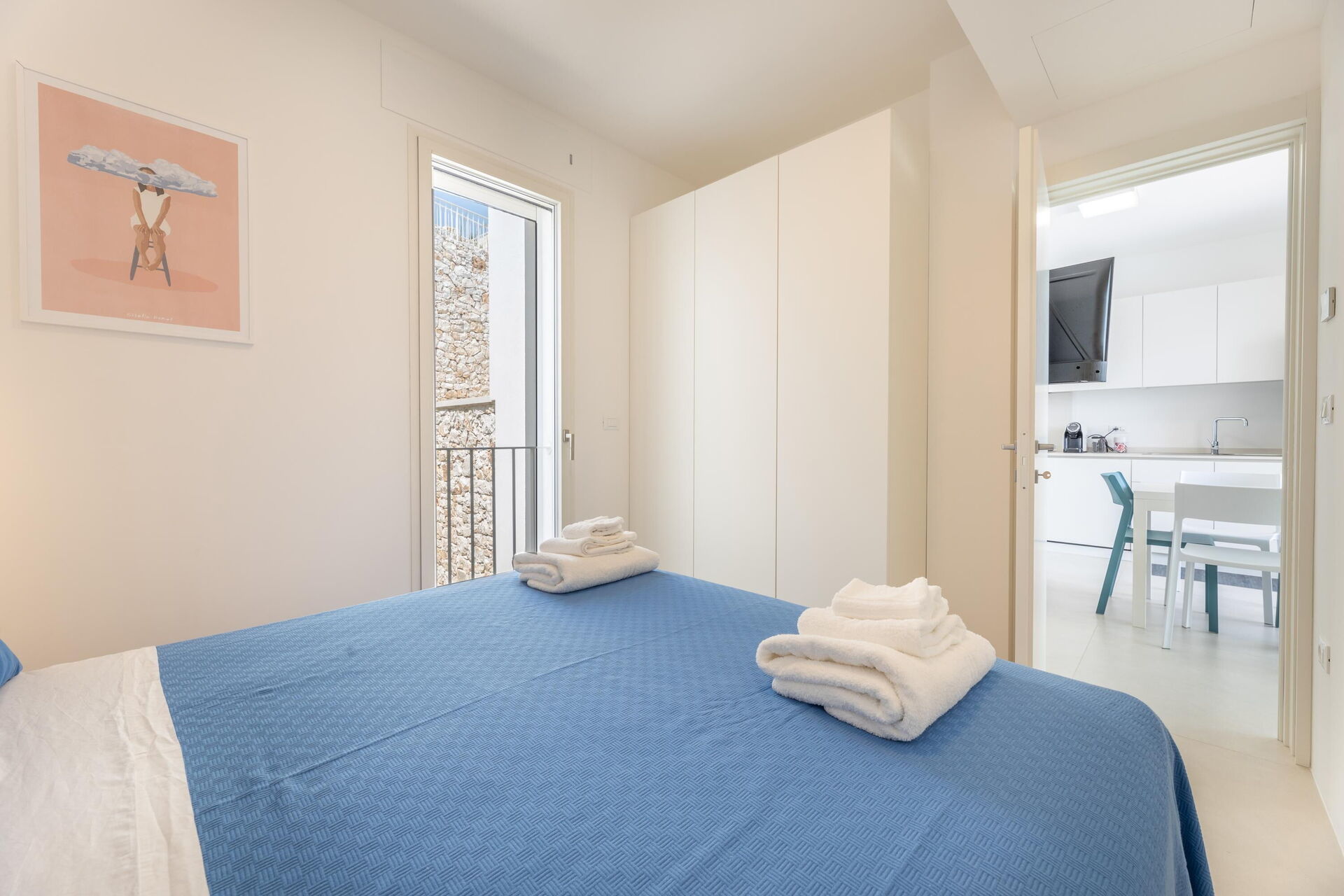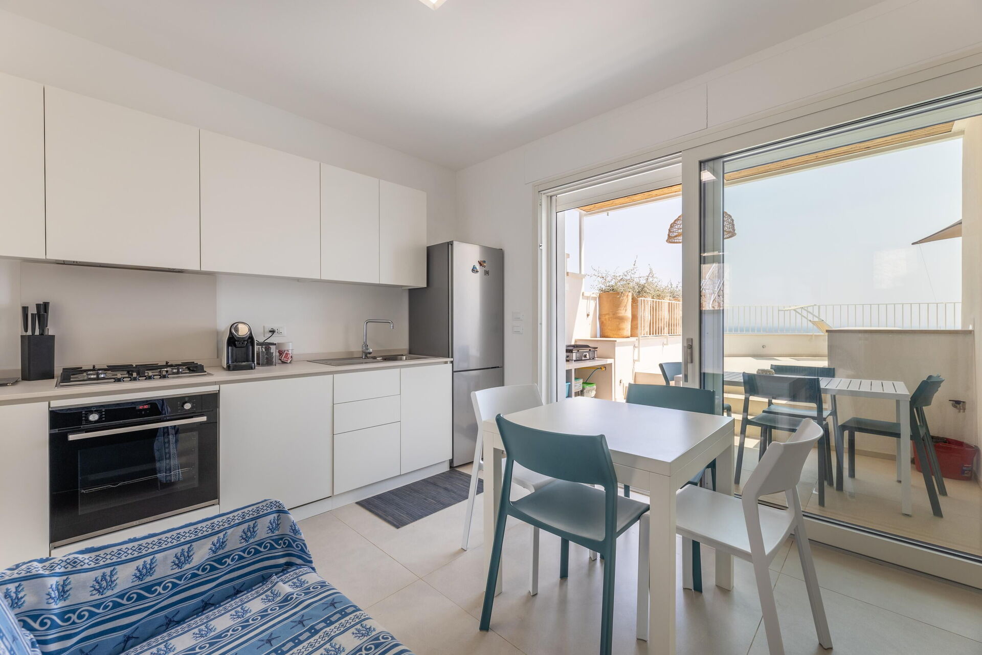 Lejligheden ligger på første sal og kan rumme 4/6 personer takket være 2 soveværelser og en dobbelt sovesofa. På terrassen er der opvarmet swimmingpool med udsigt over det blå apuliske hav.