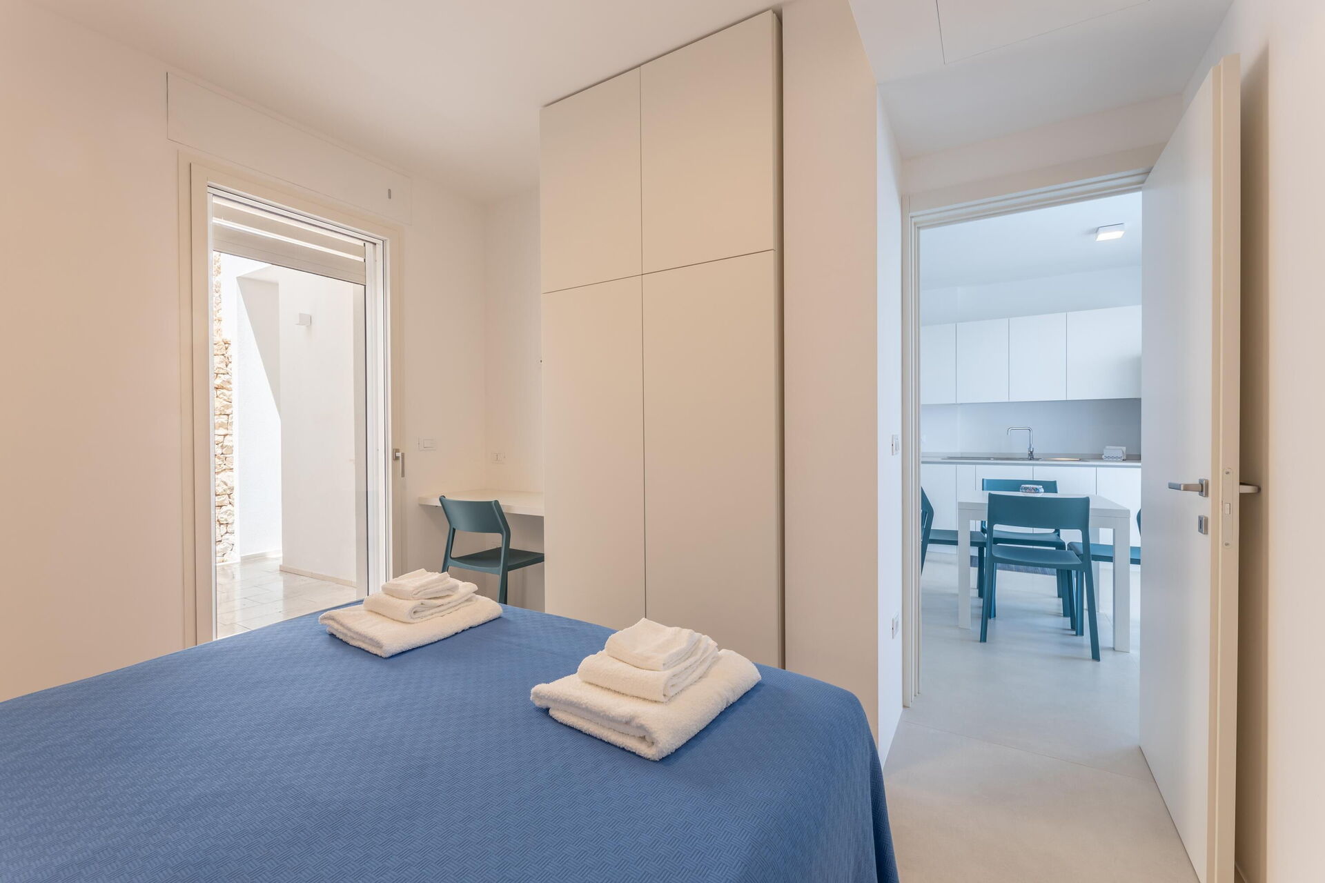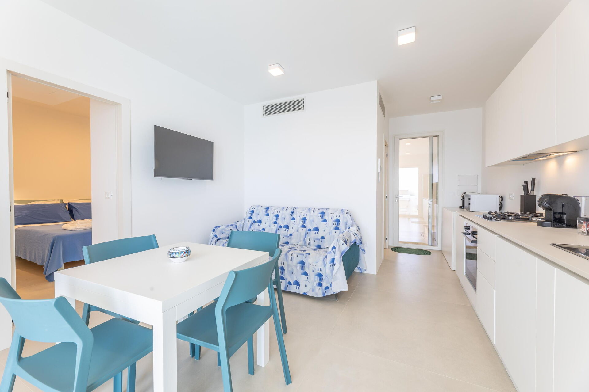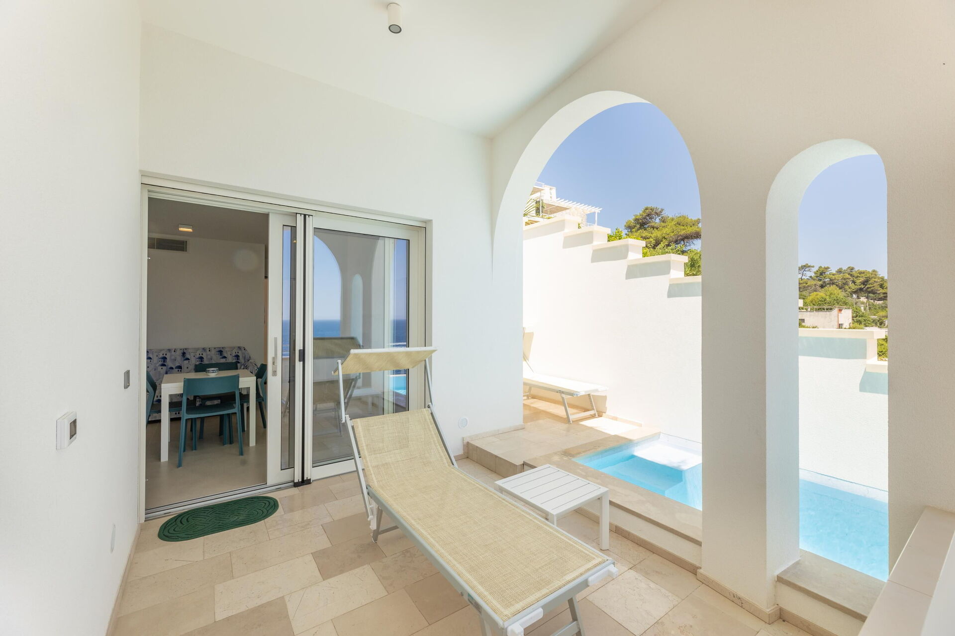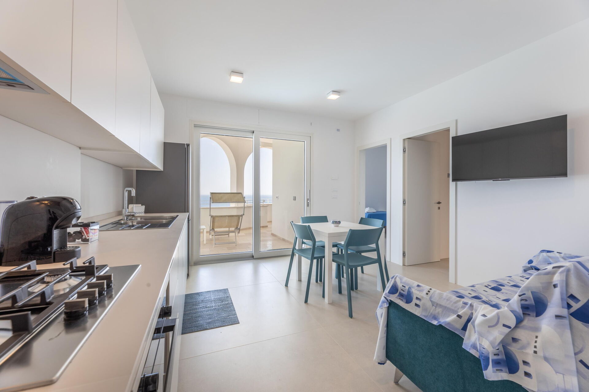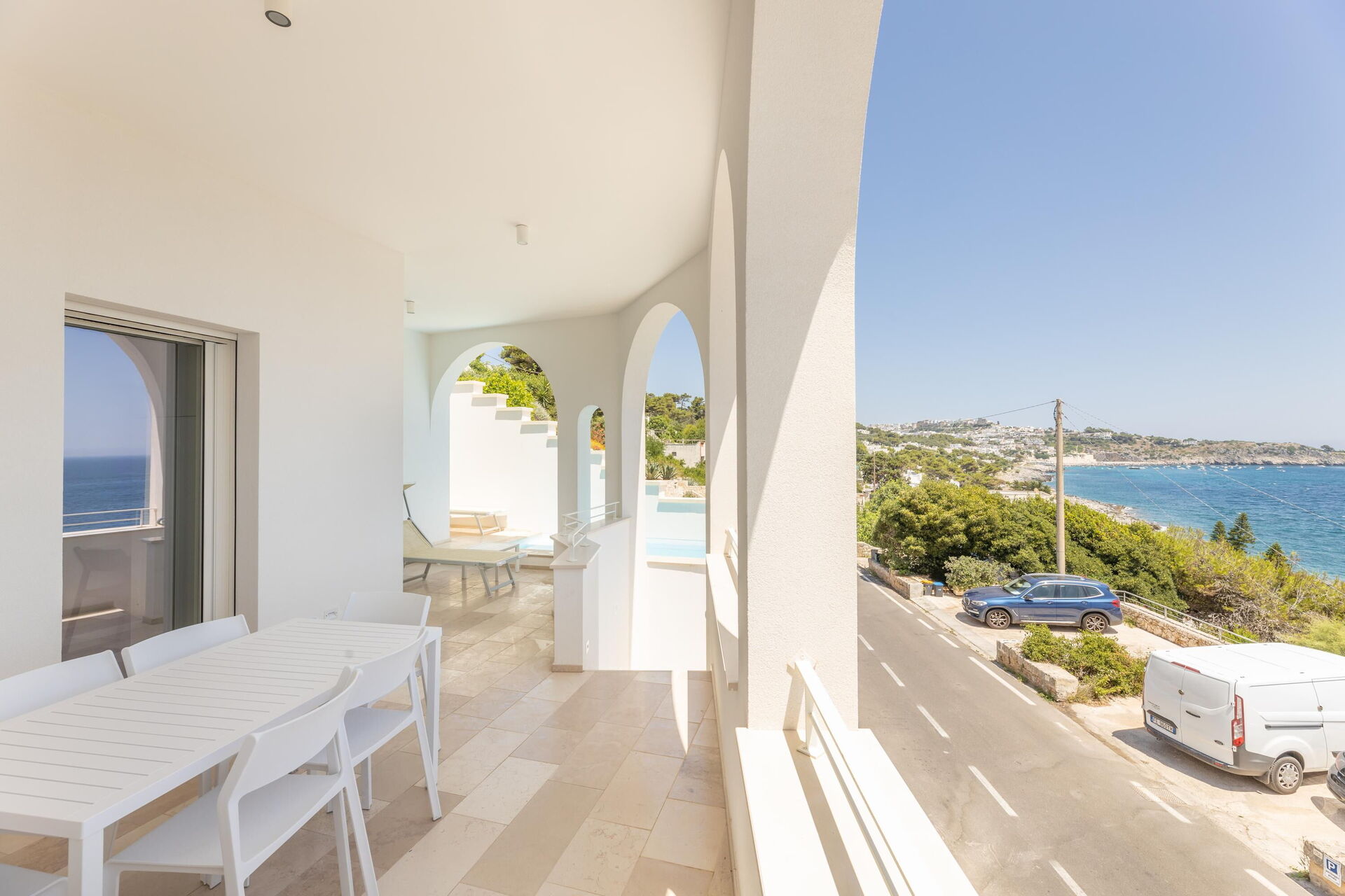 Marinaia Archi er nyrenoveret, og takket være 2 soveværelser og en dobbelt sovesofa er der plads til 4/6 personer. Lejligheden er lys og indbydende, indrettet i en enkel og funktionel stil og udstyret med alle moderne bekvemmeligheder. Den har en overdækket panoramaterrasse med store buede åbninger, udstyret med borde og stole til udendørs spisning, og en privat swimmingpool (som kan opvarmes om foråret og efteråret) med fantastisk udsigt over det blå hav i Apulien.