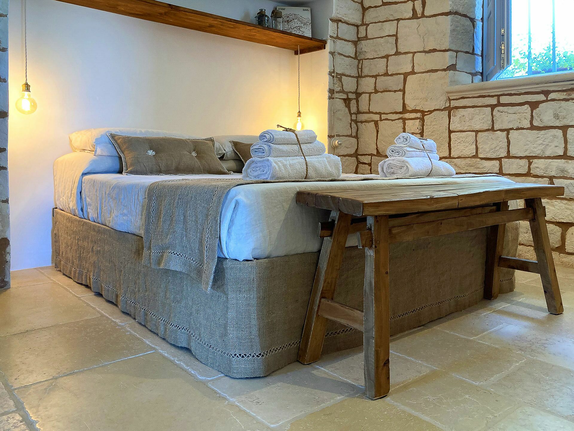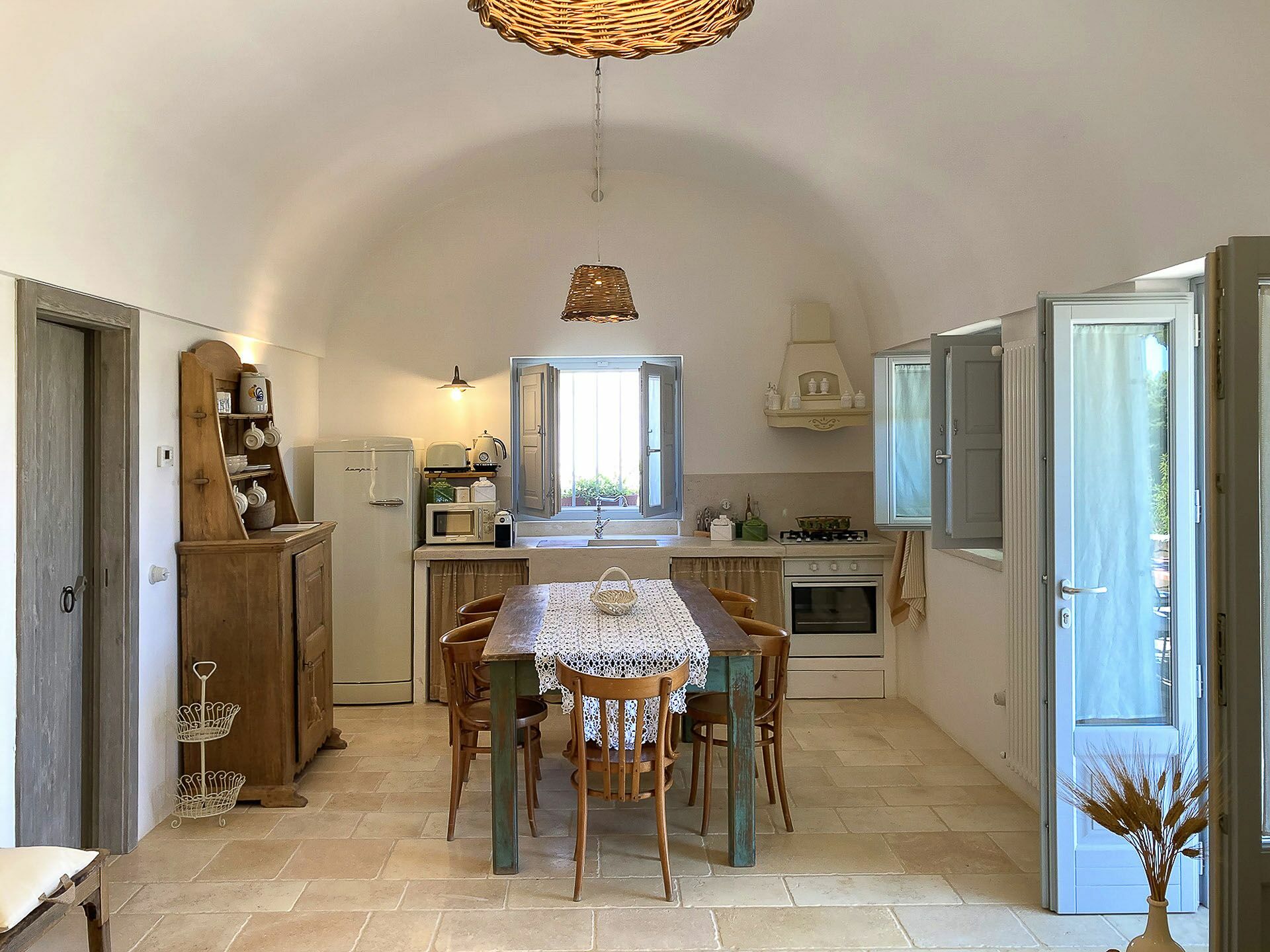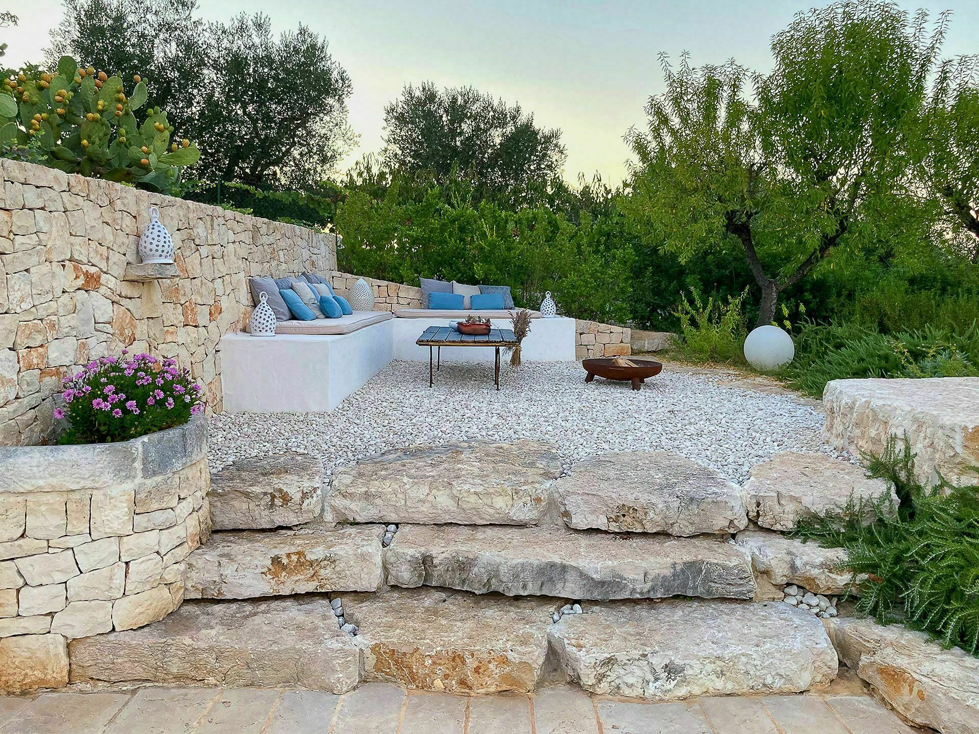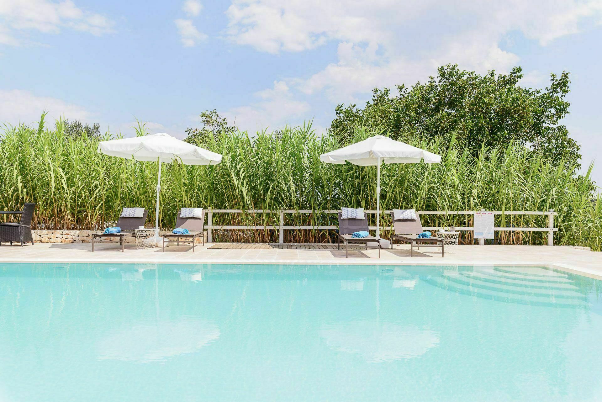 En stor velholdt have omgiver ejendommen. Bag feriehuset er der en spektakulær saltvandspool flankeret af en elegant grøn græsplæne. Poolen har romerske trapper for nem adgang og et område med afslappende massagestråler. Her er det perfekt at nyde solen og freden i det apuliske landskab fra liggestolene ved poolen.