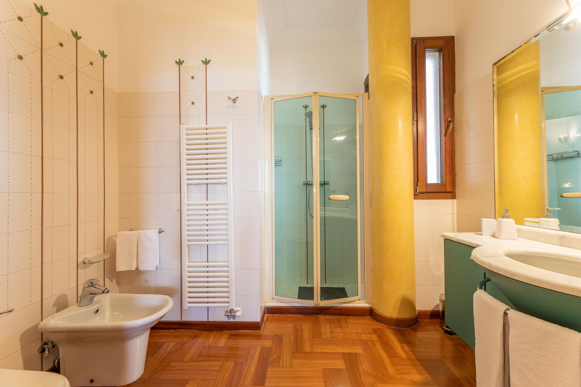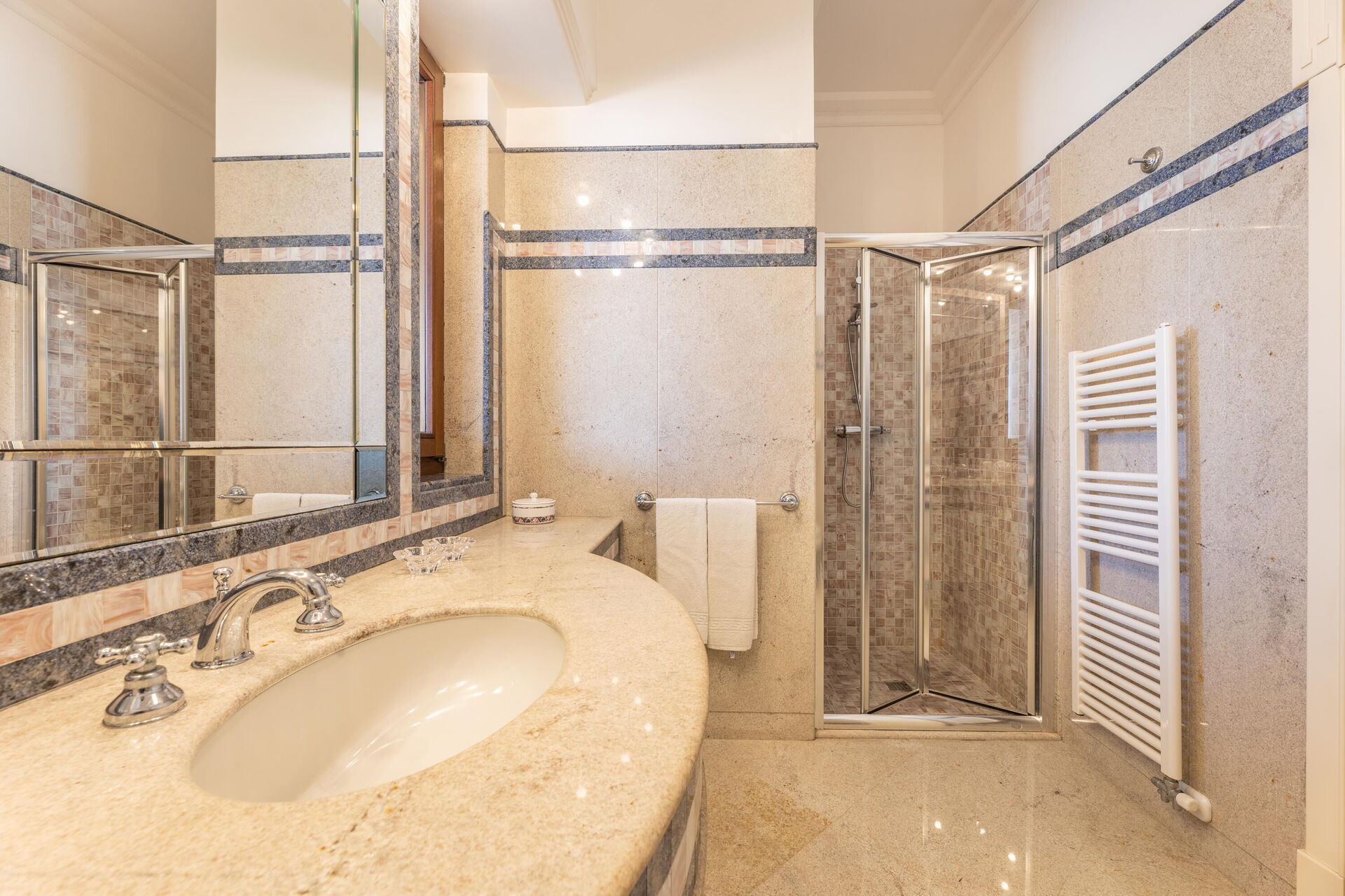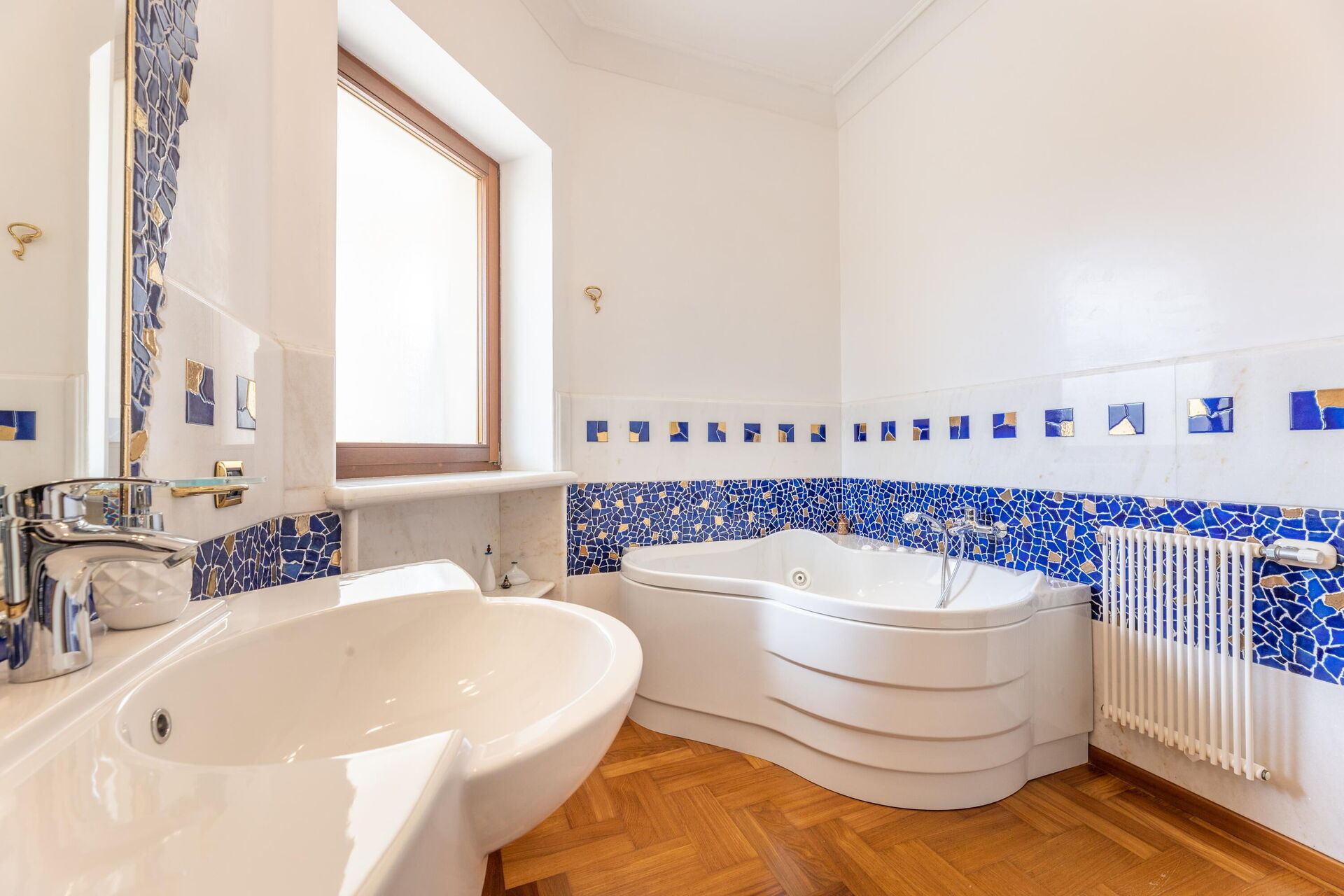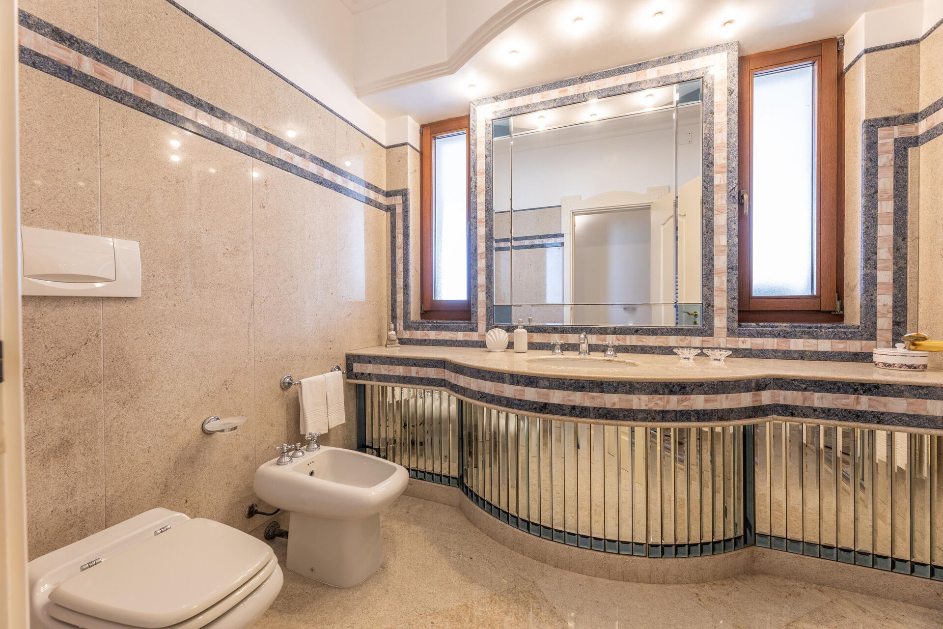 Hævet stueetage: indgang, stue (klaver), spisestue (satellit-tv) med adgang til loggia, køkken (kogeplade, ovn, fryser, køleskab, opvaskemaskine, mikrobølgeovn, kaffemaskine); dobbeltværelse med eget badeværelse med bruser, dobbeltværelse, badeværelse med spabad, soveværelse med dobbeltseng (kan omdannes til 2 enkeltsenge efter anmodning) og enkeltseng (ekstra, efter anmodning), badeværelse med bruser.