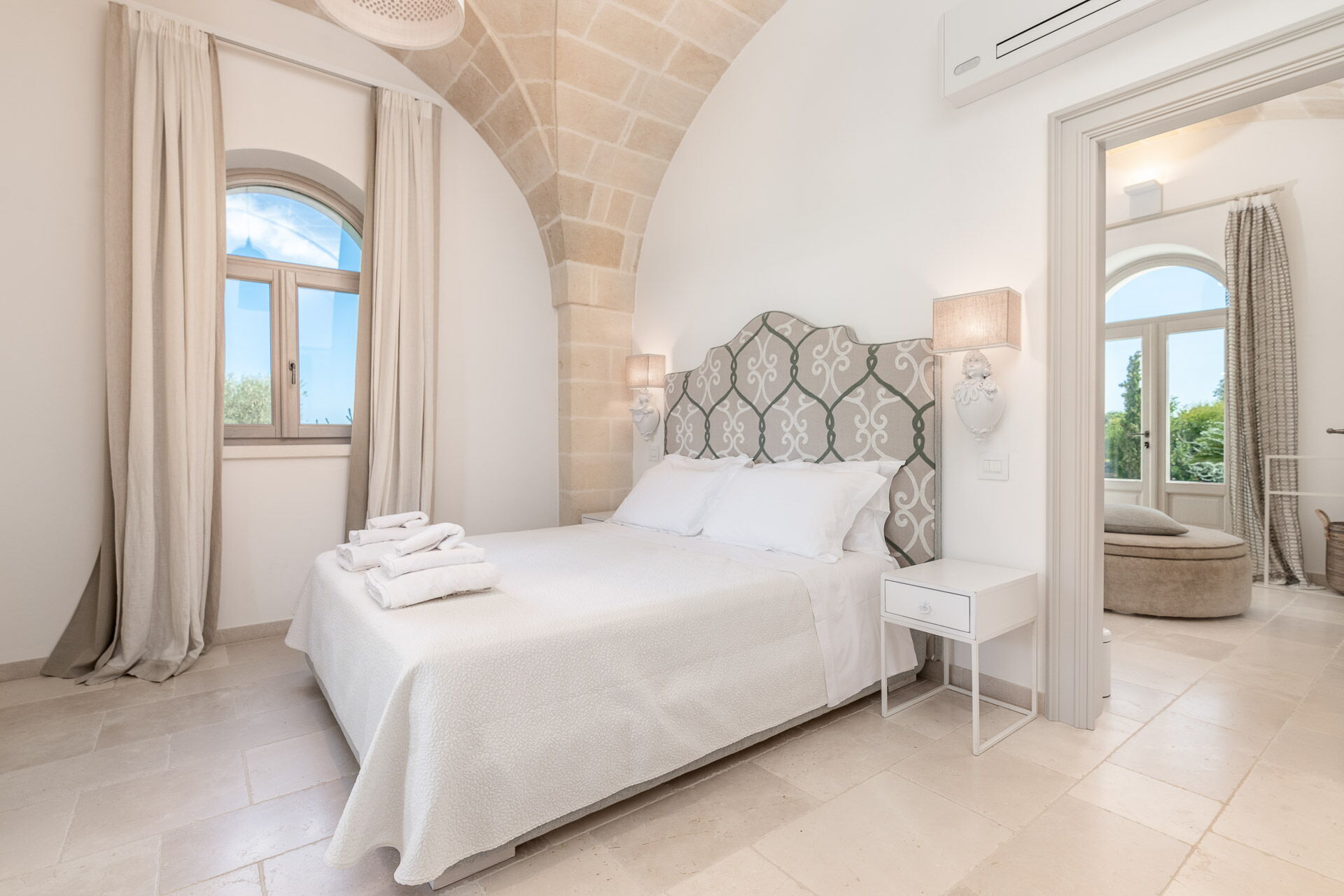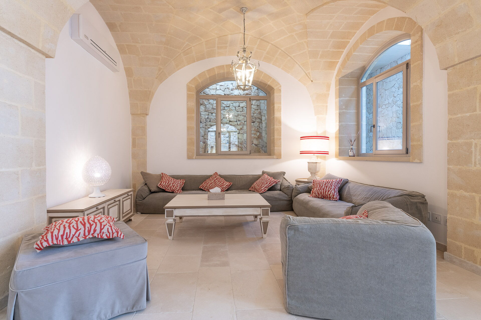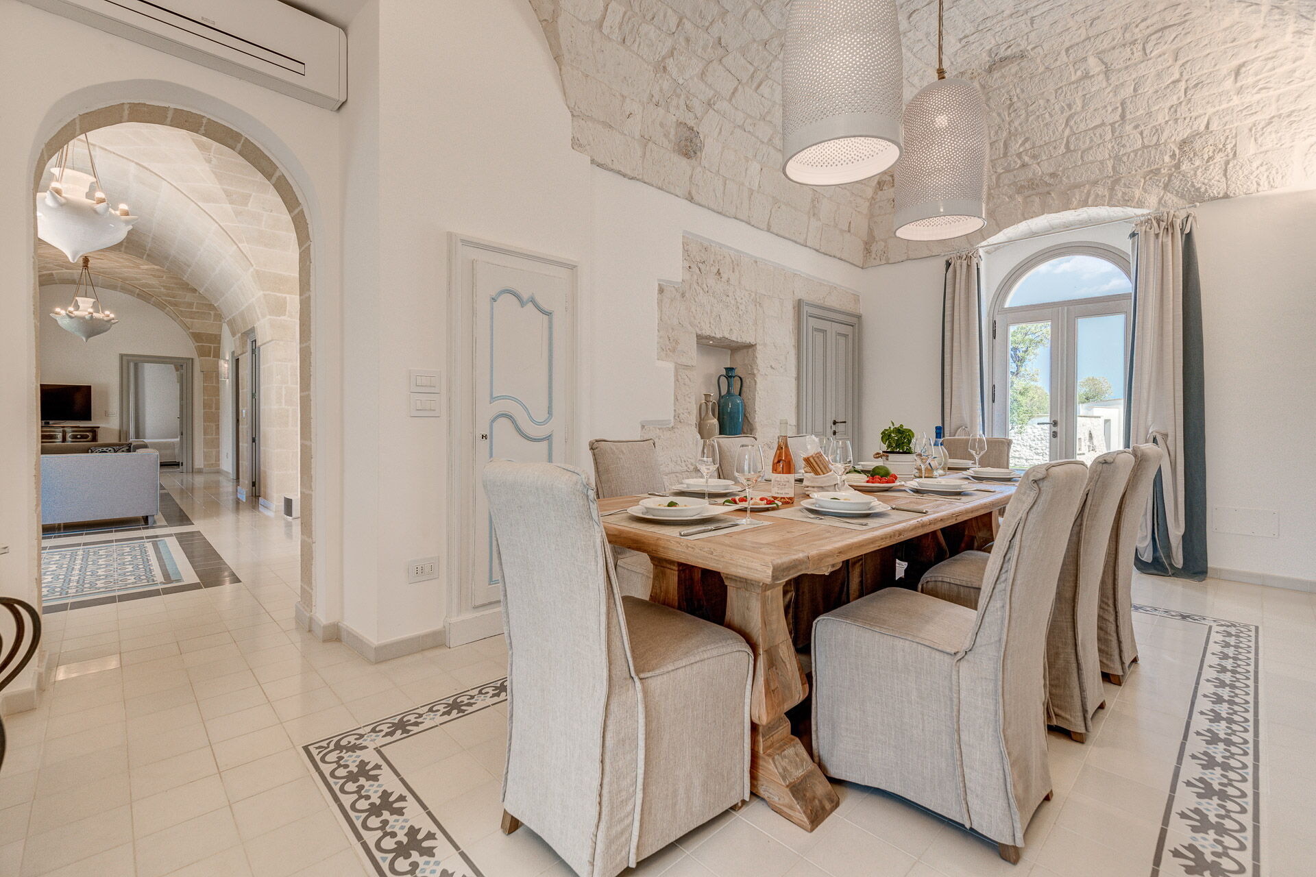 Huset har et moderne interiør og er smagfuldt indrettet med farver og stil nøje udvalgt for at fremhæve den gamle bygningsstruktur. Den pragtfulde ejendom ligger på en velplejet græsplæne på cirka 1 hektar, indrammet af en traditionel kalkstensmur. I den store have findes en elegant pool (opvarmet på forespørgsel) med solsenge og parasoller. En charmerende grusvej forbinder poolen med villaen.