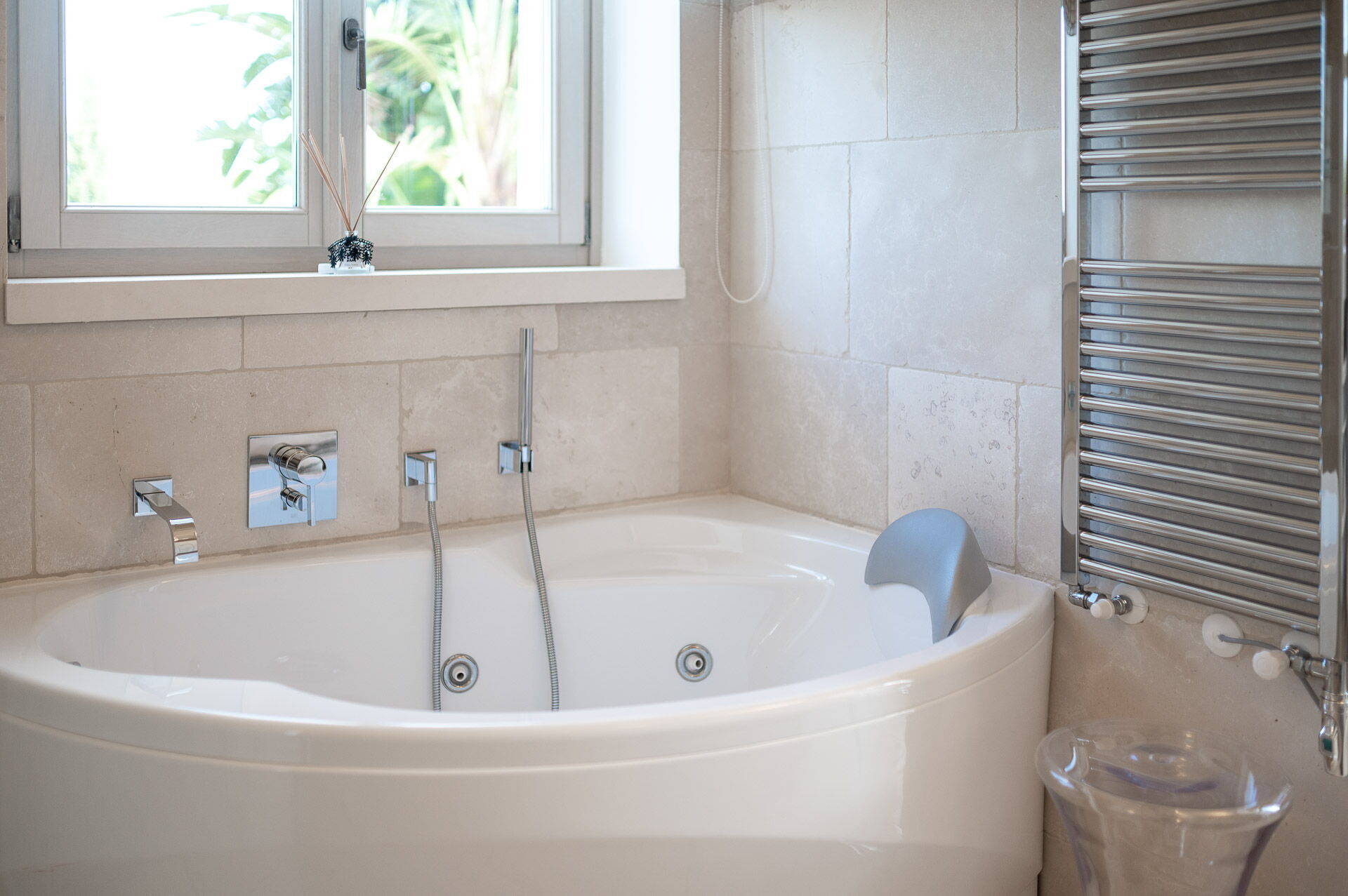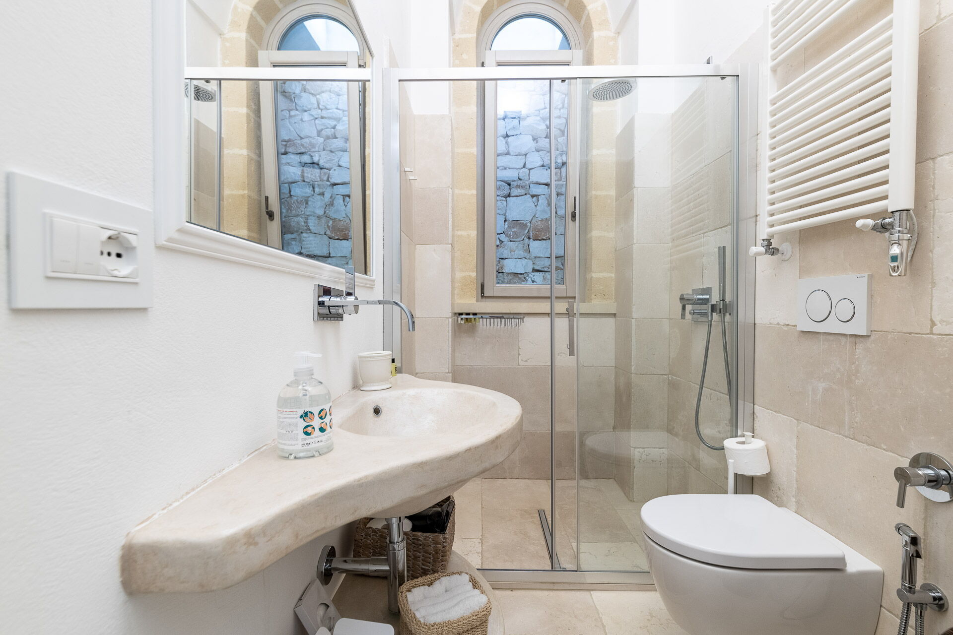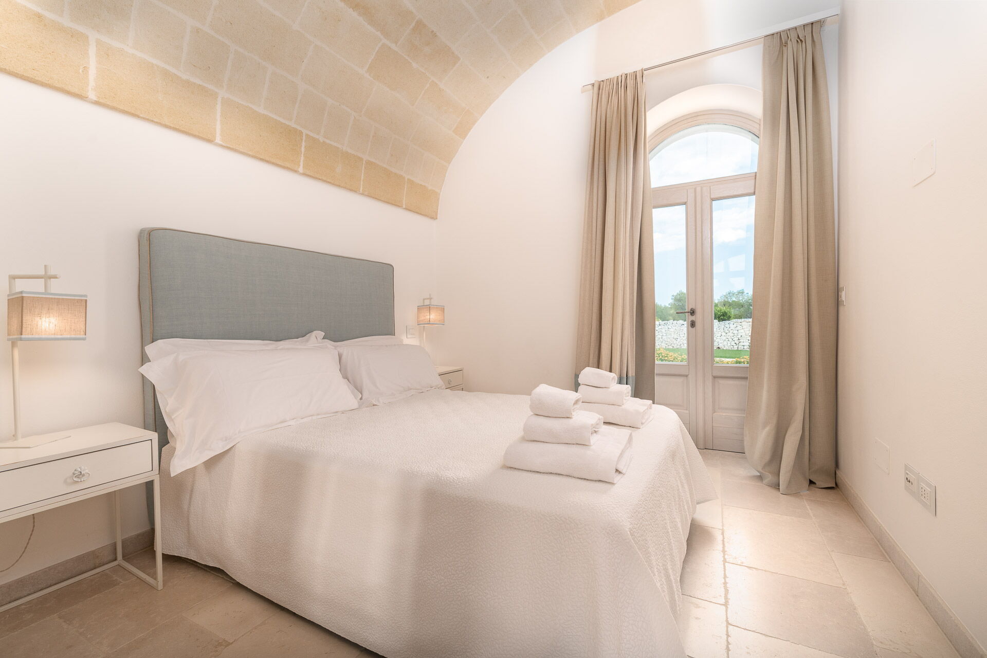 Huset har et moderne interiør og er smagfuldt indrettet med farver og stil nøje udvalgt for at fremhæve den gamle bygningsstruktur. Den pragtfulde ejendom ligger på en velplejet græsplæne på cirka 1 hektar, indrammet af en traditionel kalkstensmur. I den store have findes en elegant pool (opvarmet på forespørgsel) med solsenge og parasoller. En charmerende grusvej forbinder poolen med villaen.