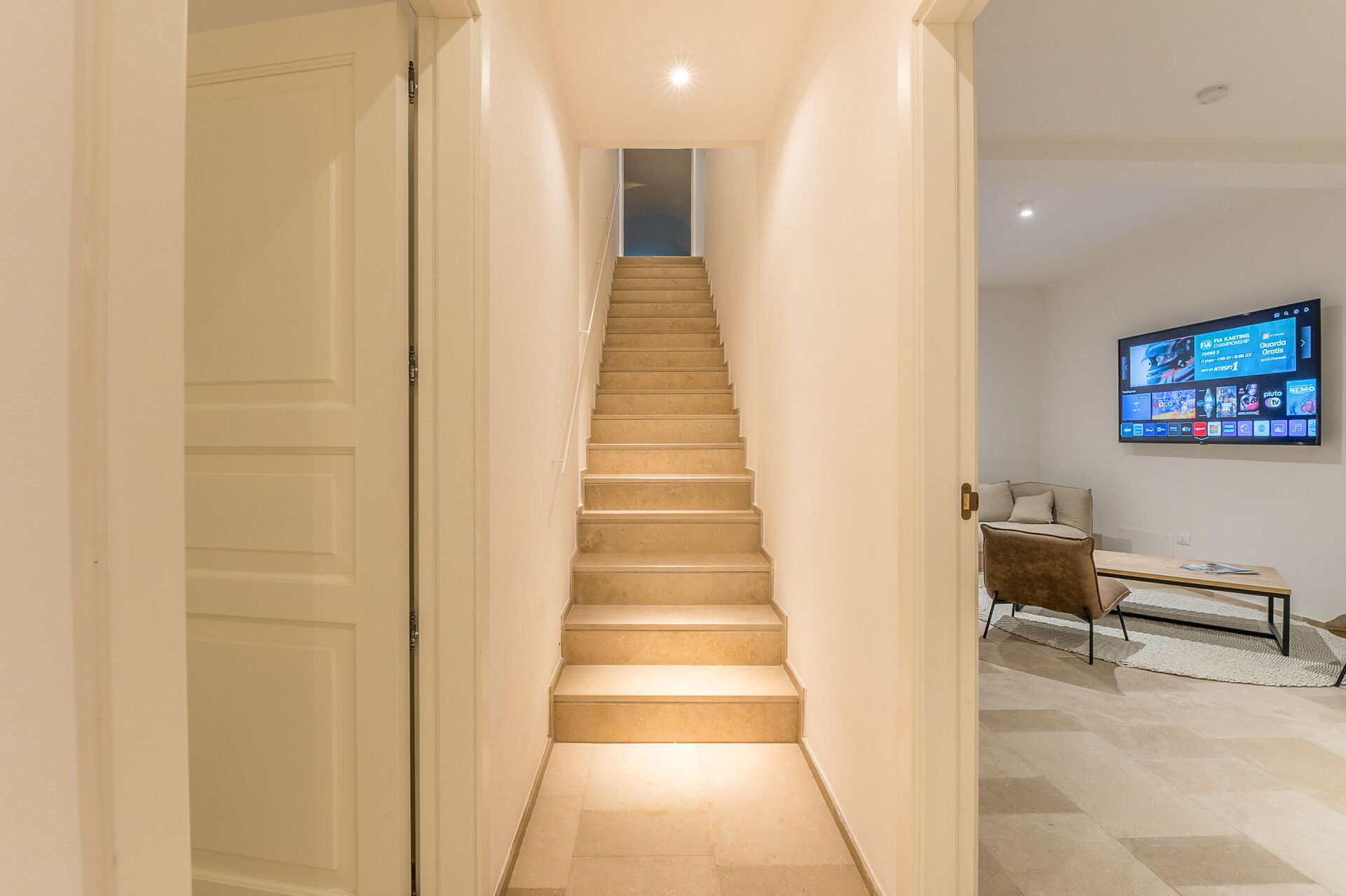 Underetage: soveværelse med dobbeltseng med eget badeværelse med bruser, stor stue med smart-tv, vaskerum (vaskemaskine, tørretumbler, strygejern), toilet.
