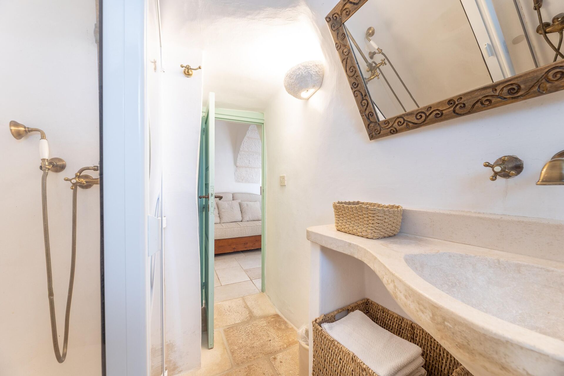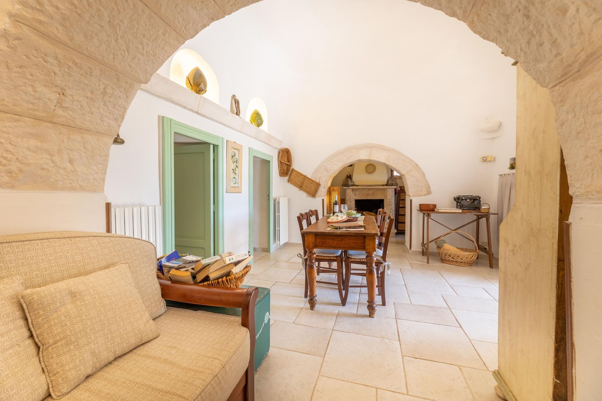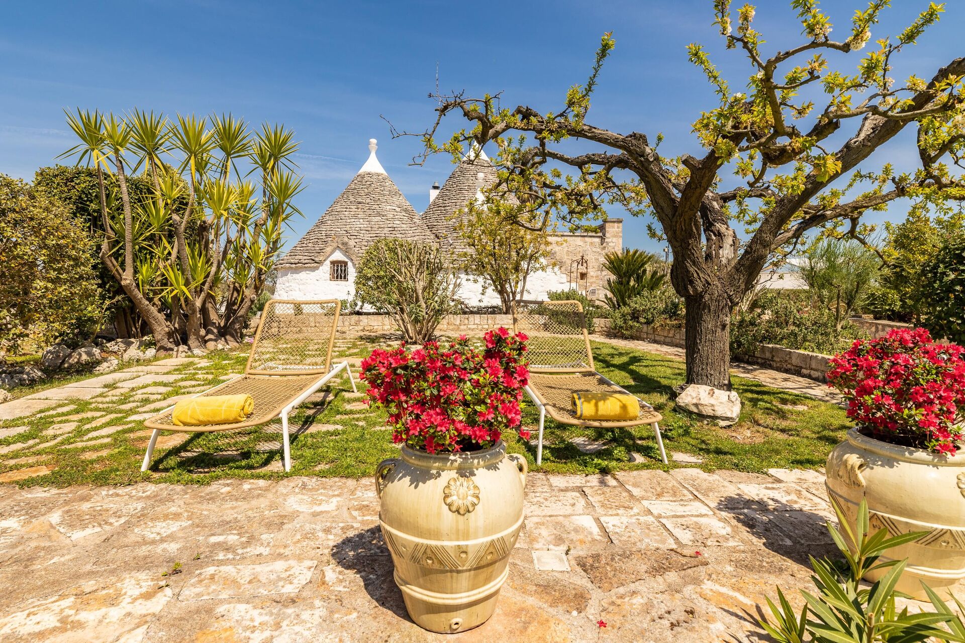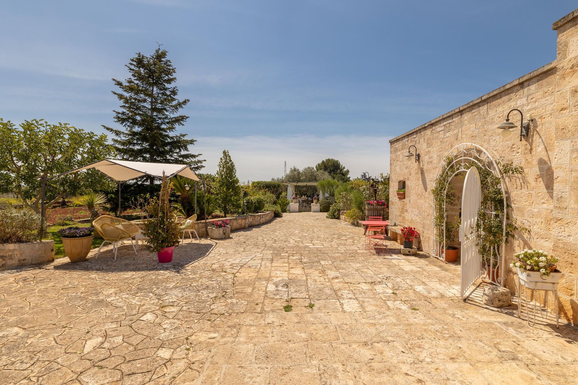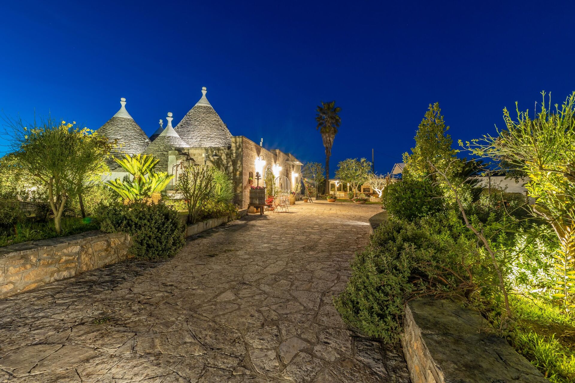 Trulloen er enkelt indrettet i ægte tradition for trulloens historie. Trulloen ligger i en 1000 m2 stor have med træer og middelhavsvegetation, den private pool er elegant og forbinder til trulloen med en charmerende brostensbelagt sti. Ved poolen er der en stor pergola med stole, perfekt til at slappe af med en bog i skyggen. Foran huset er der også en solsejl og stole til at slappe af i Salentos friske luft.