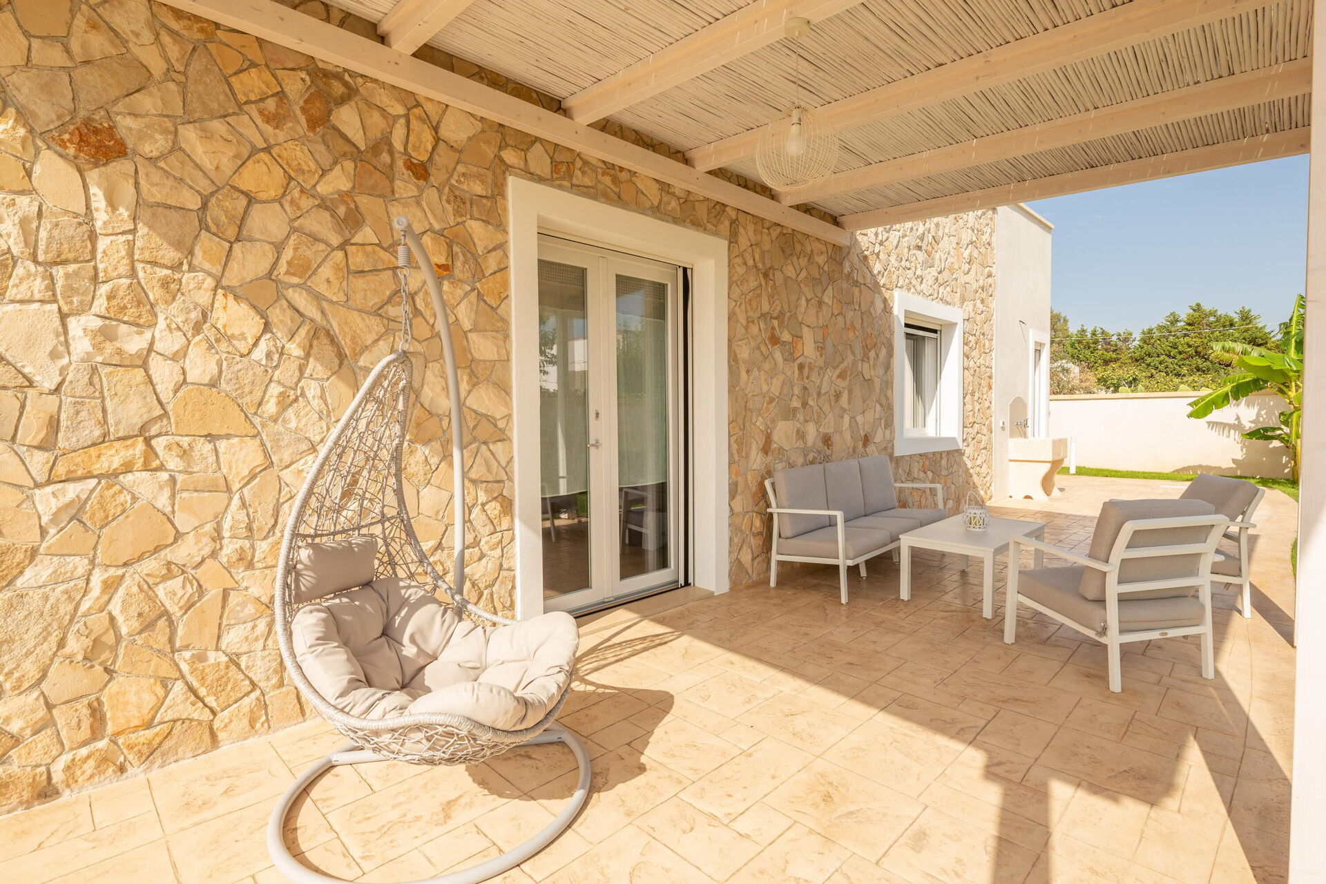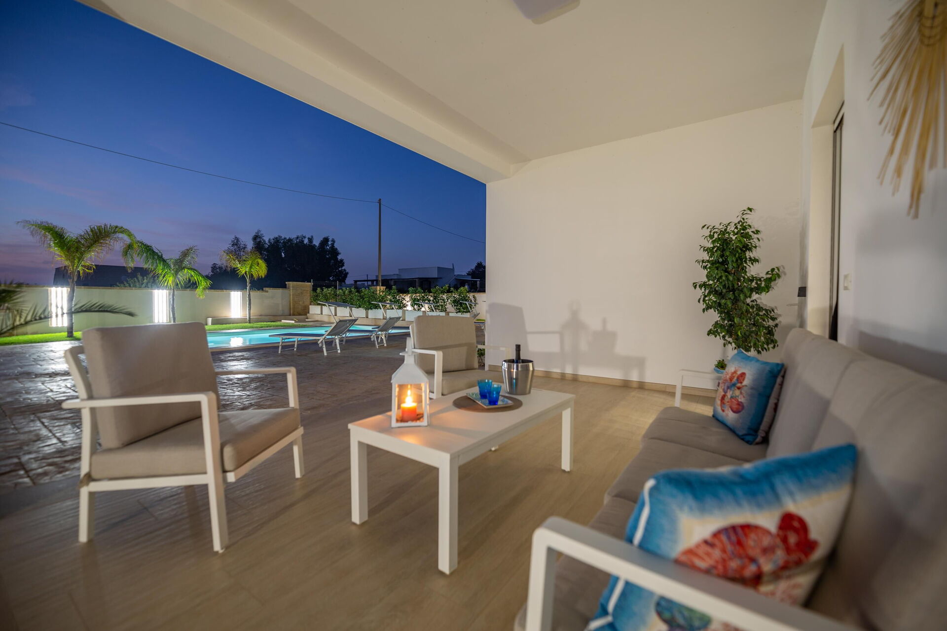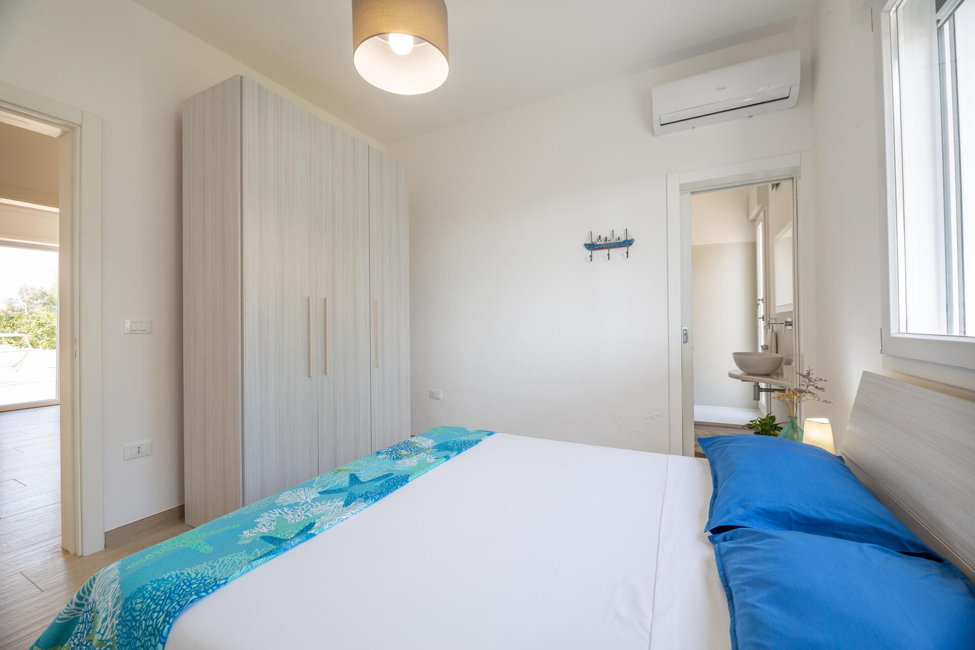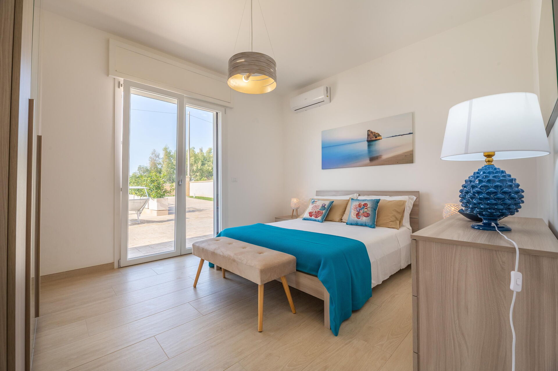 Interiøret er hyggeligt, lyst og smagfuldt indrettet til at opfylde behovene i en moderne livsstil. Villa Palibella kan rumme op til syv personer med tre soveværelser og en enkelt sovesofa i stuen.