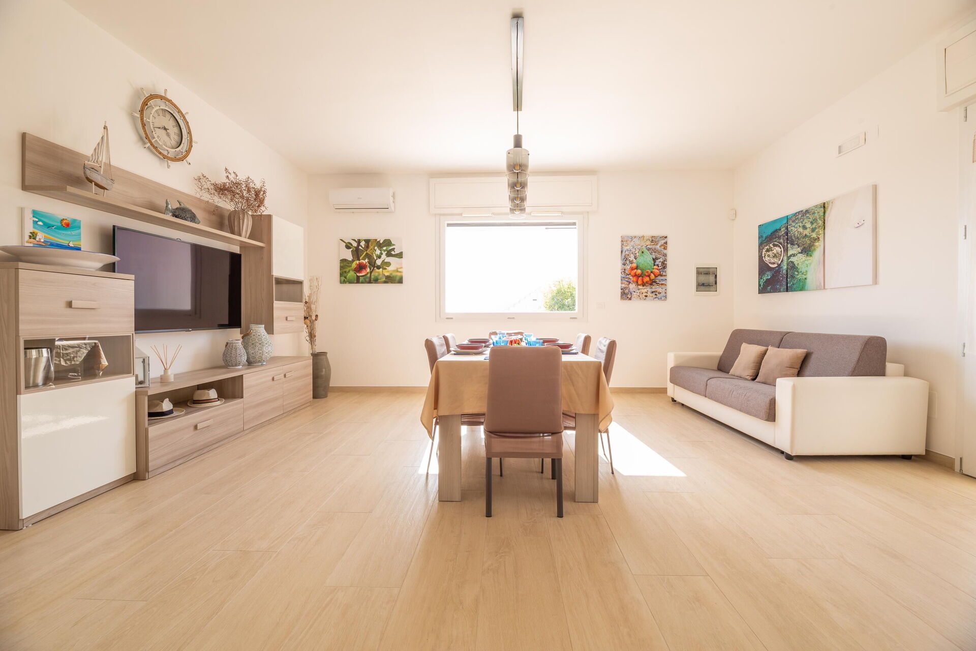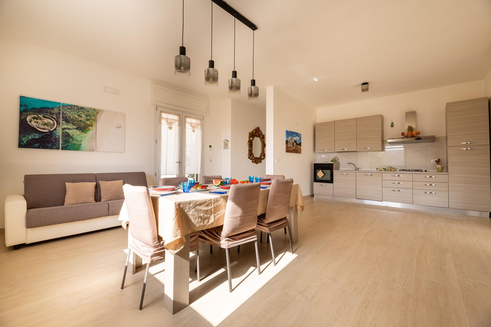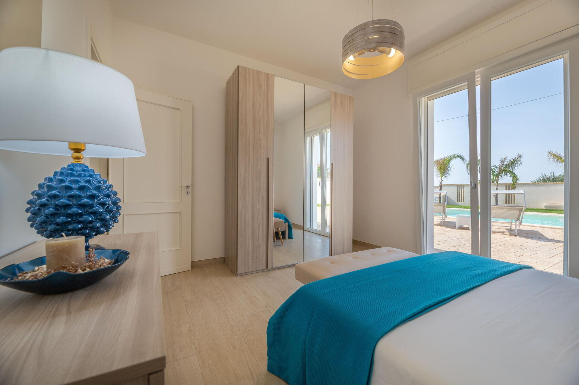Interiøret er hyggeligt, lyst og smagfuldt indrettet til at opfylde behovene i en moderne livsstil. Villa Palibella kan rumme op til syv personer med tre soveværelser og en enkelt sovesofa i stuen.