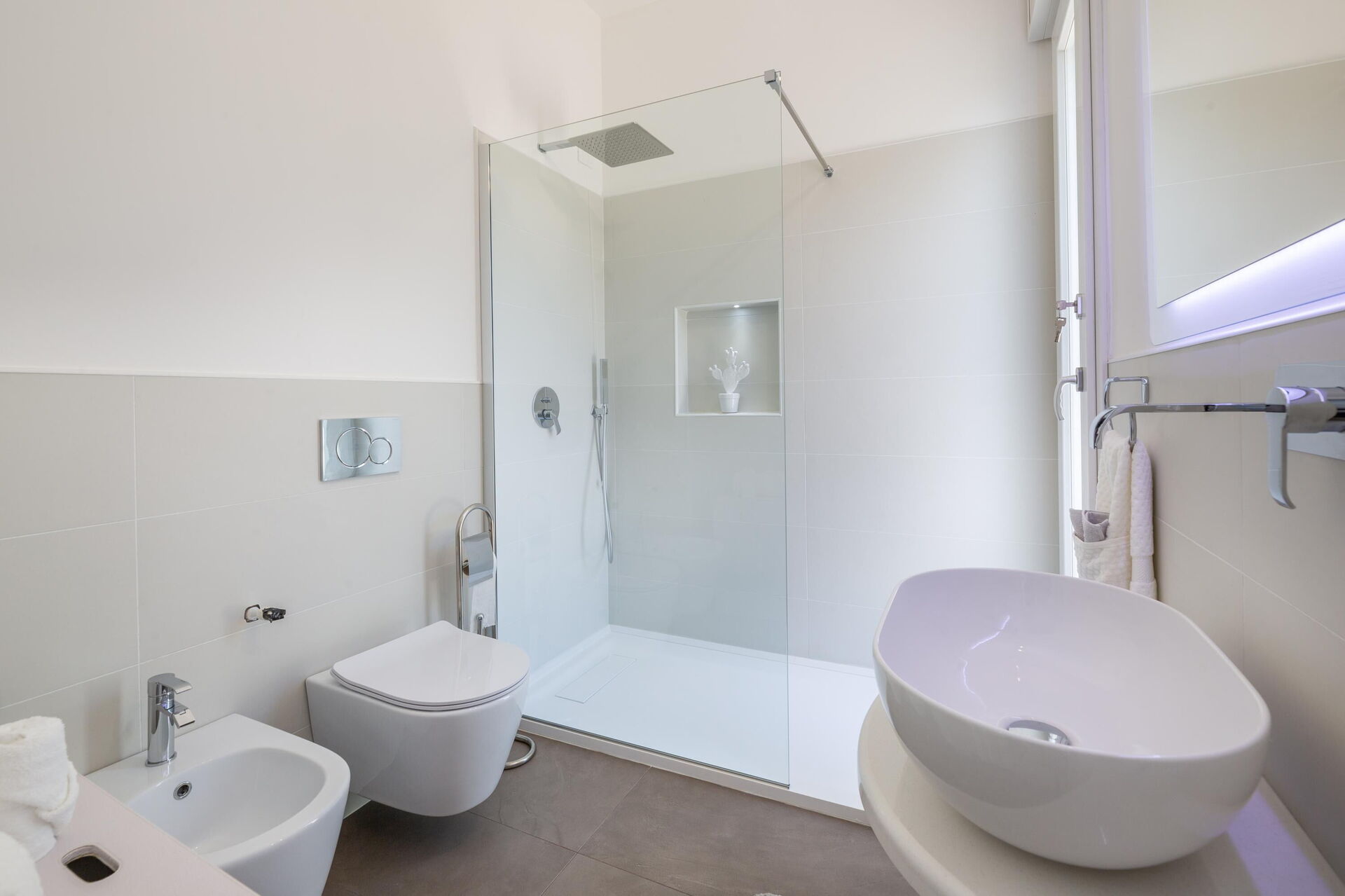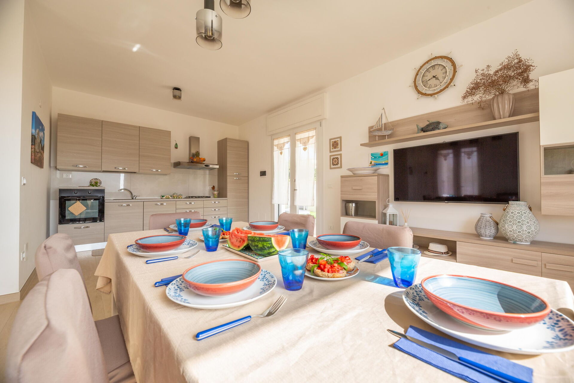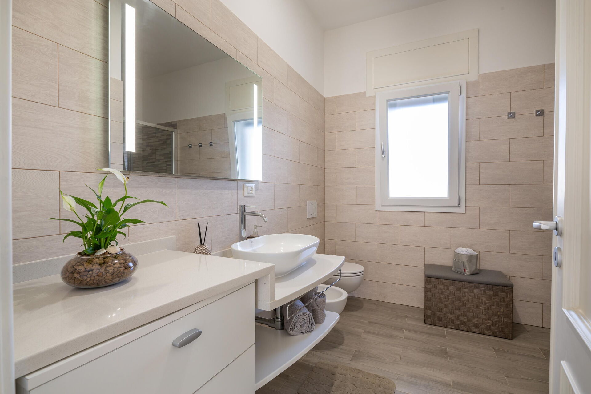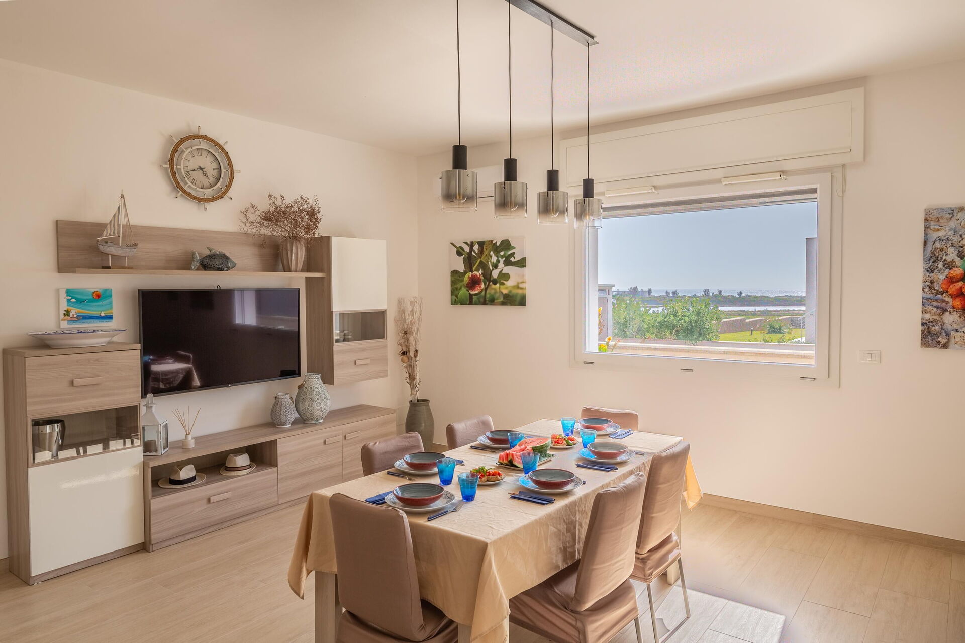 Interiøret er hyggeligt, lyst og smagfuldt indrettet til at opfylde behovene i en moderne livsstil. Villa Palibella kan rumme op til syv personer med tre soveværelser og en enkelt sovesofa i stuen.