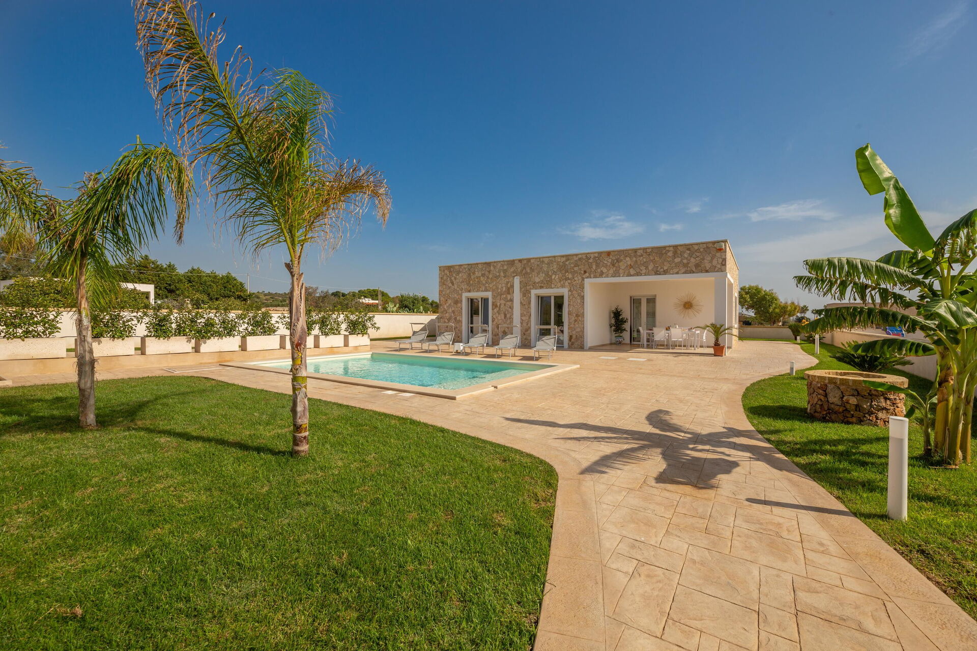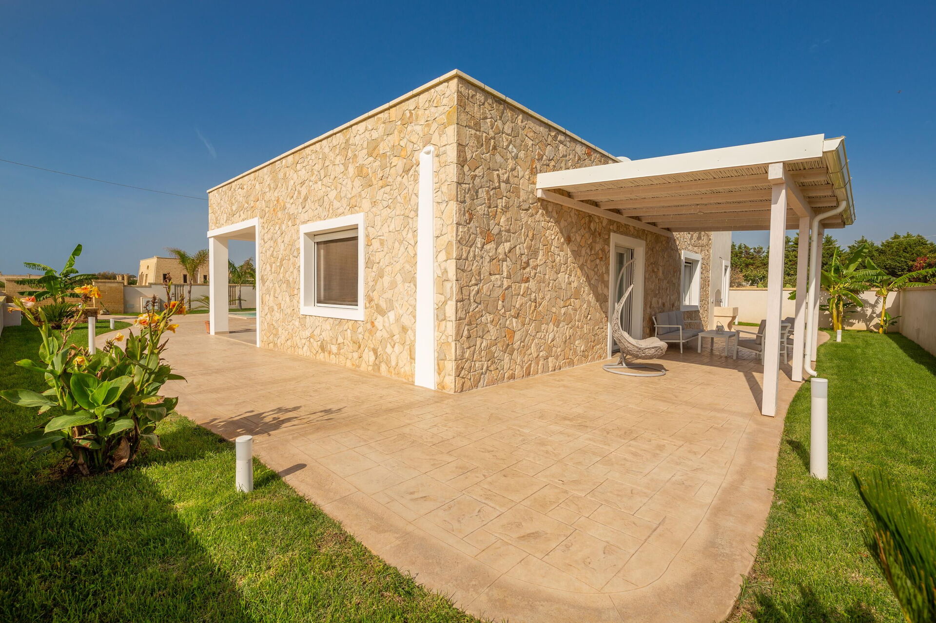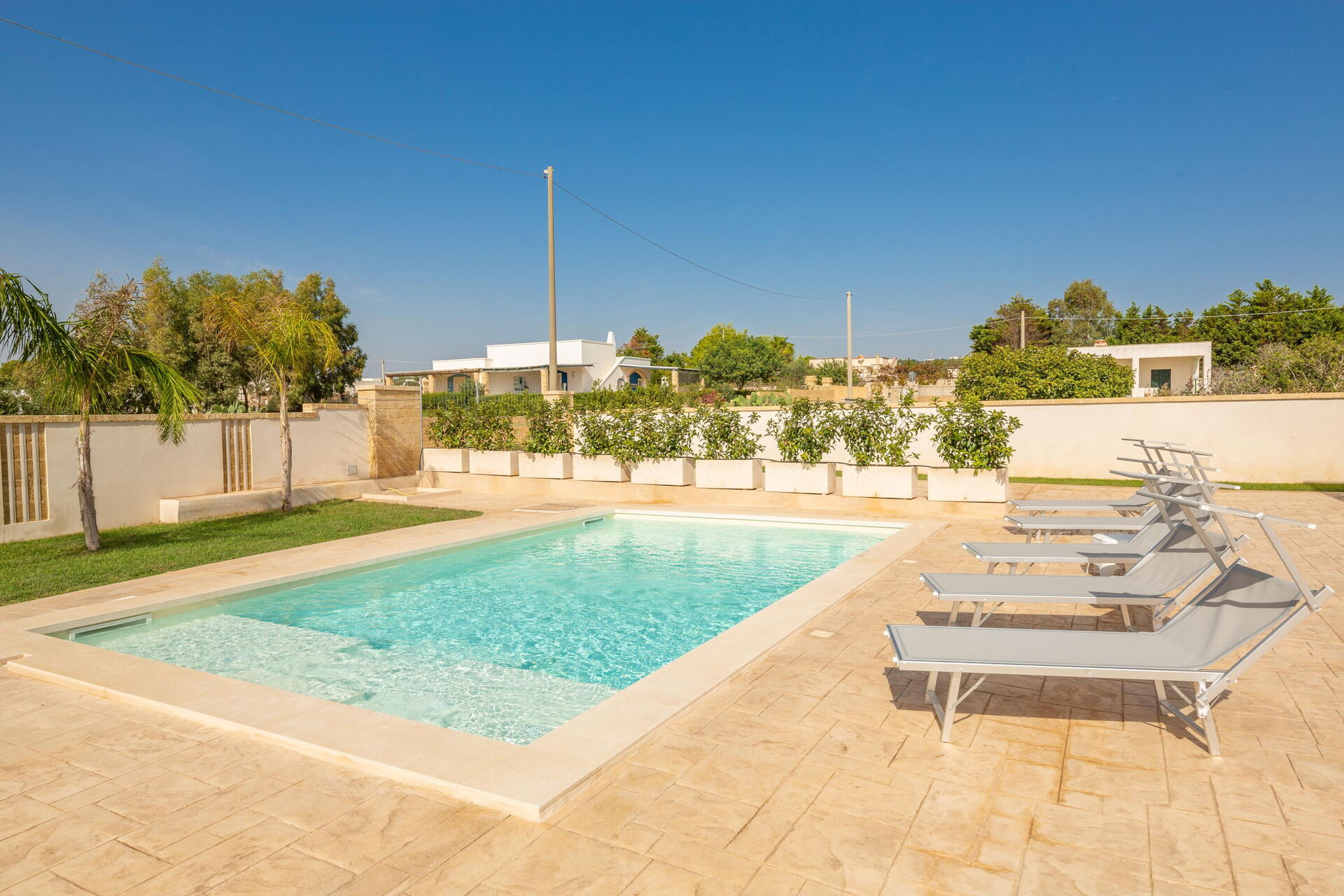 Afstande: Havet ligger 300 meter fra huset, Torre Pali (alle slags butikker) 1,5 km, Marina di Pescoluse ("Maldiverne i Salento") 5 km, Torre Vado 6 km, Torre San Giovanni (sandstrand) 12 km, Baia dei Diavoli (klipper) 16 km, Santa Maria di Leuca 19 km, Gallipoli 38 km, Otranto 56 km, Lecce 75 km