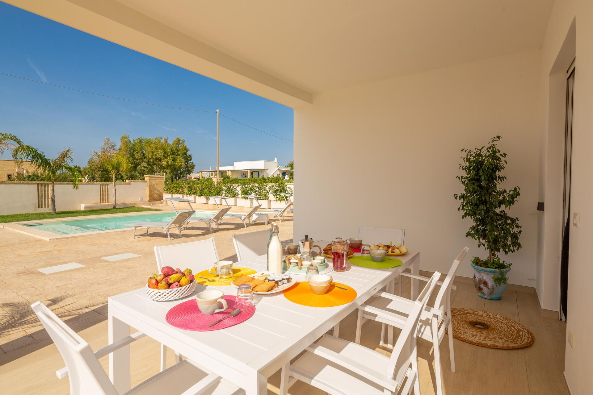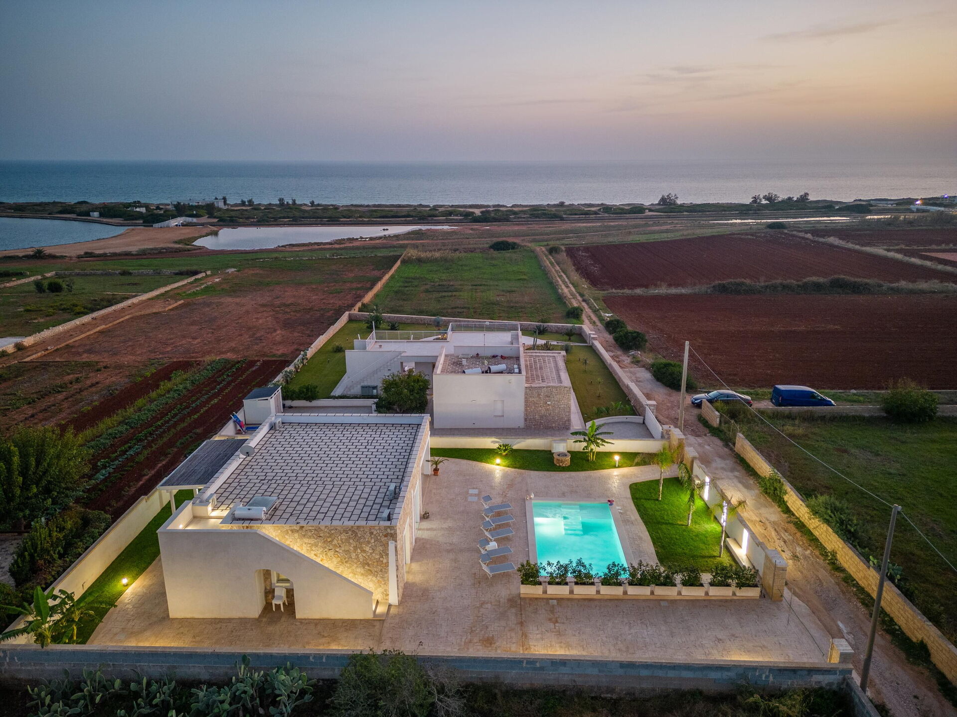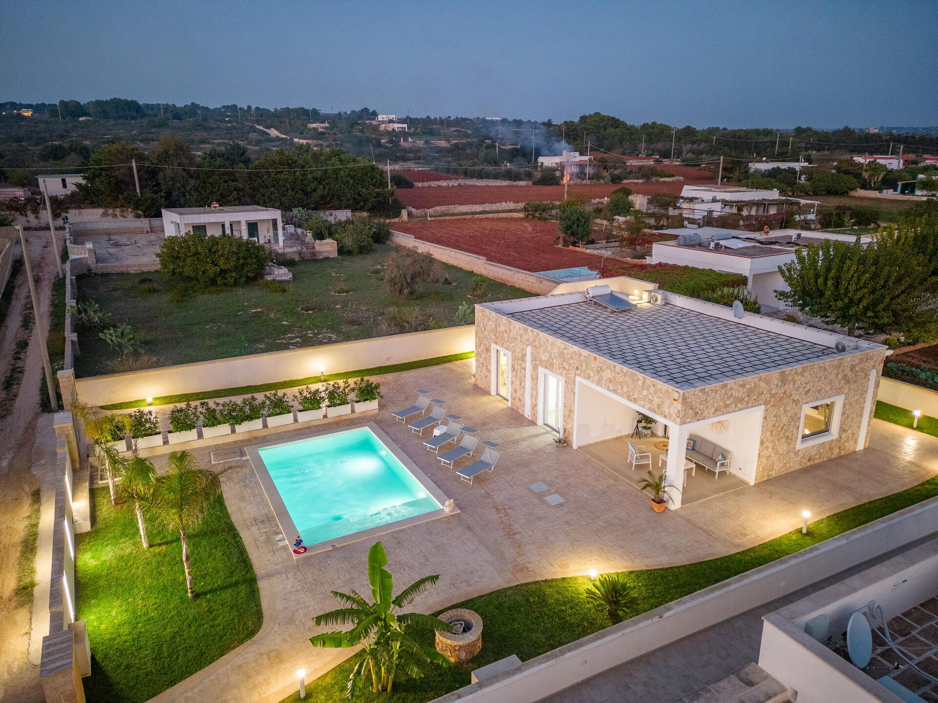 Afstande: Havet ligger 300 meter fra huset, Torre Pali (alle slags butikker) 1,5 km, Marina di Pescoluse ("Maldiverne i Salento") 5 km, Torre Vado 6 km, Torre San Giovanni (sandstrand) 12 km, Baia dei Diavoli (klipper) 16 km, Santa Maria di Leuca 19 km, Gallipoli 38 km, Otranto 56 km, Lecce 75 km