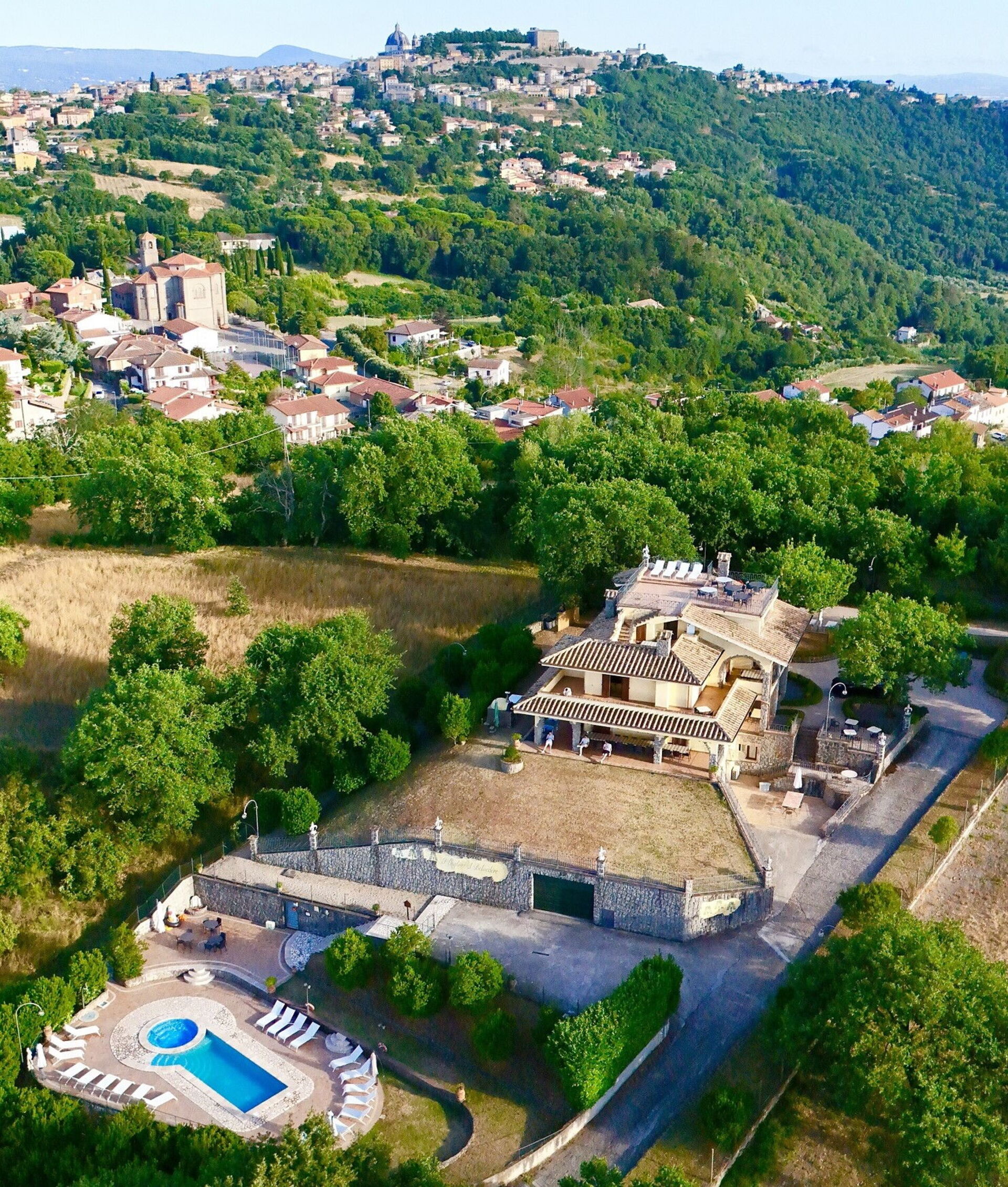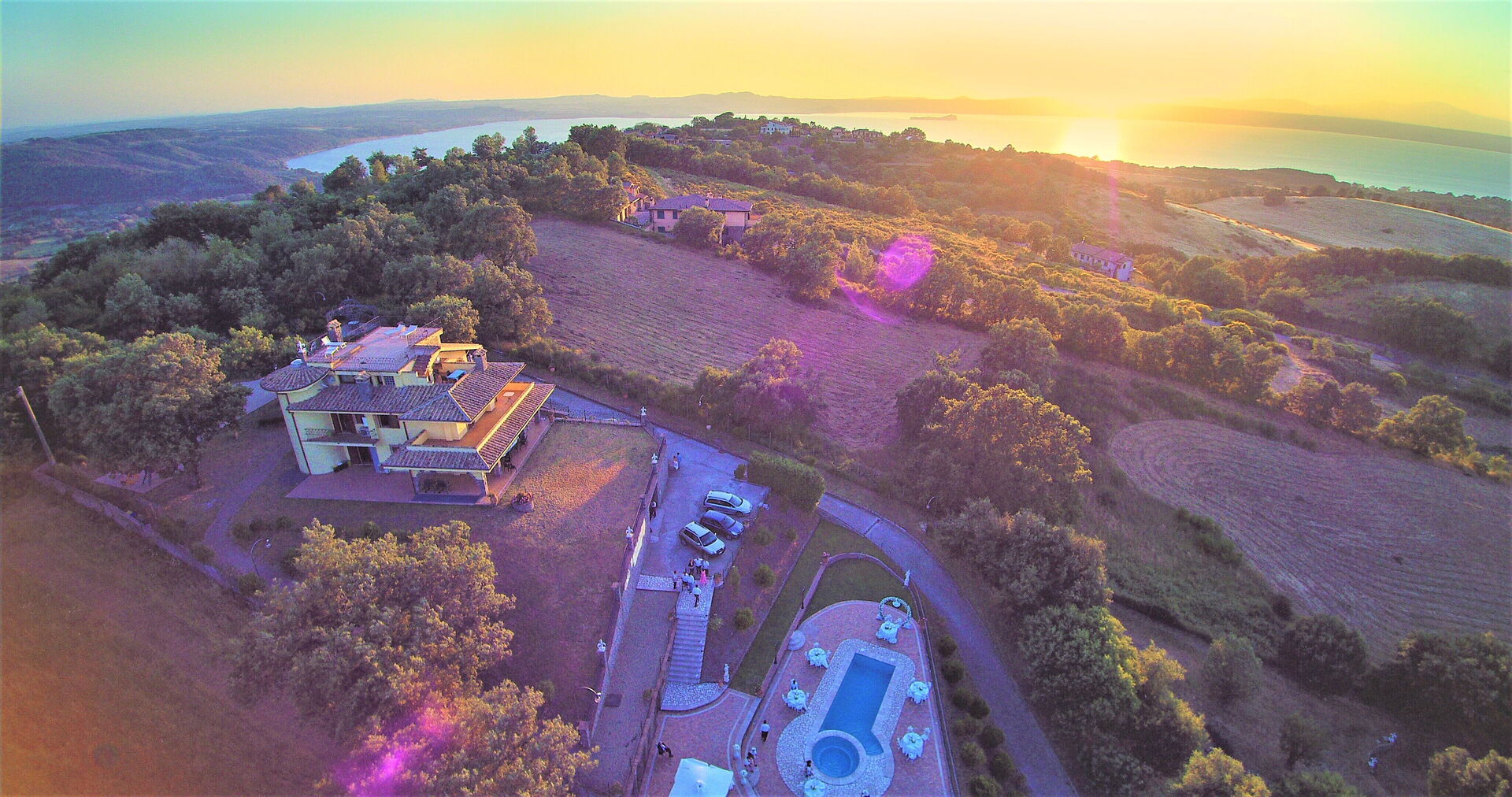 Eksklusiv villa med privat pool på en bakke med panoramaudsigt over søen Bolsena i Lazio. Feriehuset ligger i nærheden af Montefiascone, som er en af landsbyerne ved denne smukke sø i Italien