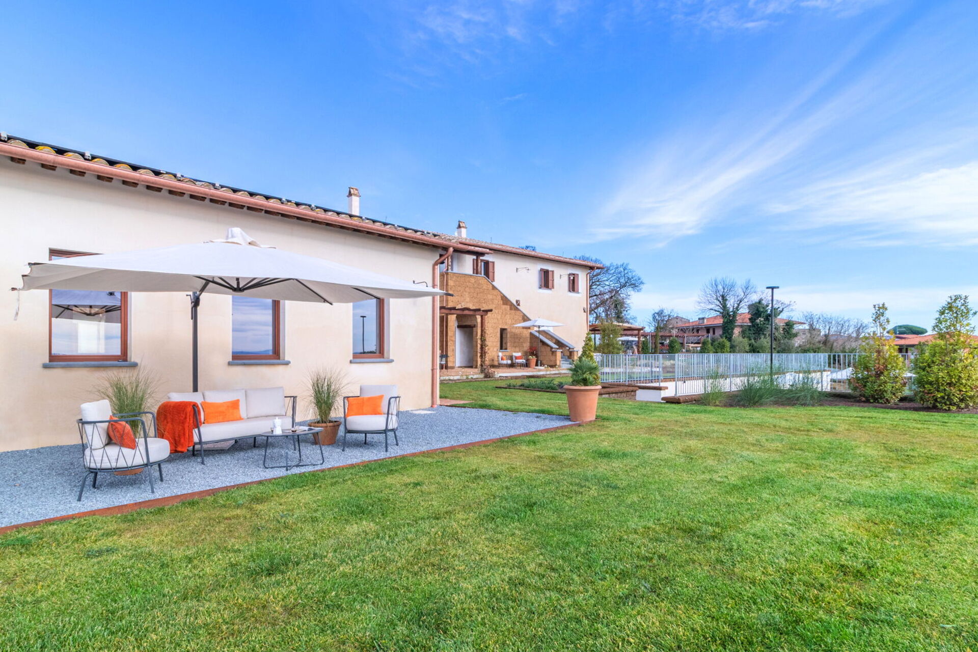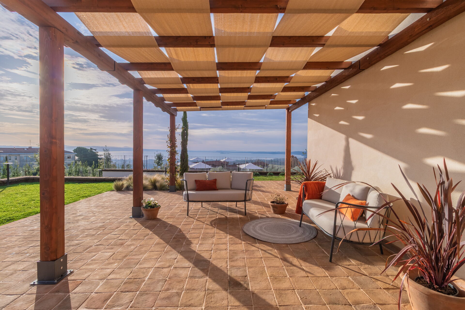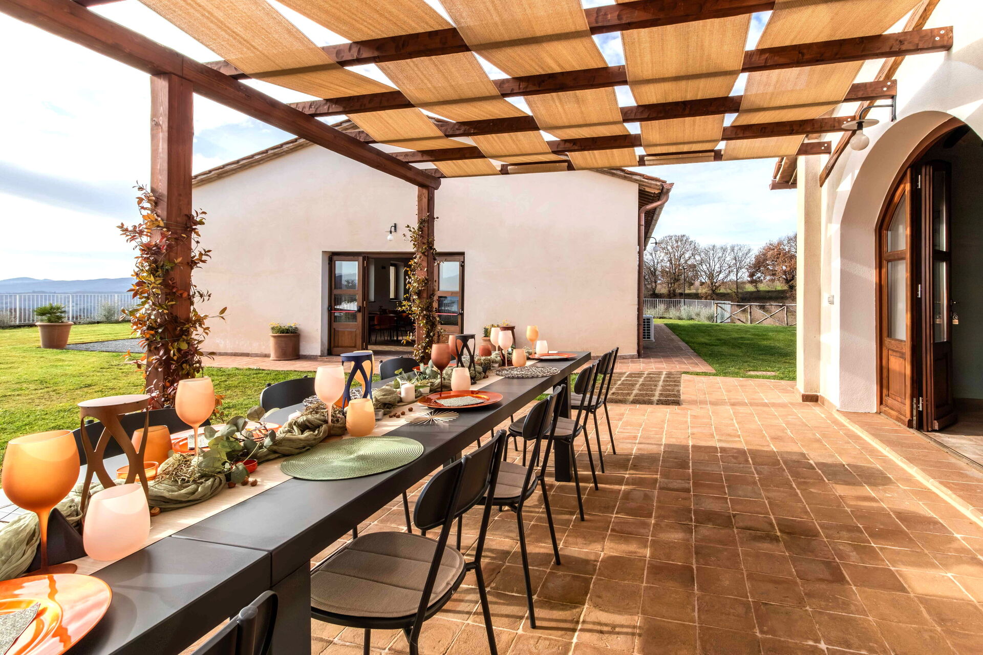 Udendørs findes en velplejet have på ca. 2.000 m². Her finder man en pragtfuld privat swimmingpool med naturskøn udsigt over Bolsena-søen, hvor man kan køle af på varme sommerdage. Verandaen med udendørs spiseplads er endnu et sted, der er perfekt til afslapning sammen med familie eller venner.