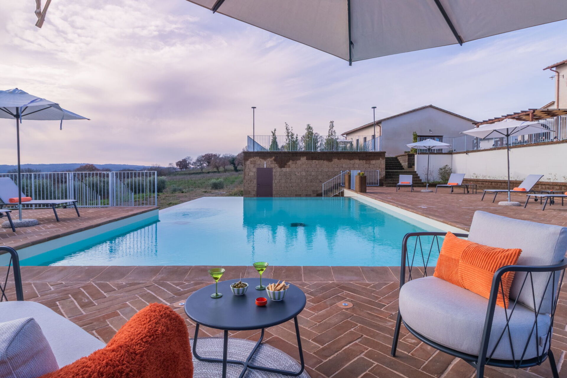 Alt dette gør Tenuta Poggio Guiano til et fremragende udgangspunkt for at udforske området ”Tuscia”, et historisk fascinerende landskab i det centrale Italien. Gå ikke glip af de charmerende byer omkring Bolsena-søen såsom Orvieto, Viterbo, den unikke Civita di Bagnoregio og Pitigliano. For arkæologiinteresserede ligger de etruskiske nekropoler Pianezze, Centocamere og Crocefisso del Tufo også i nærheden. Den berømte ”Bomarzo – Monsterparken” ligger ligeledes tæt på, samt de kendte termalbade i San Casciano dei Bagni, Terme dei Papi, Sorano, Bagni di San Filippo og Saturnia.