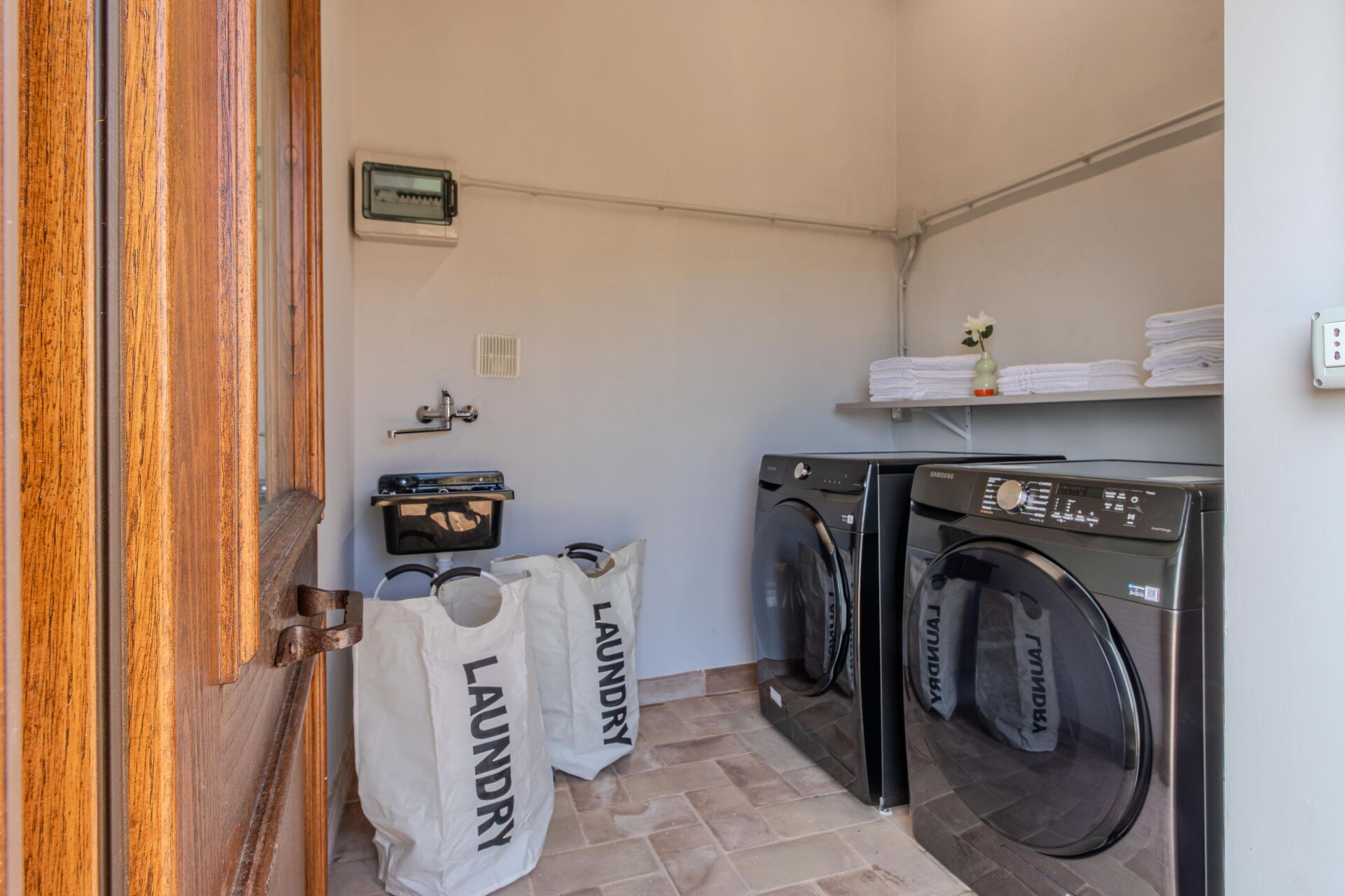 Stueetage (tilgængelig fra haven over poolen og ikke indvendigt forbundet med de øvrige enheder): udstyret med vaskemaskine og tørretumbler.