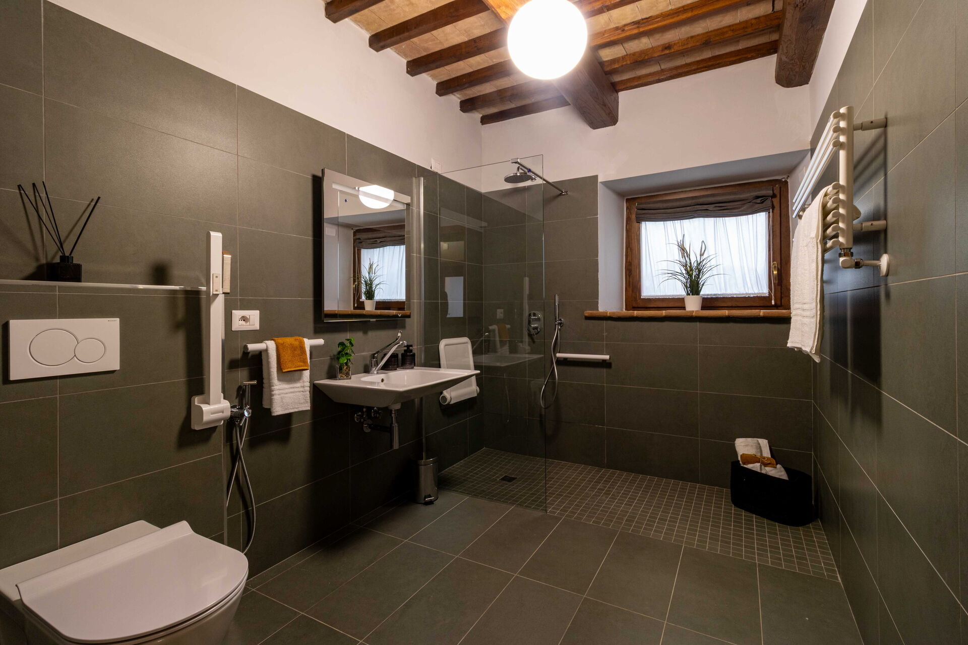 Stueetage (ikke indvendigt forbundet med de øvrige enheder): dobbeltværelse (efter anmodning kan king size-sengen opdeles i 2 enkeltsenge) med privat badeværelse med niveaufri bruser (ideelt for personer med nedsat mobilitet eller handicap).