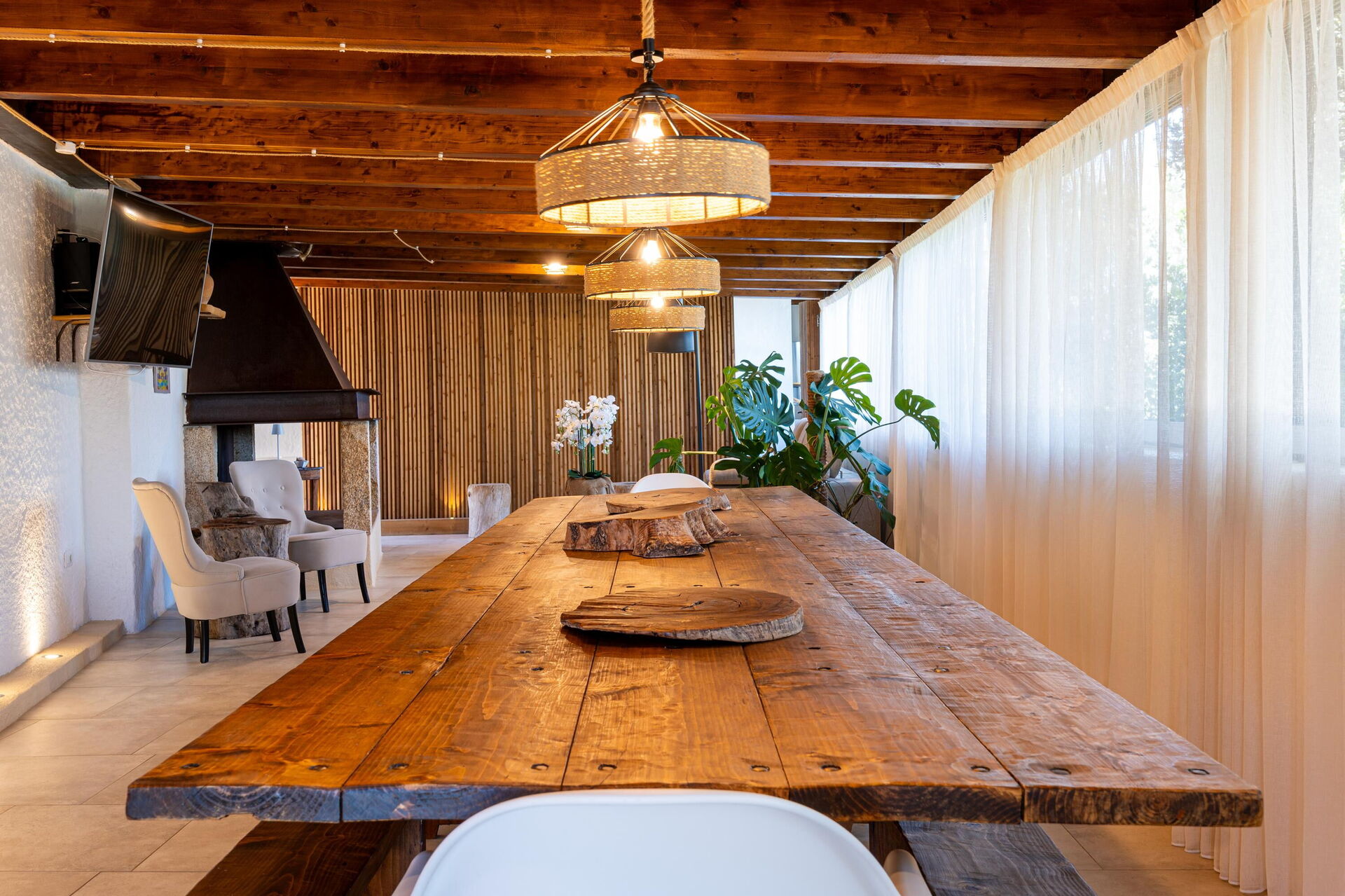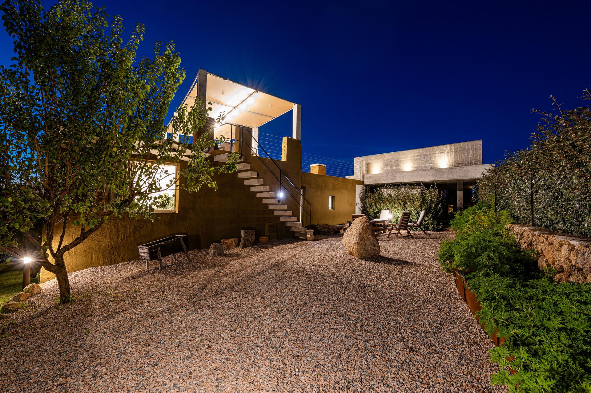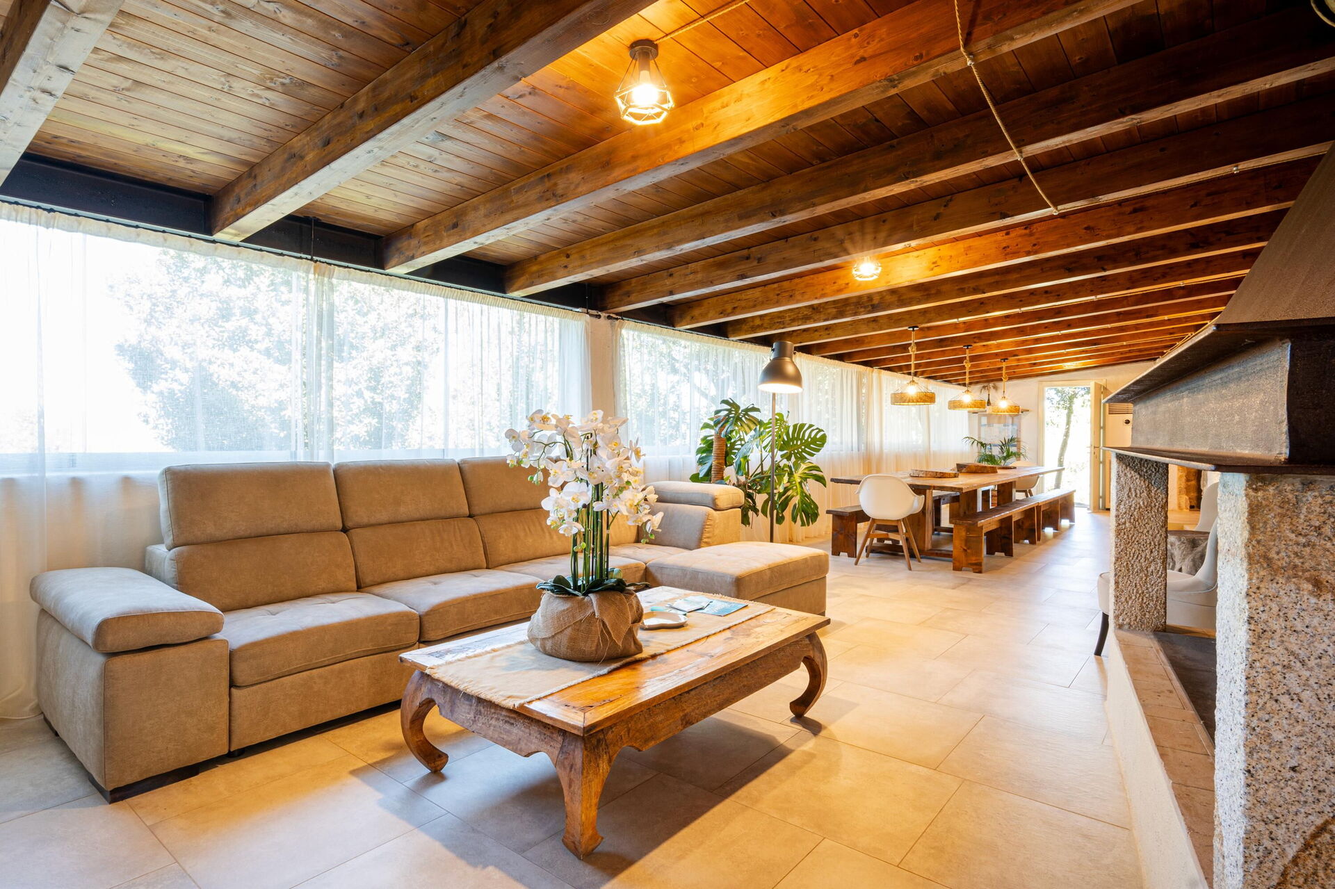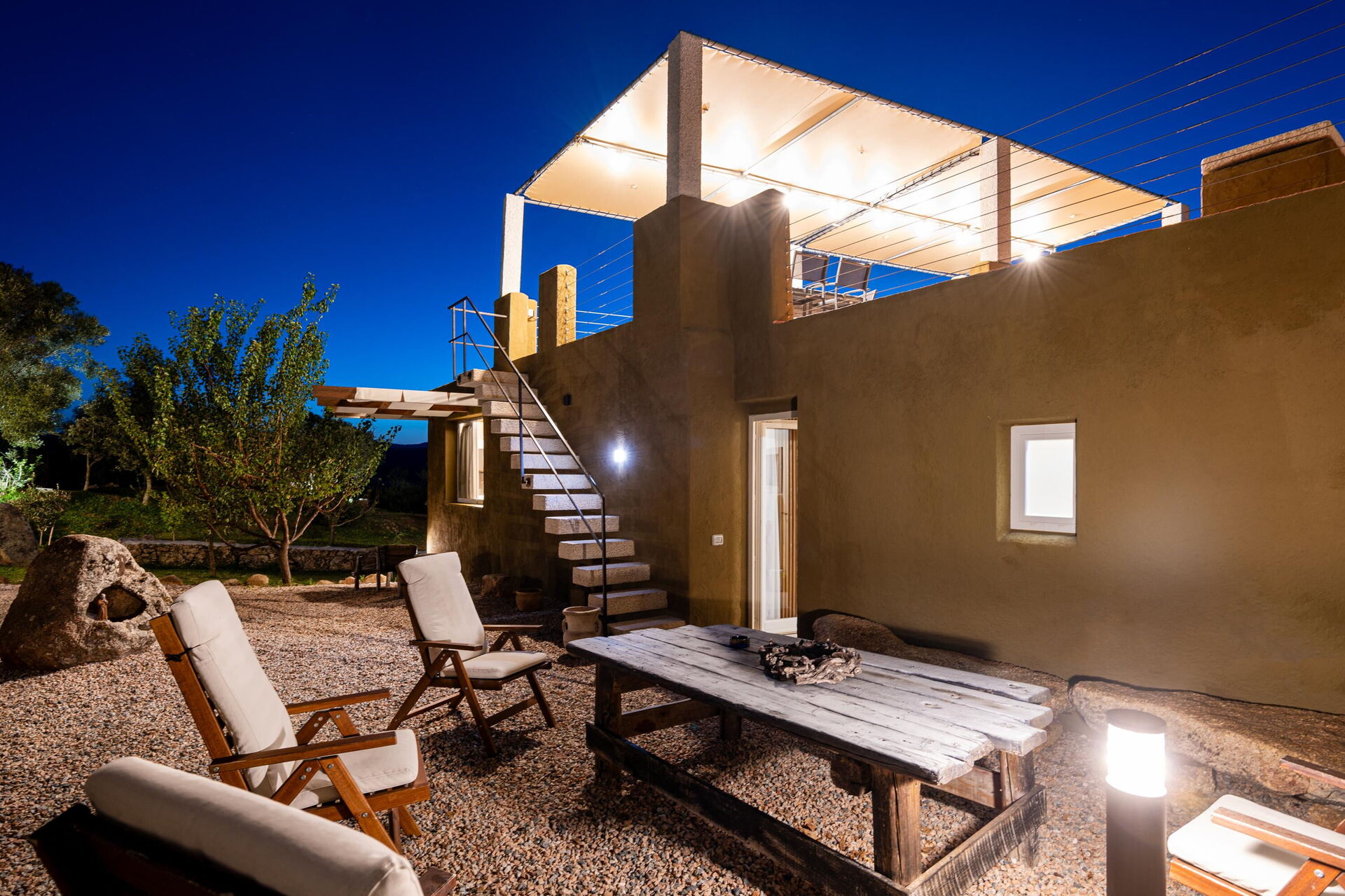 Udendørs har ejendommen flere fællesområder med panoramaudsigt: poolen er bygget på terrassen på første sal, så gæsterne kan nyde den pragtfulde udsigt over det omkringliggende landskab og havet. På terrassen kan du også slappe af i en af liggestolene eller nyde et måltid under den store pavillon.