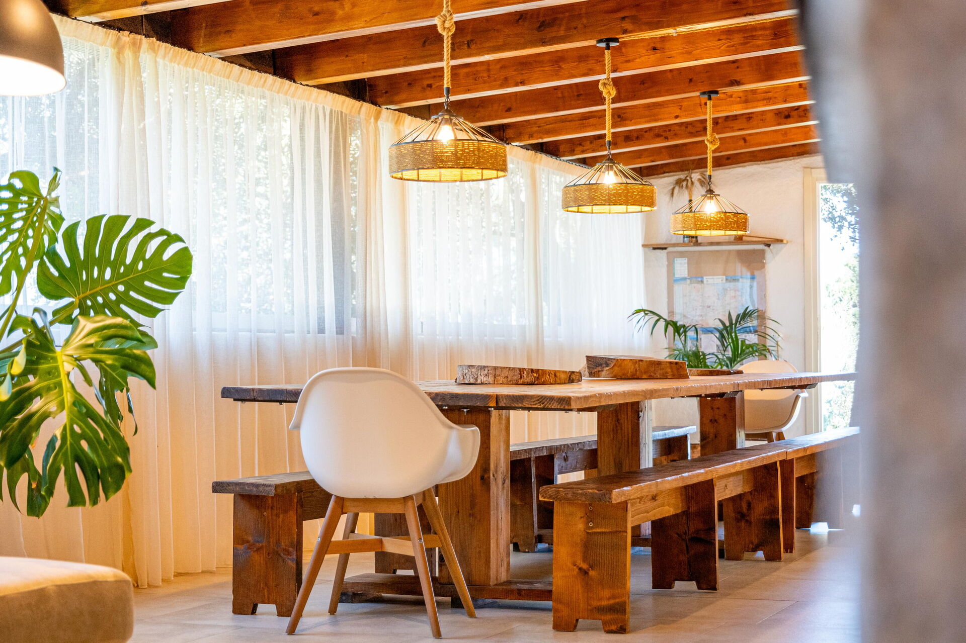 - pavillon med bord og stole til udendørs spisning