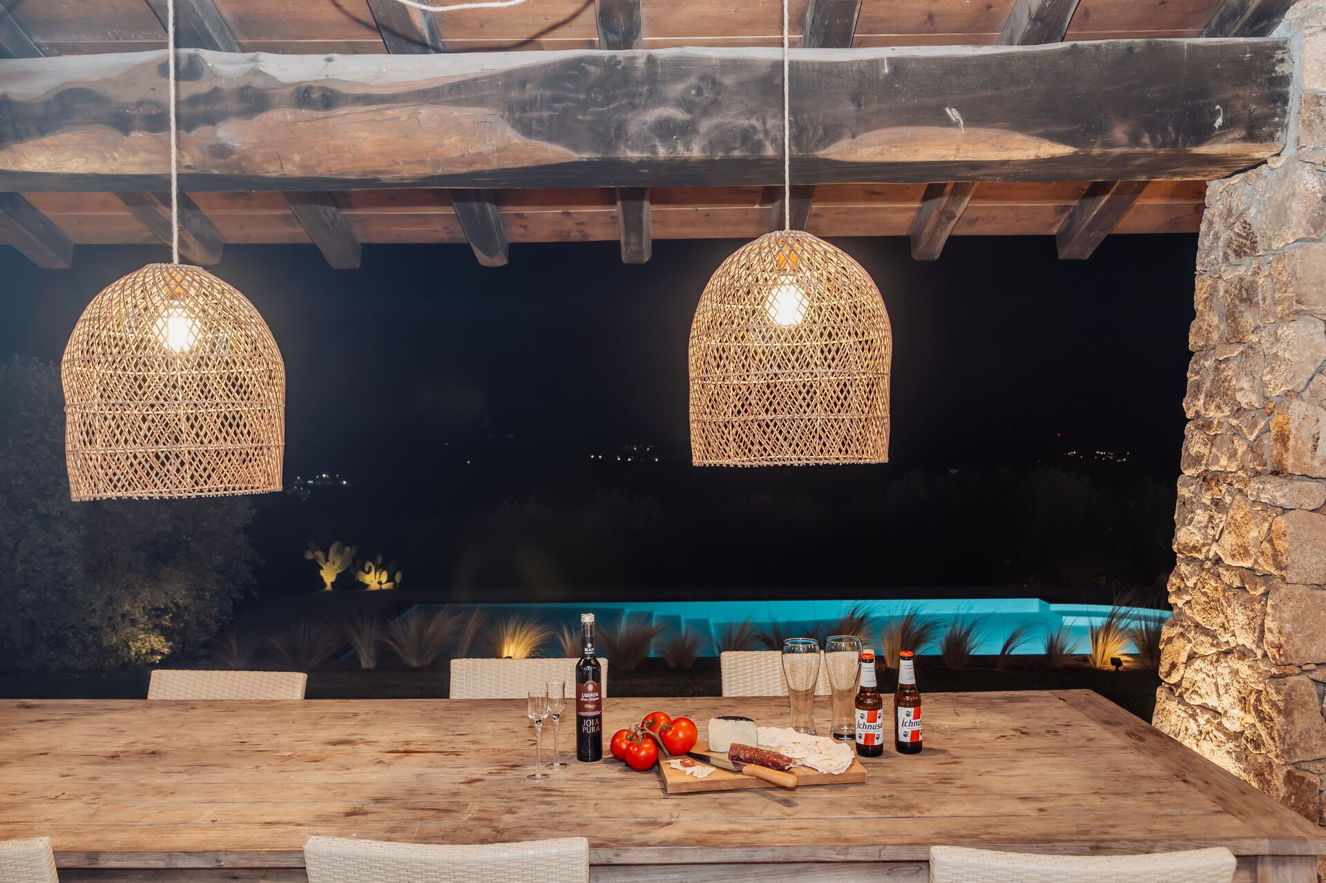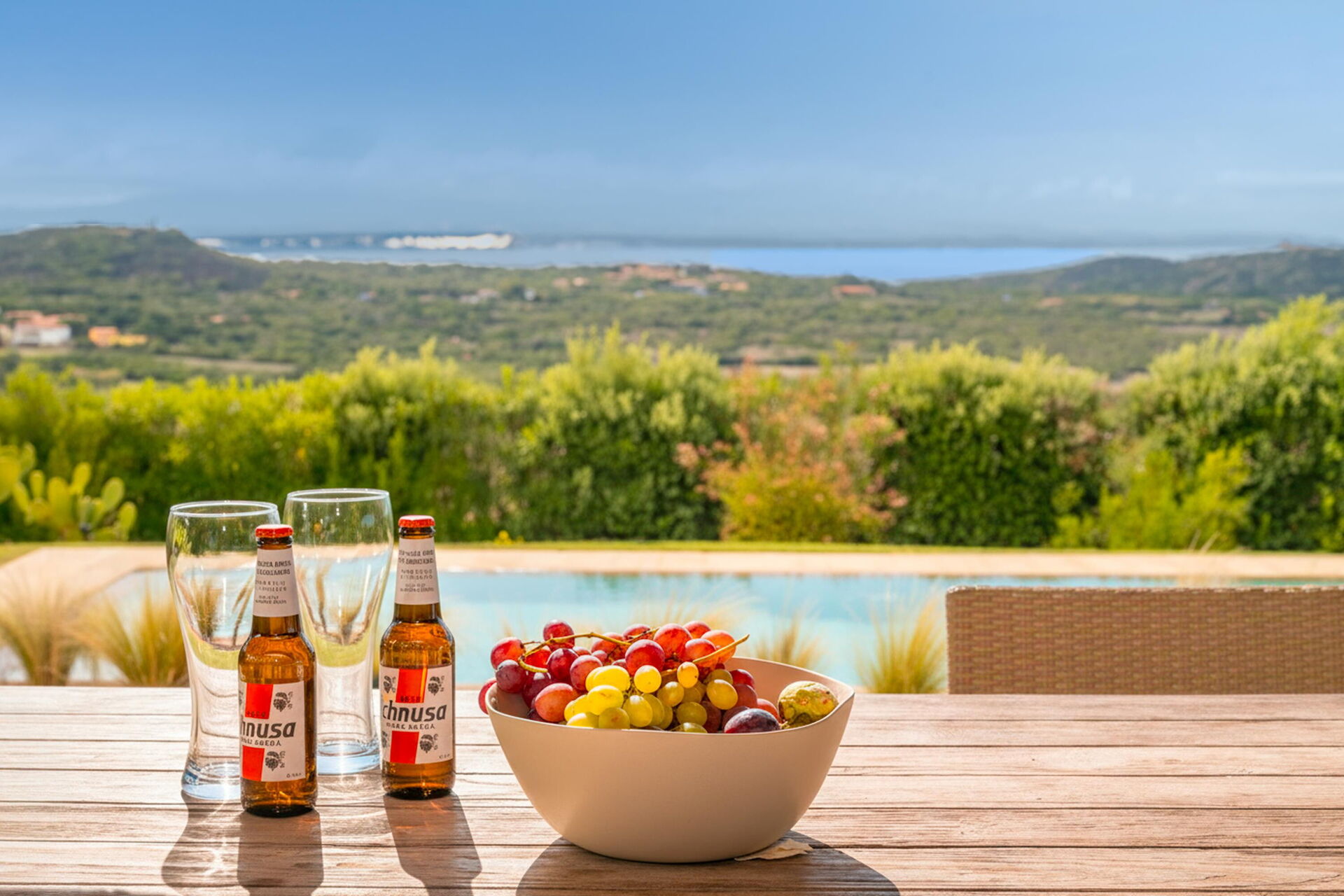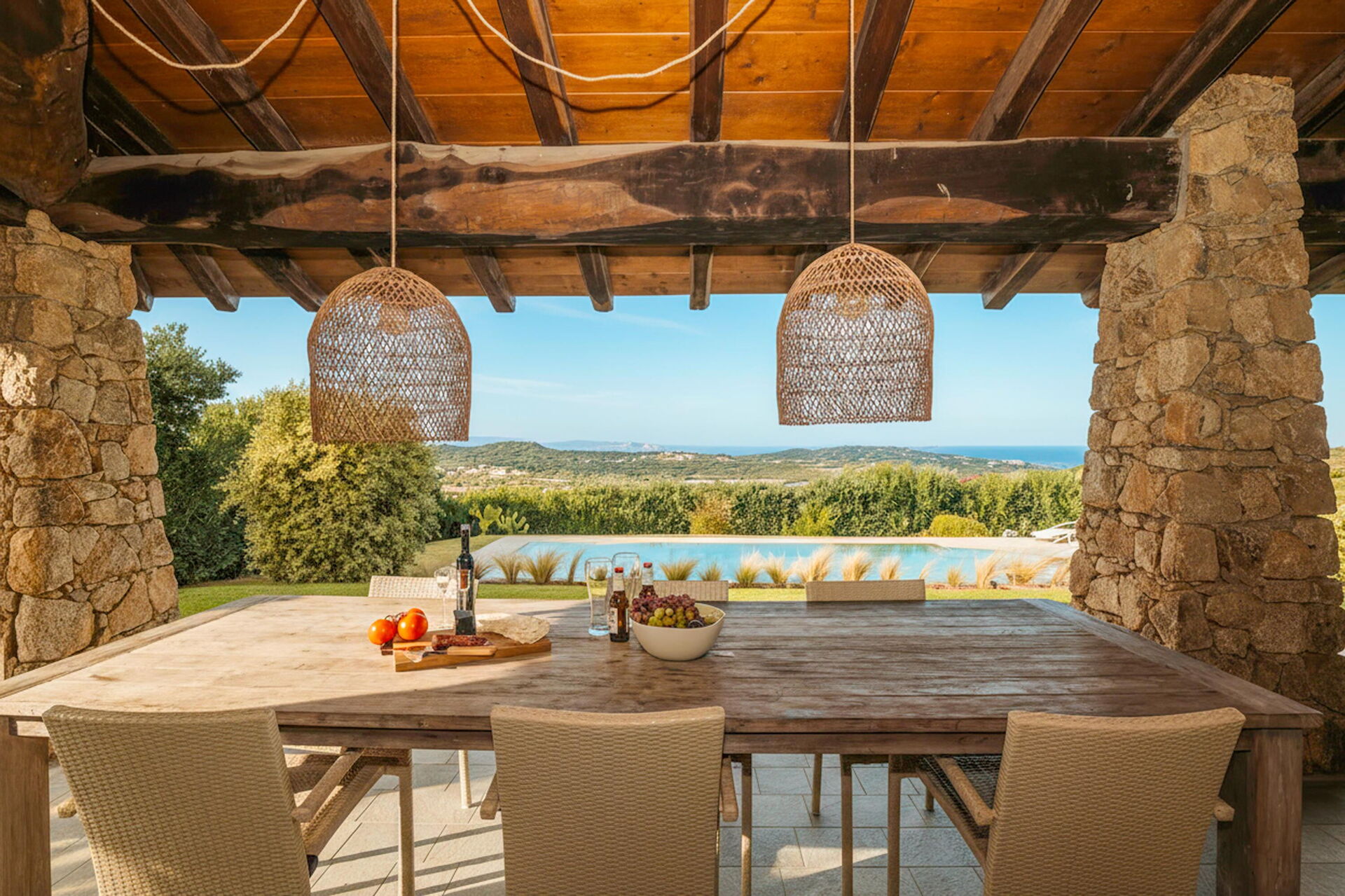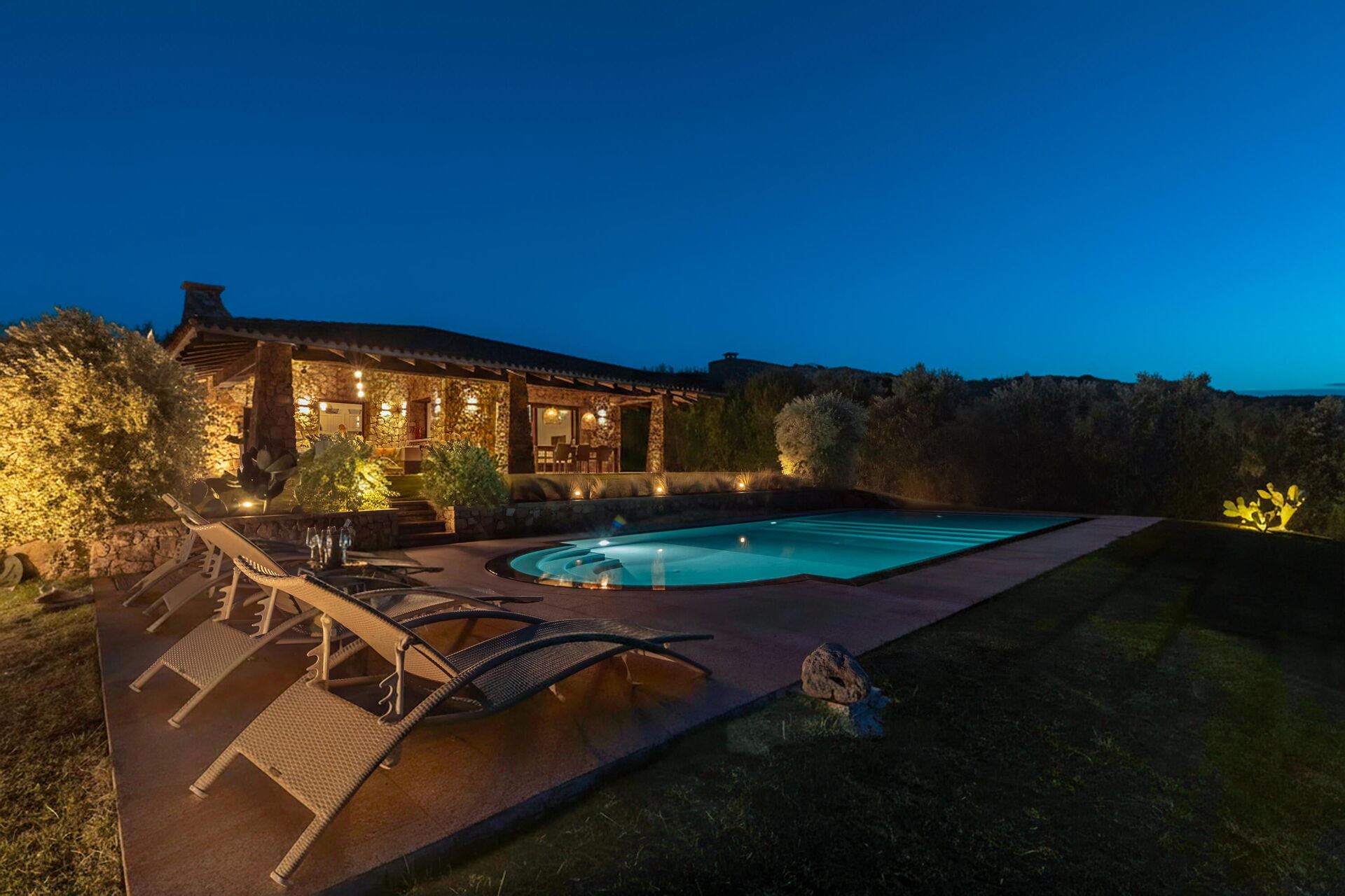Udendørs findes der flere områder med panoramaudsigt. Nyd et udendørs måltid på verandaen som er møbleret med bord og stole, eller tilbring uforglemmelige øjeblikke i solen på Sardinien ved det store poolområde med havudsigt.