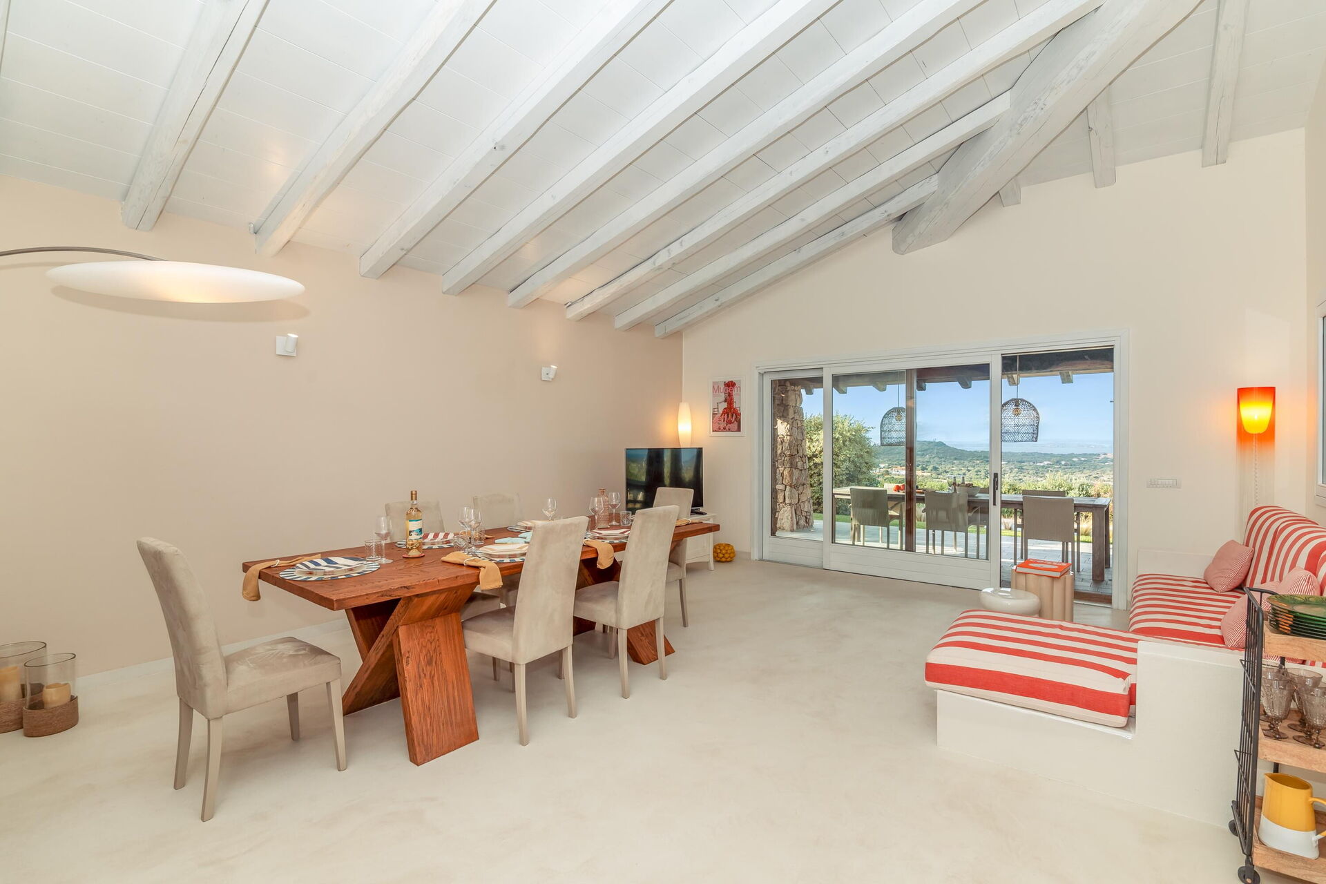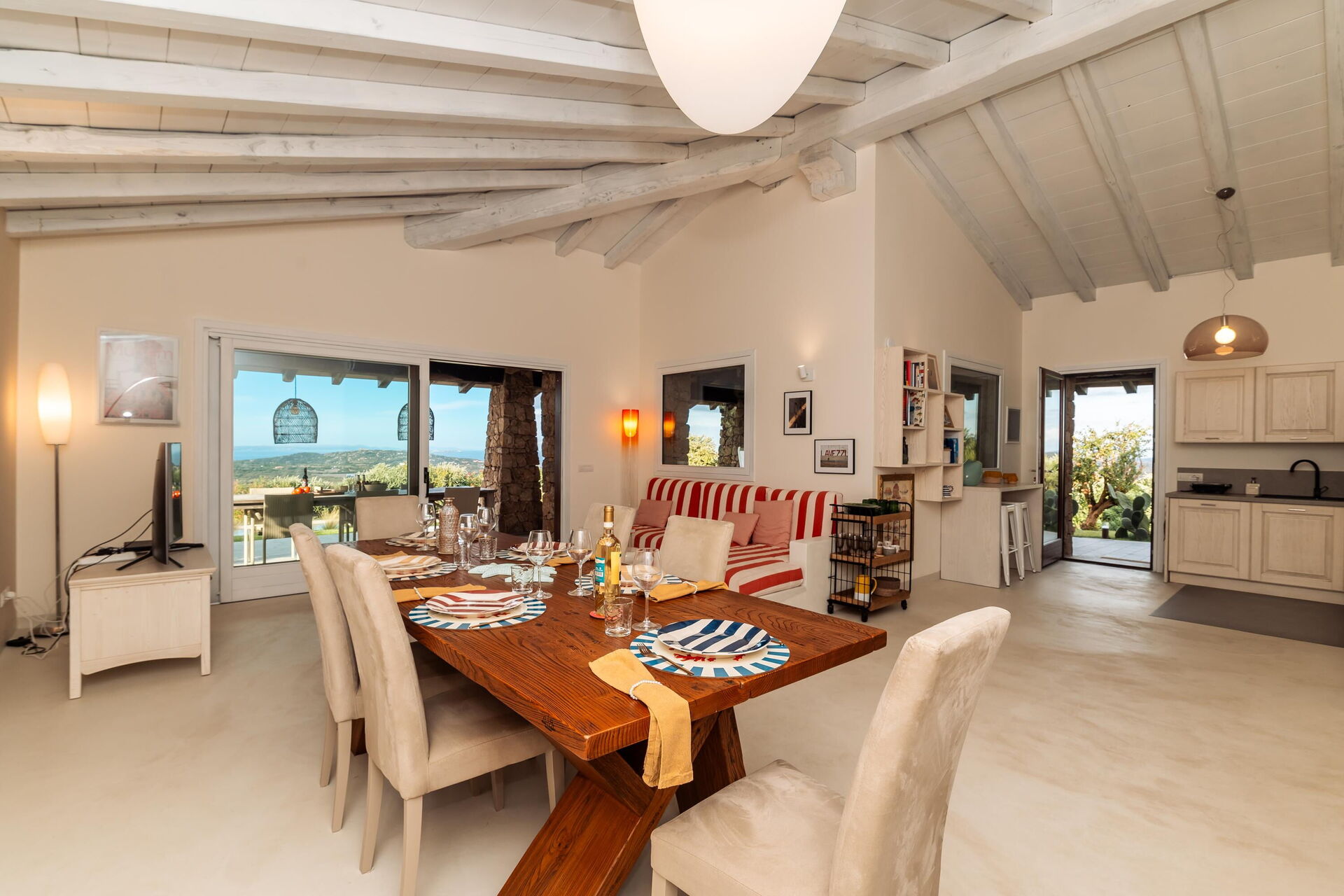 Feriehuset har en strategisk beliggenhed: de fantastiske strande og bugter langs Sardiniens nordøstkyst ligger inden for en radius på 5–15 km, såsom La Marmorata-stranden, Rena Bianca, Rena di Ponente, Santa Reparata og Porto Liscia.