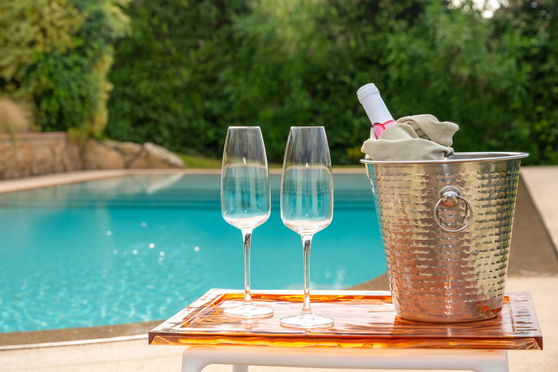 - privat swimmingpool med boblehjørne (10 x 4 meter; maksimal dybde: 1,7 meter; minimum dybde: 0,50 meter)